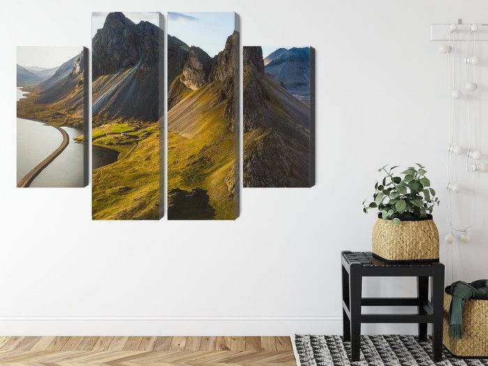 Motivet 3d aerial view of icelandic återges med hög färgprecision och detaljrikedom tack vare HP Latex-teknologi. Trycket sker med vattenbaserade, luktfria och GREENGUARD Gold-certifierade bläck som ger en upplösning på upp till 300 DPI. Färgerna är UV-beständiga och behåller sin styrka även i ljusa rum, vilket gör tavlan lämplig för både hem- och offentliga miljöer.