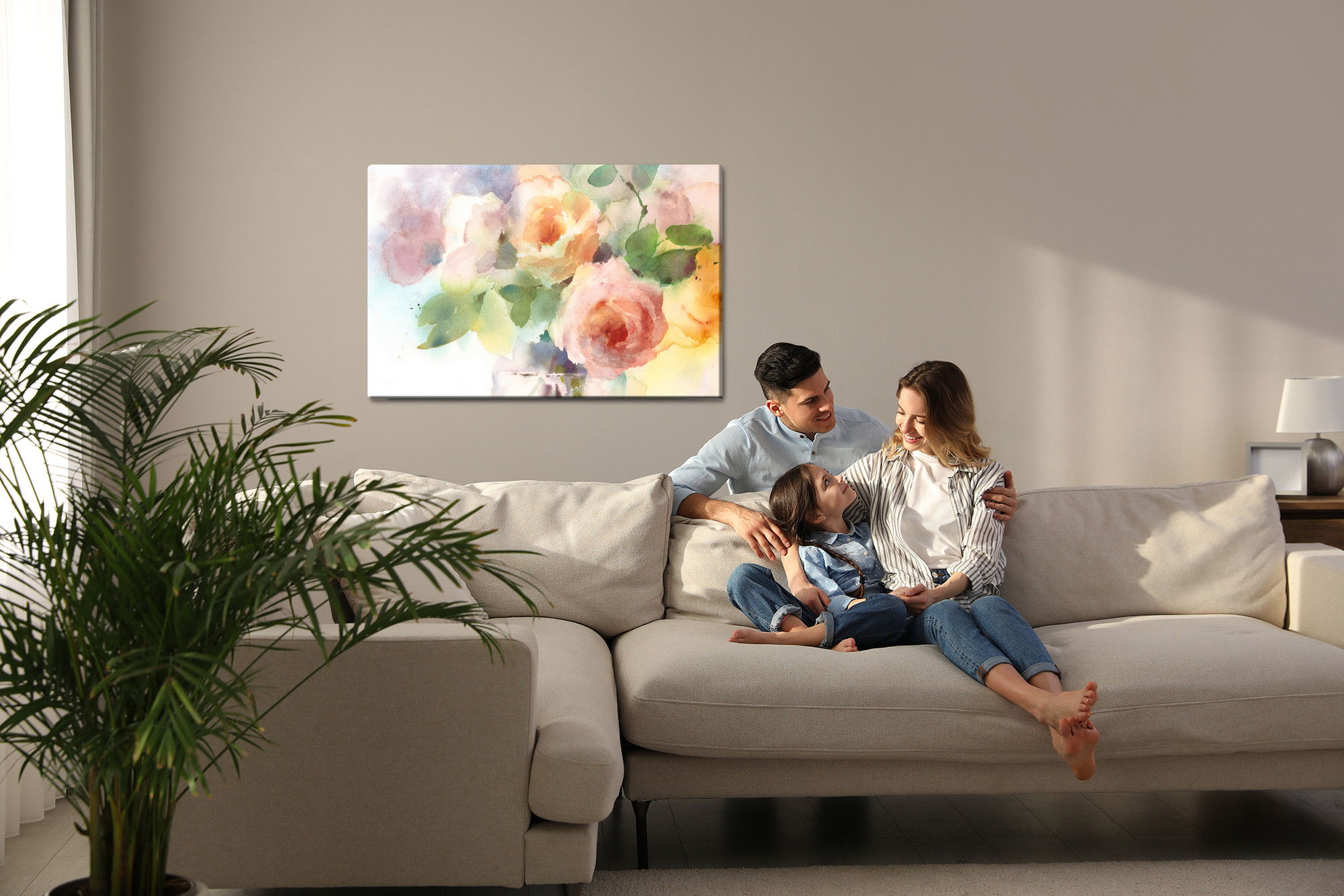 Motivet A bouquet of roses painted återges med hög färgprecision och detaljrikedom tack vare HP Latex-teknologi. Trycket sker med vattenbaserade, luktfria och GREENGUARD Gold-certifierade bläck som ger en upplösning på upp till 300 DPI. Färgerna är UV-beständiga och behåller sin styrka även i ljusa rum, vilket gör tavlan lämplig för både hem- och offentliga miljöer.