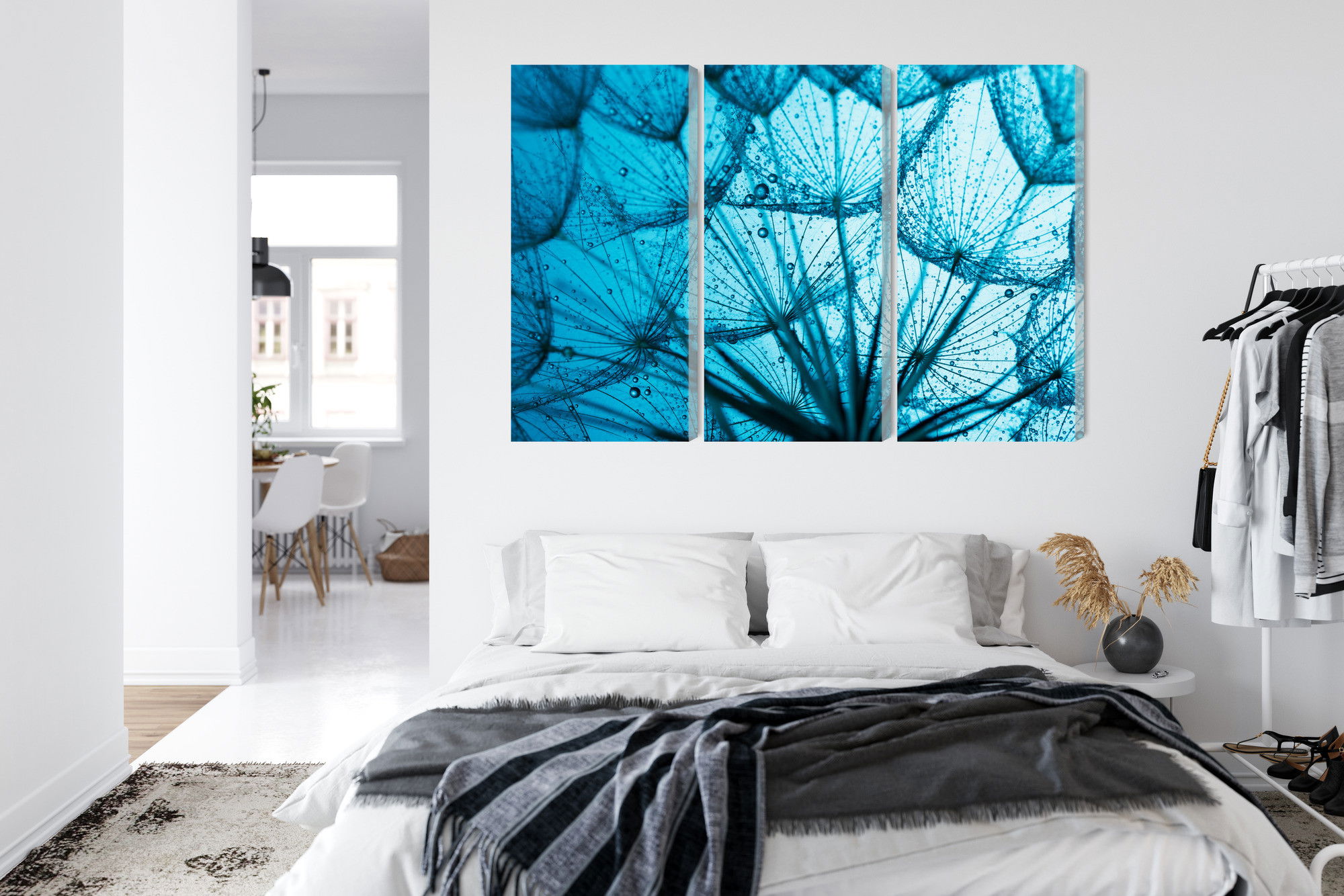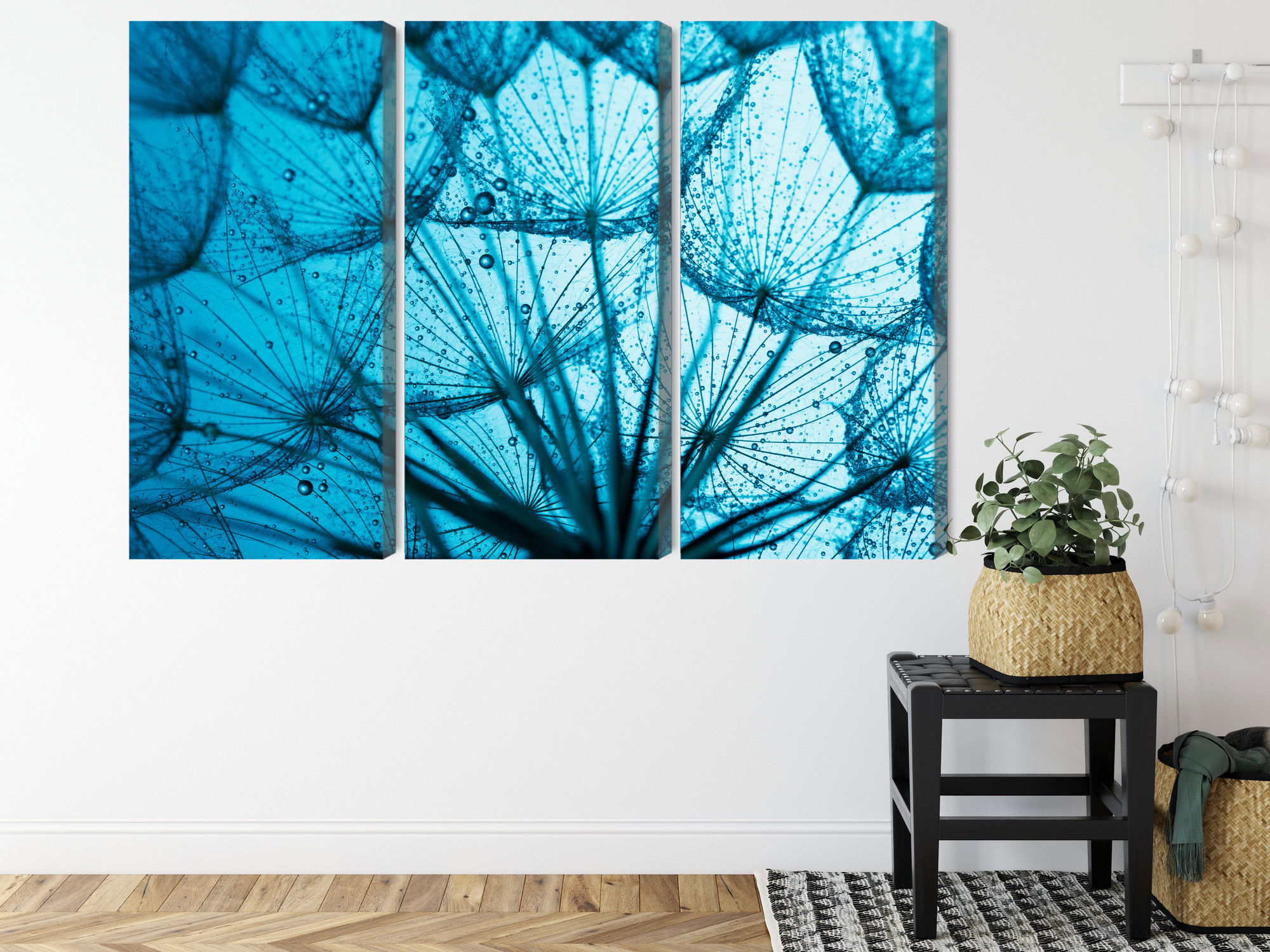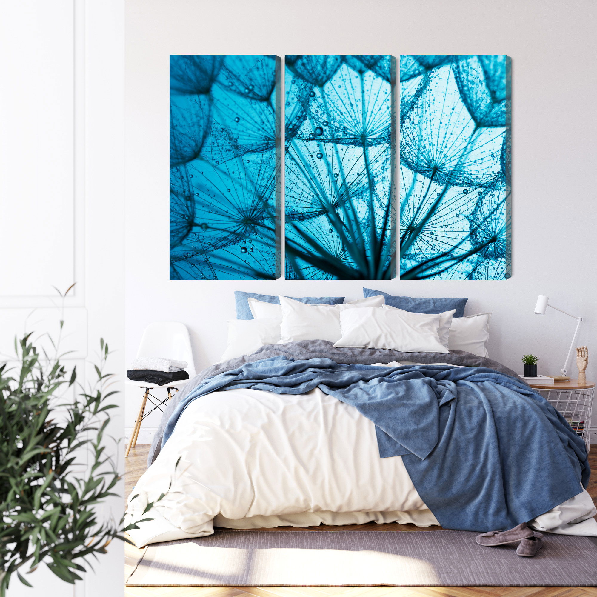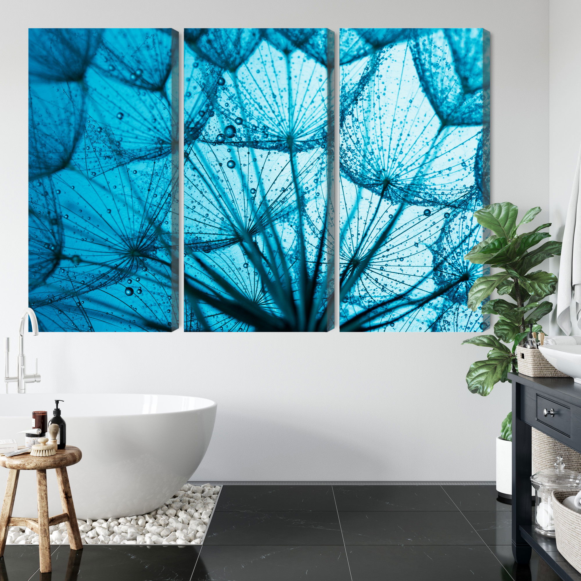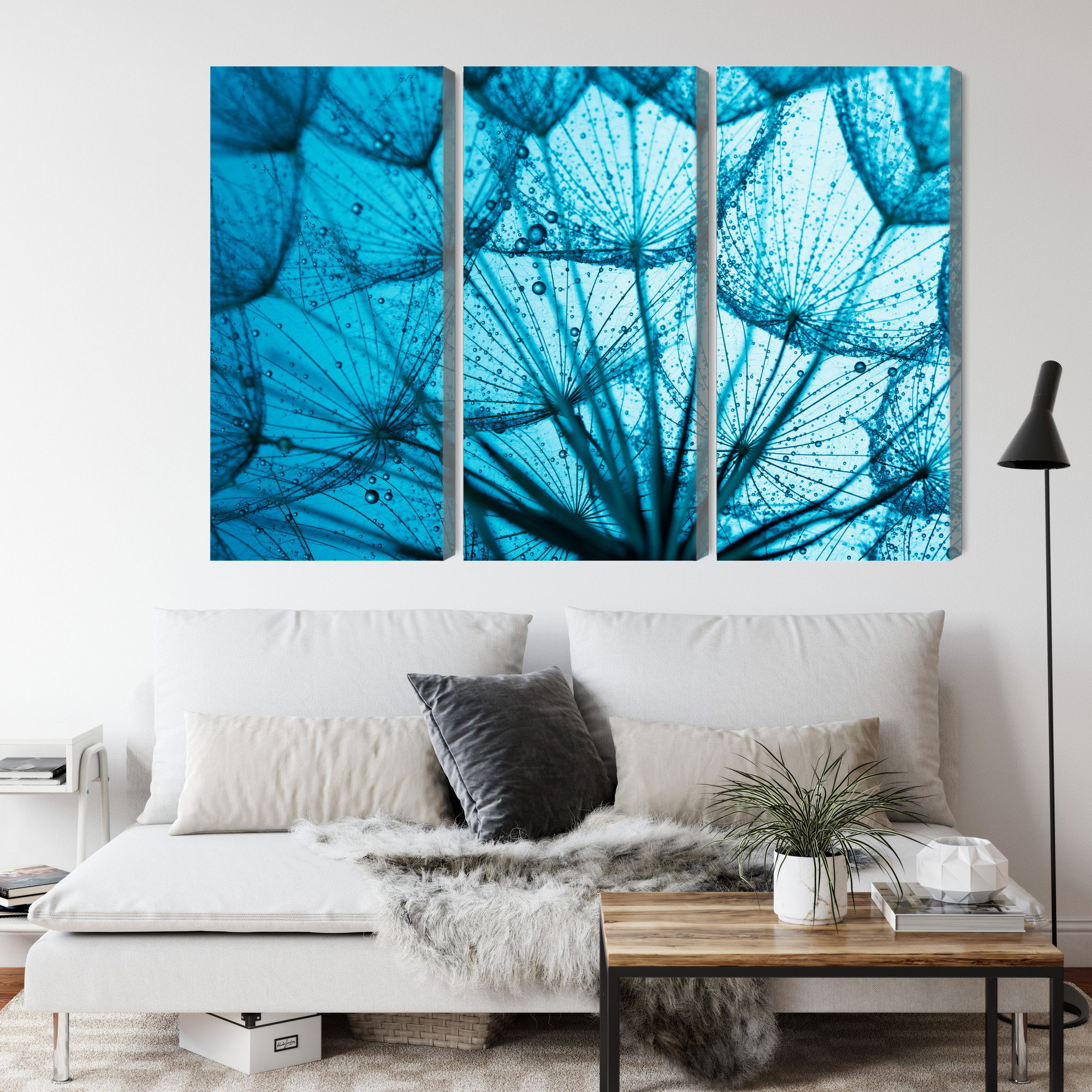 Varje tavla monteras på en massiv fururam. Format upp till 70×50 cm har en ram på 15 mm, medan format från 90×60 cm och uppåt har en ram på 20 mm. Den exakta dukspänningen gör att tavlan håller sin form över tid. Motivet A close-up of a 3d dandelion trycks runt hela ramen vilket ger ett stilrent galleriuttryck där tavlan är lika vacker från sidan som framifrån. Kombinationen av rak dukspänning, rena linjer och korrekt tryck ger en professionell finish.