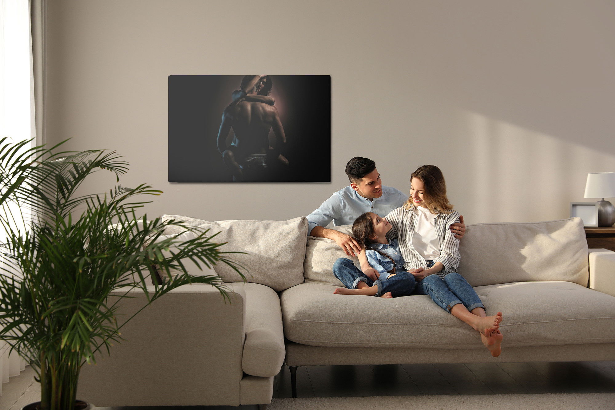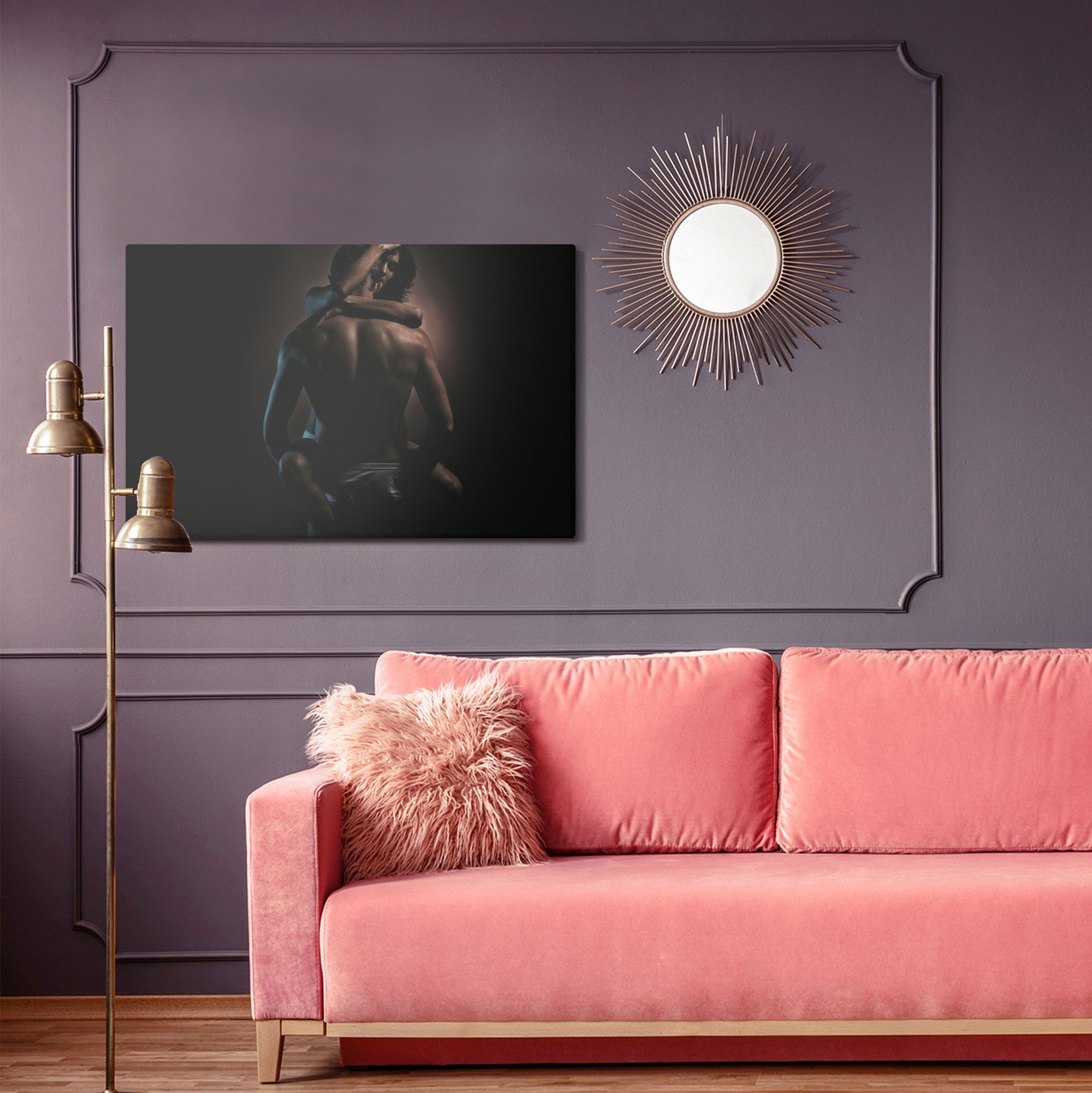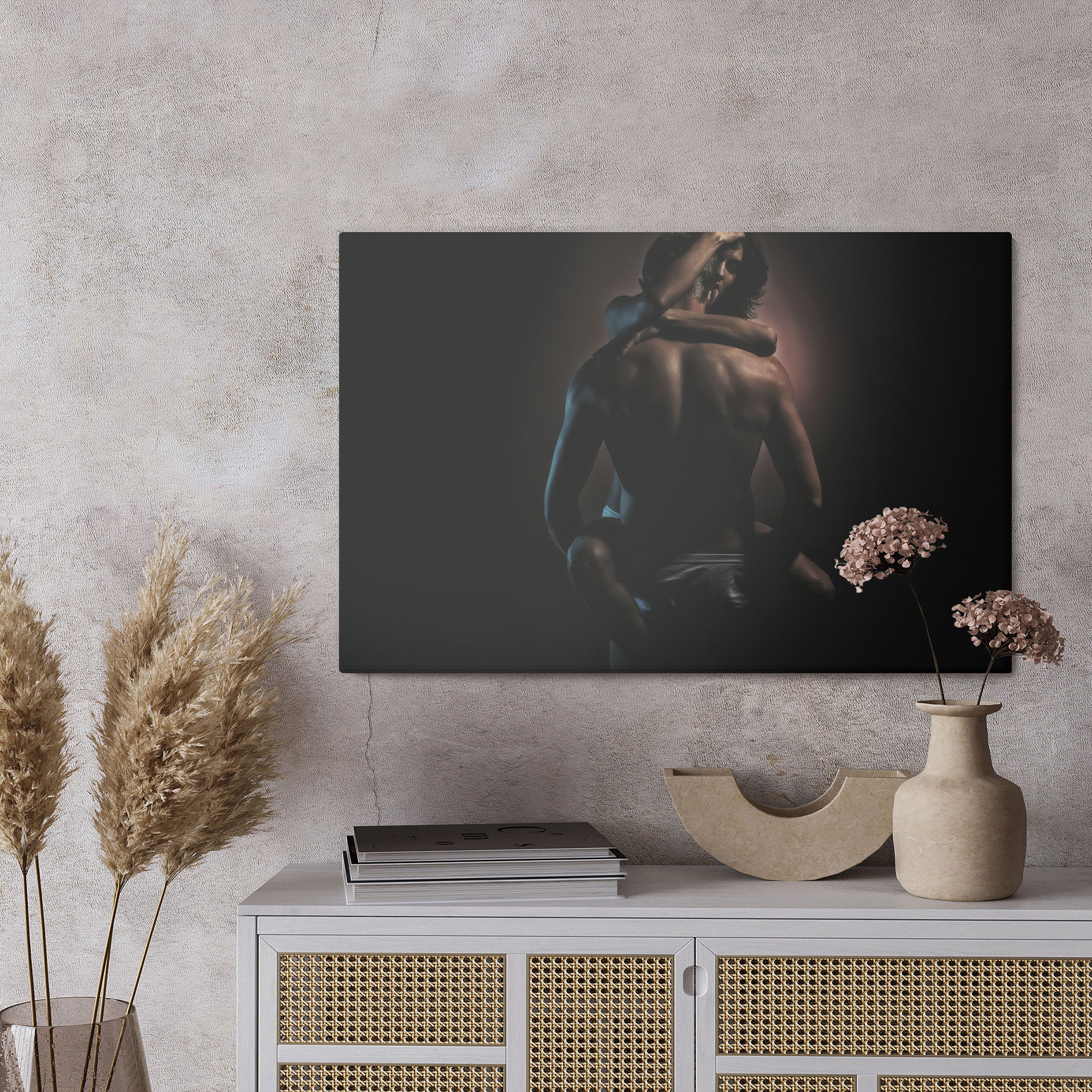Ljuddämpande tavla – A couple in a hot embrace för lugnare rum och mjukare akustik