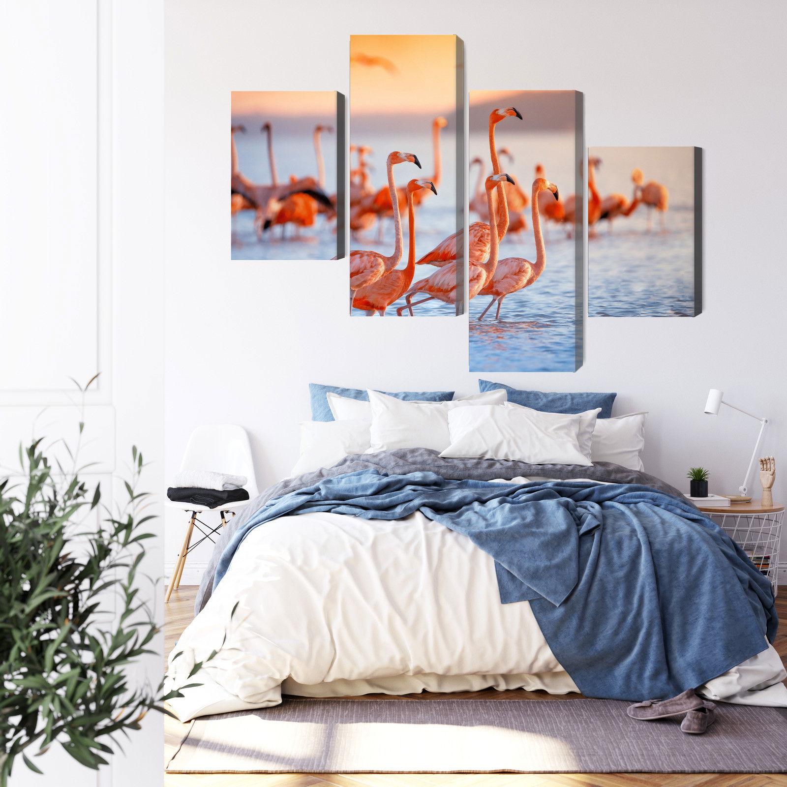 Ljuddämpande tavla – A flock of flamingos för lugnare rum och mjukare akustik