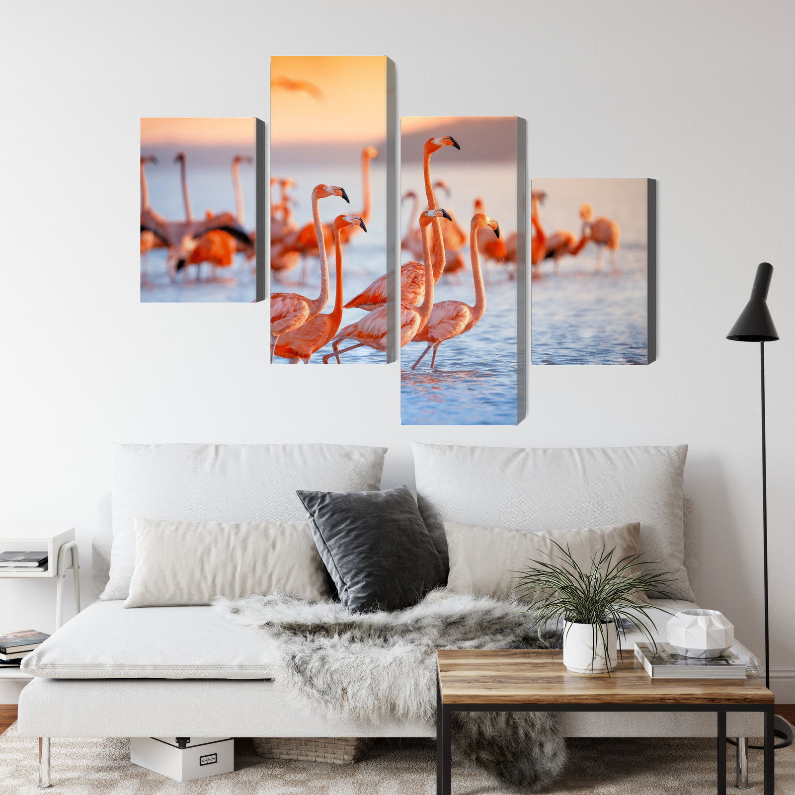 Motivet A flock of flamingos återges med hög färgprecision och detaljrikedom tack vare HP Latex-teknologi. Trycket sker med vattenbaserade, luktfria och GREENGUARD Gold-certifierade bläck som ger en upplösning på upp till 300 DPI. Färgerna är UV-beständiga och behåller sin styrka även i ljusa rum, vilket gör tavlan lämplig för både hem- och offentliga miljöer.