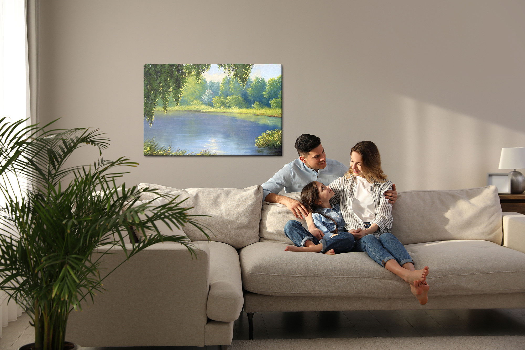Placera tavlan där du upplever mycket eko eller hög ljudnivå, till exempel i öppna planlösningar, hemmakontor eller sociala ytor. Motiv i denna kategori gör sig särskilt bra i rum där du vill skapa en genomtänkt och sammanhängande känsla. Landskap och naturmotiv tillför en organisk mjukhet där färger och former skapar ett harmoniskt intryck som fungerar i både ljusa och mer dämpade interiörer.
