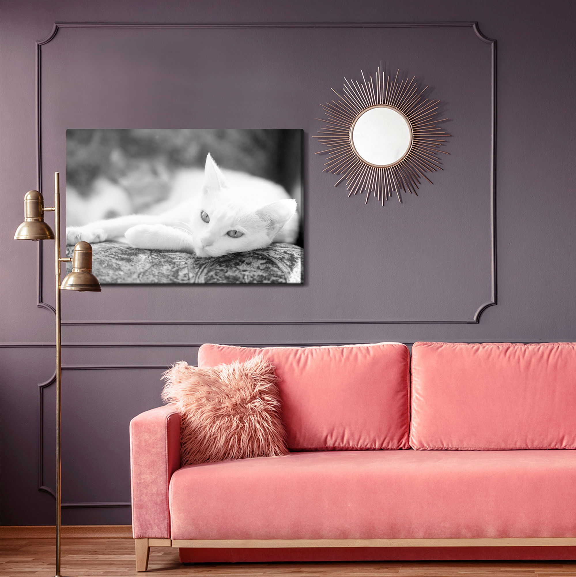 Ljuddämpande tavla – A resting white cat för lugnare rum och mjukare akustik