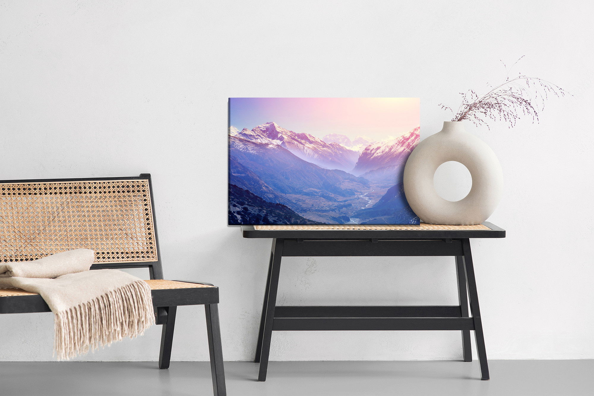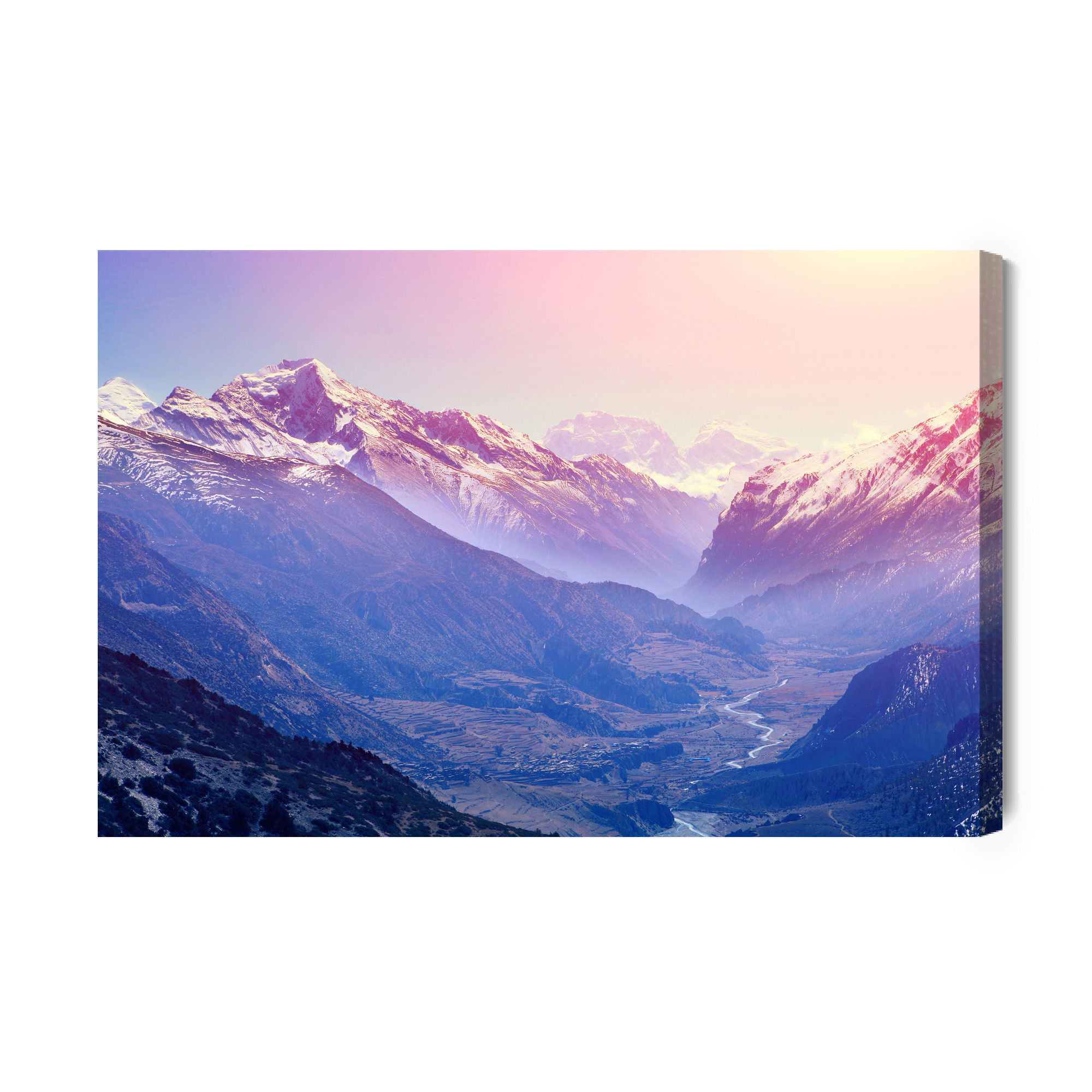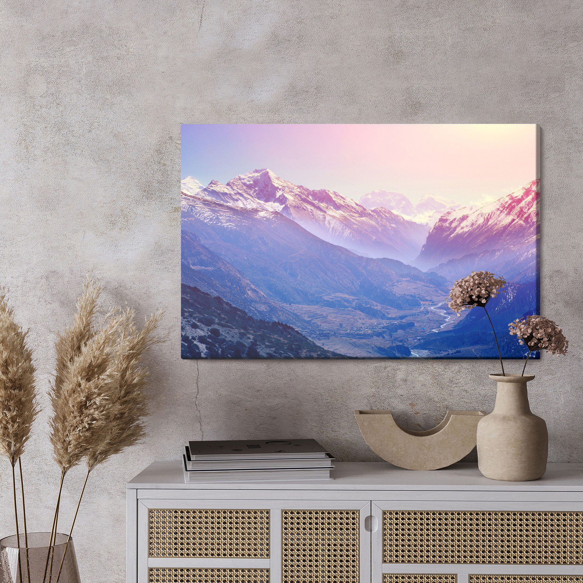 Varje tavla monteras på en massiv fururam. Format upp till 70×50 cm har en ram på 15 mm, medan format från 90×60 cm och uppåt har en ram på 20 mm. Den exakta dukspänningen gör att tavlan håller sin form över tid. Motivet Amazing mountain country trycks runt hela ramen vilket ger ett stilrent galleriuttryck där tavlan är lika vacker från sidan som framifrån. Kombinationen av rak dukspänning, rena linjer och korrekt tryck ger en professionell finish.