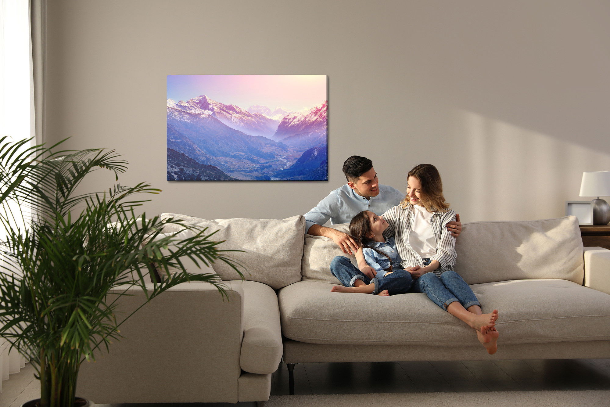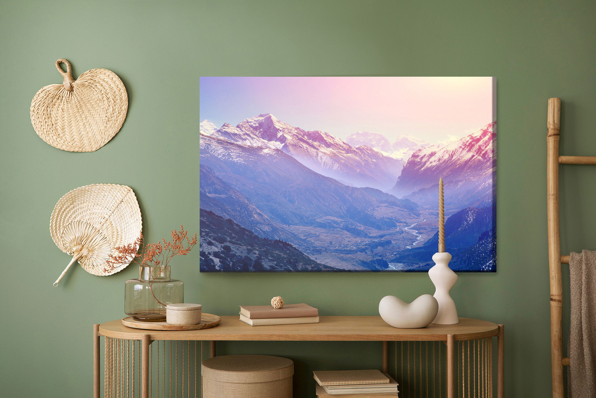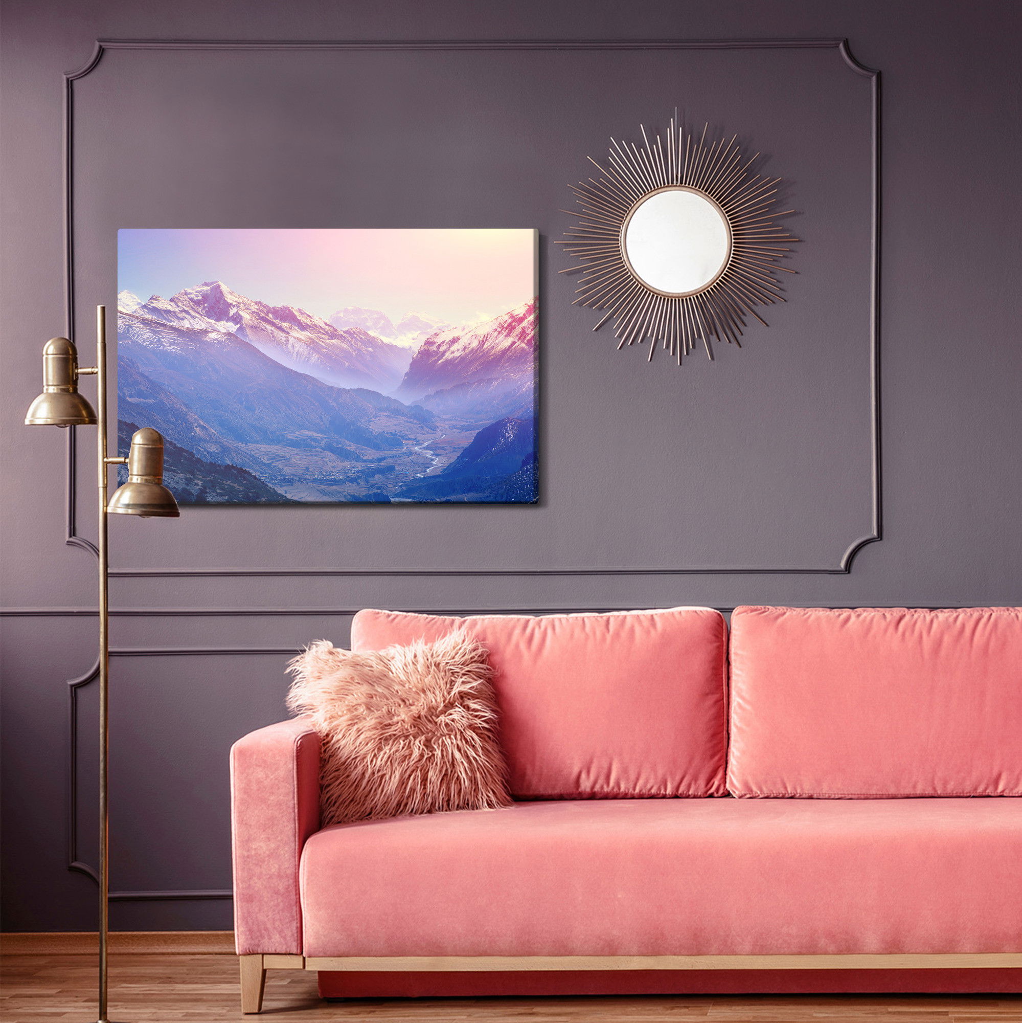 Varje tavla monteras på en massiv fururam. Format upp till 70×50 cm har en ram på 15 mm, medan format från 90×60 cm och uppåt har en ram på 20 mm. Den exakta dukspänningen gör att tavlan håller sin form över tid. Motivet Amazing mountain country trycks runt hela ramen vilket ger ett stilrent galleriuttryck där tavlan är lika vacker från sidan som framifrån. Kombinationen av rak dukspänning, rena linjer och korrekt tryck ger en professionell finish.