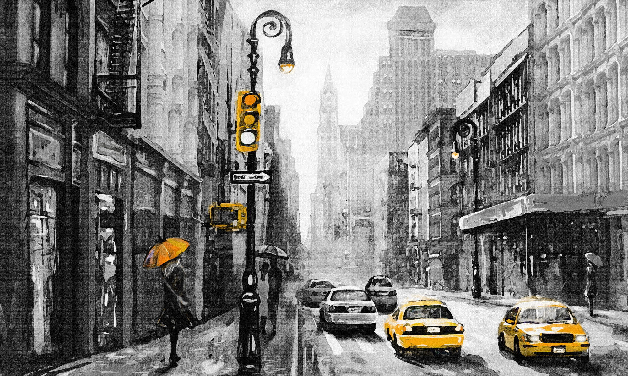 Ljuddämpande tavla – American city street view för lugnare rum och mjukare akustik