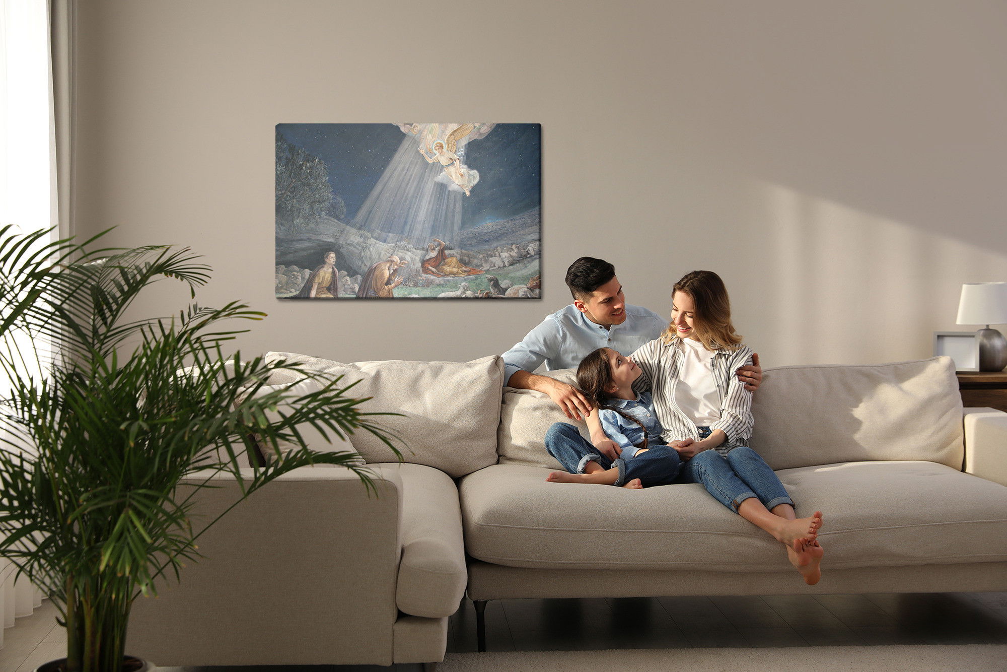 En ljuddämpande tavla Annunciation of the angelus är mer än en väggdekoration. En ljuddämpande tavla från SilentDirect är mer än en väggdekoration. Den reducerar eko, ger mjukare ljudmiljö och skapar en balanserad atmosfär i rummet. Kombinationen av akustisk funktion, certifierade material, premiumtryck och genomtänkt konstruktion ger en helhetslösning som lyfter både ljudmiljö och visuellt uttryck.