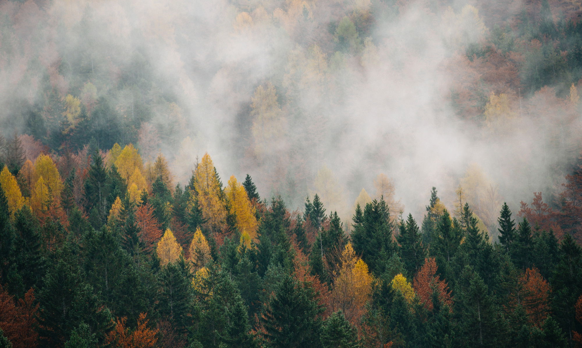 Ljuddämpande tavla - Autumn forest in the fog 3d