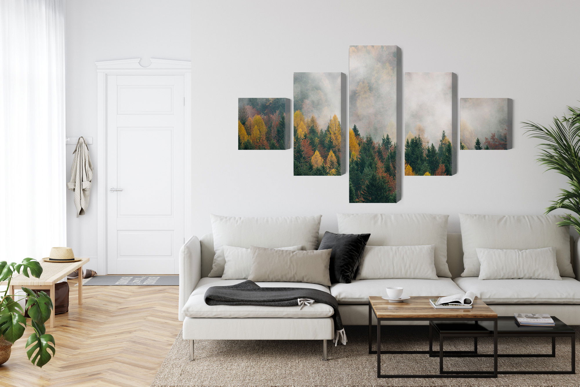 Varje tavla monteras på en massiv fururam. Format upp till 70×50 cm har en ram på 15 mm, medan format från 90×60 cm och uppåt har en ram på 20 mm. Den exakta dukspänningen gör att tavlan håller sin form över tid. Motivet Autumn forest in the fog 3d trycks runt hela ramen vilket ger ett stilrent galleriuttryck där tavlan är lika vacker från sidan som framifrån. Kombinationen av rak dukspänning, rena linjer och korrekt tryck ger en professionell finish.