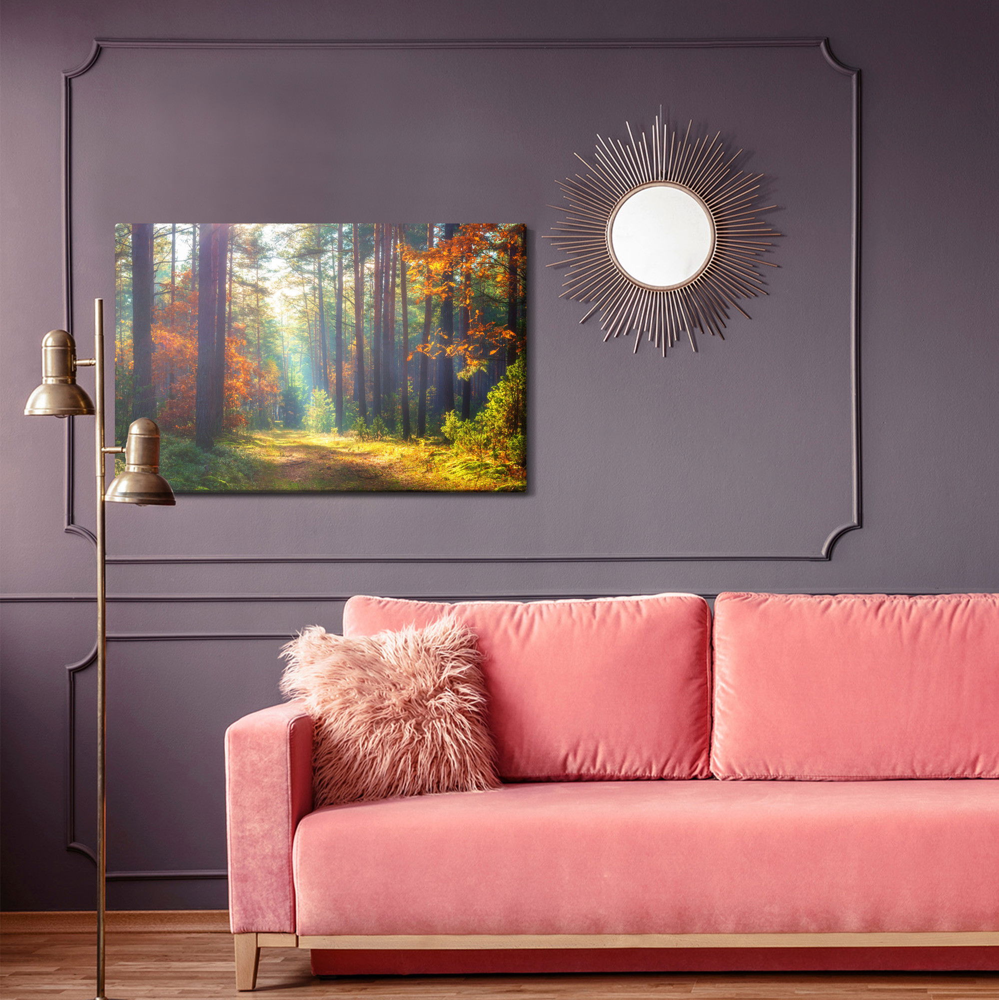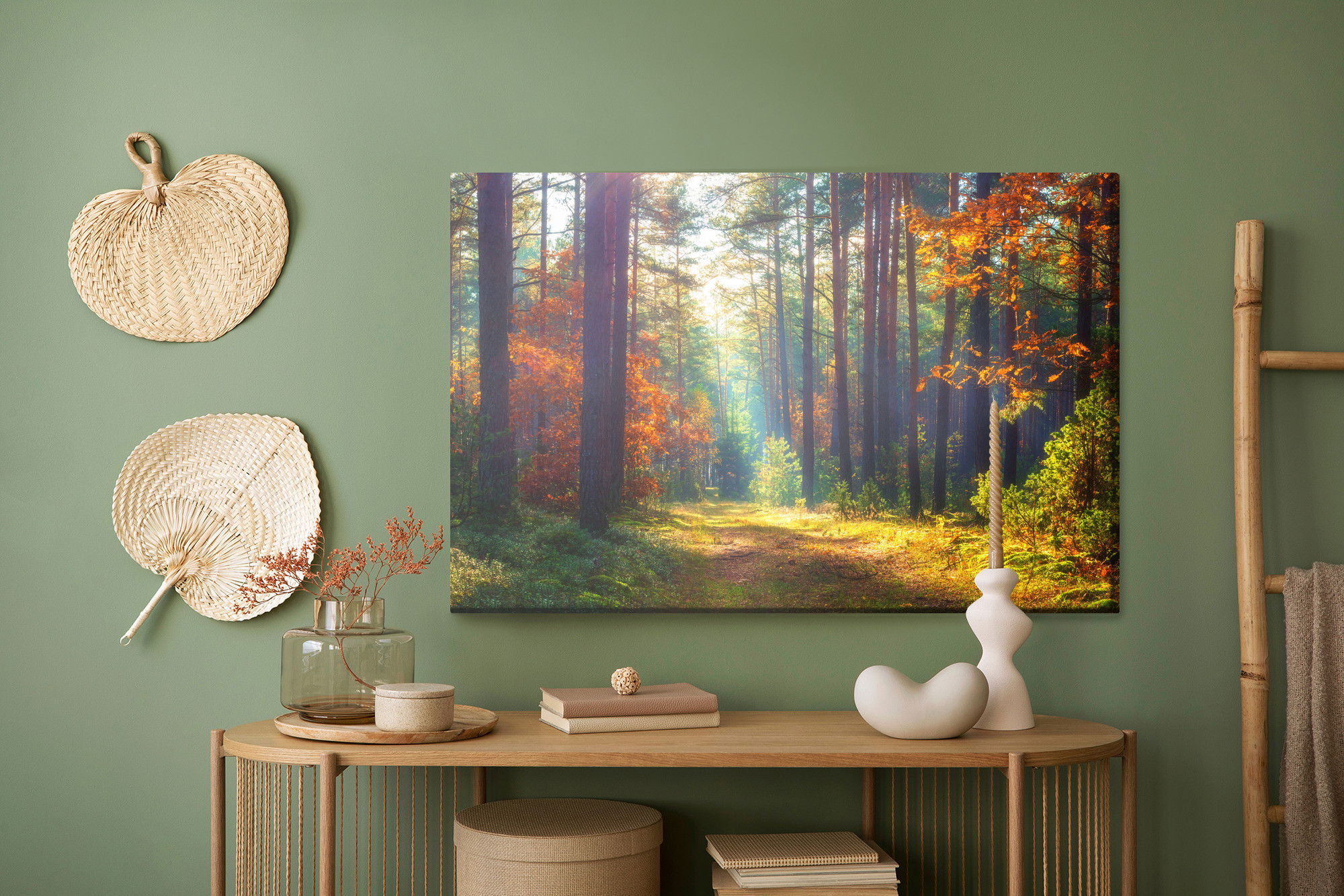 Ljuddämpande tavla – Autumn forest in the morning för lugnare rum och mjukare akustik