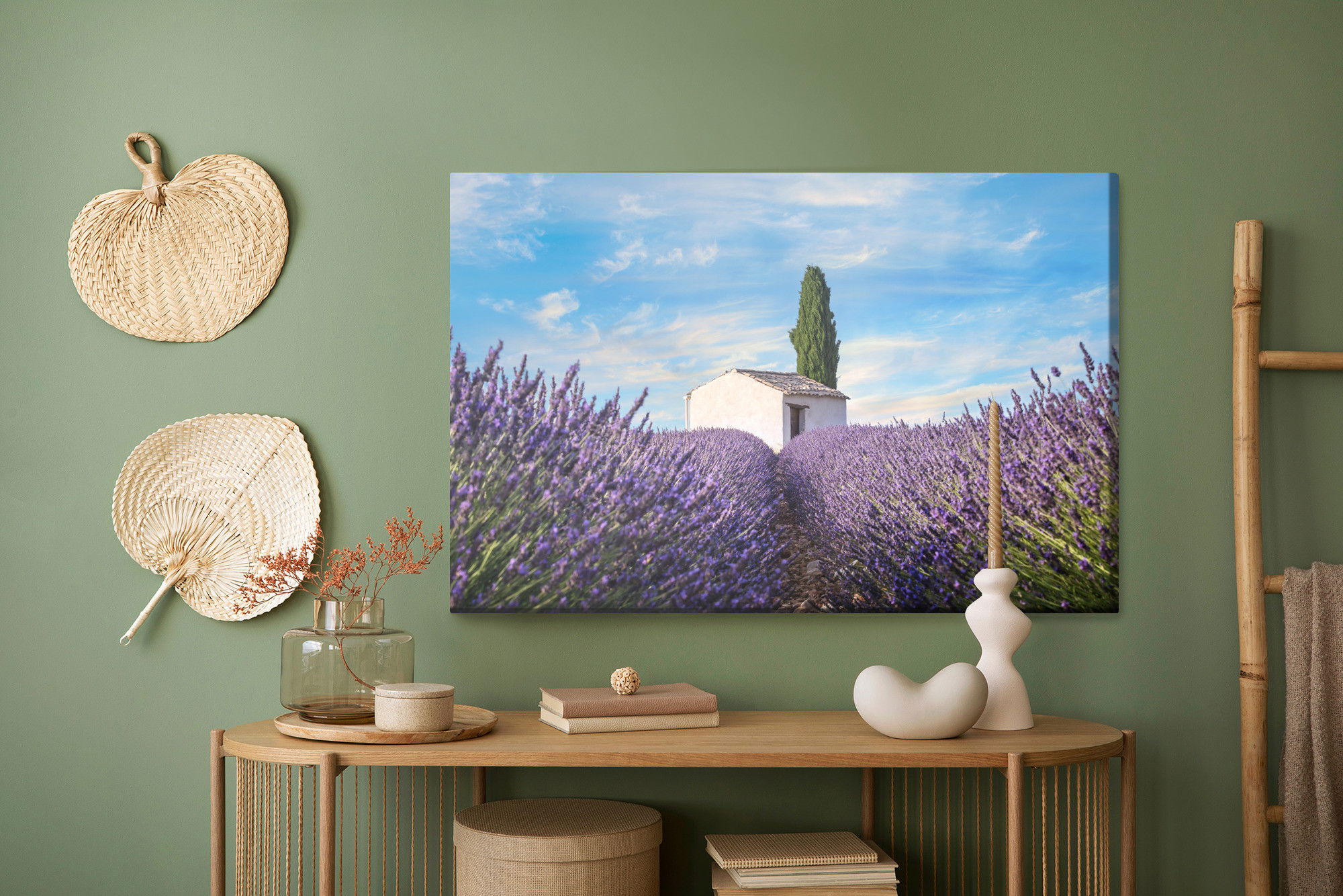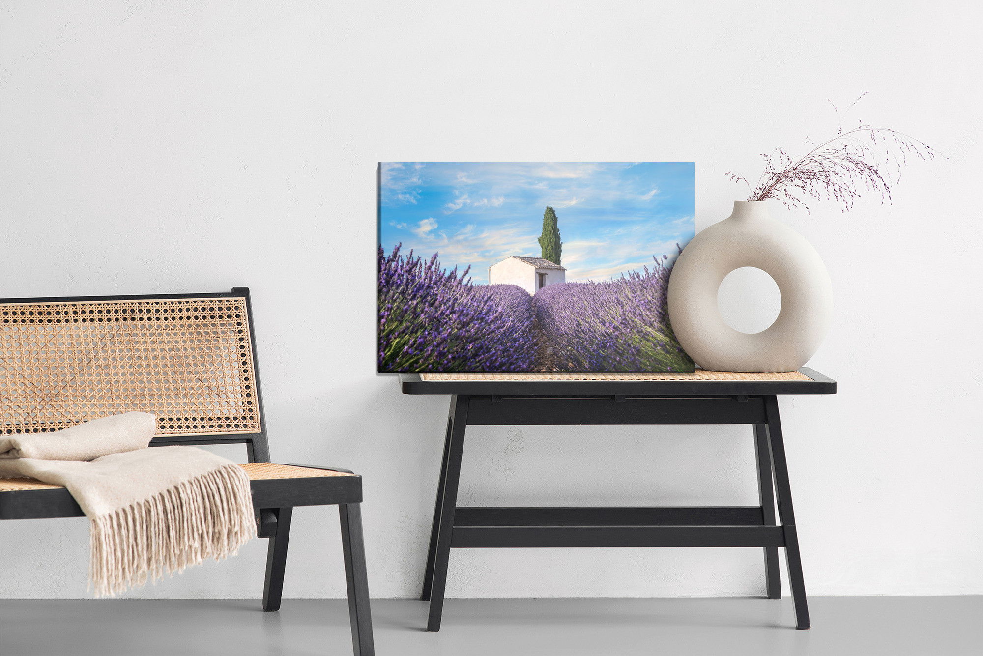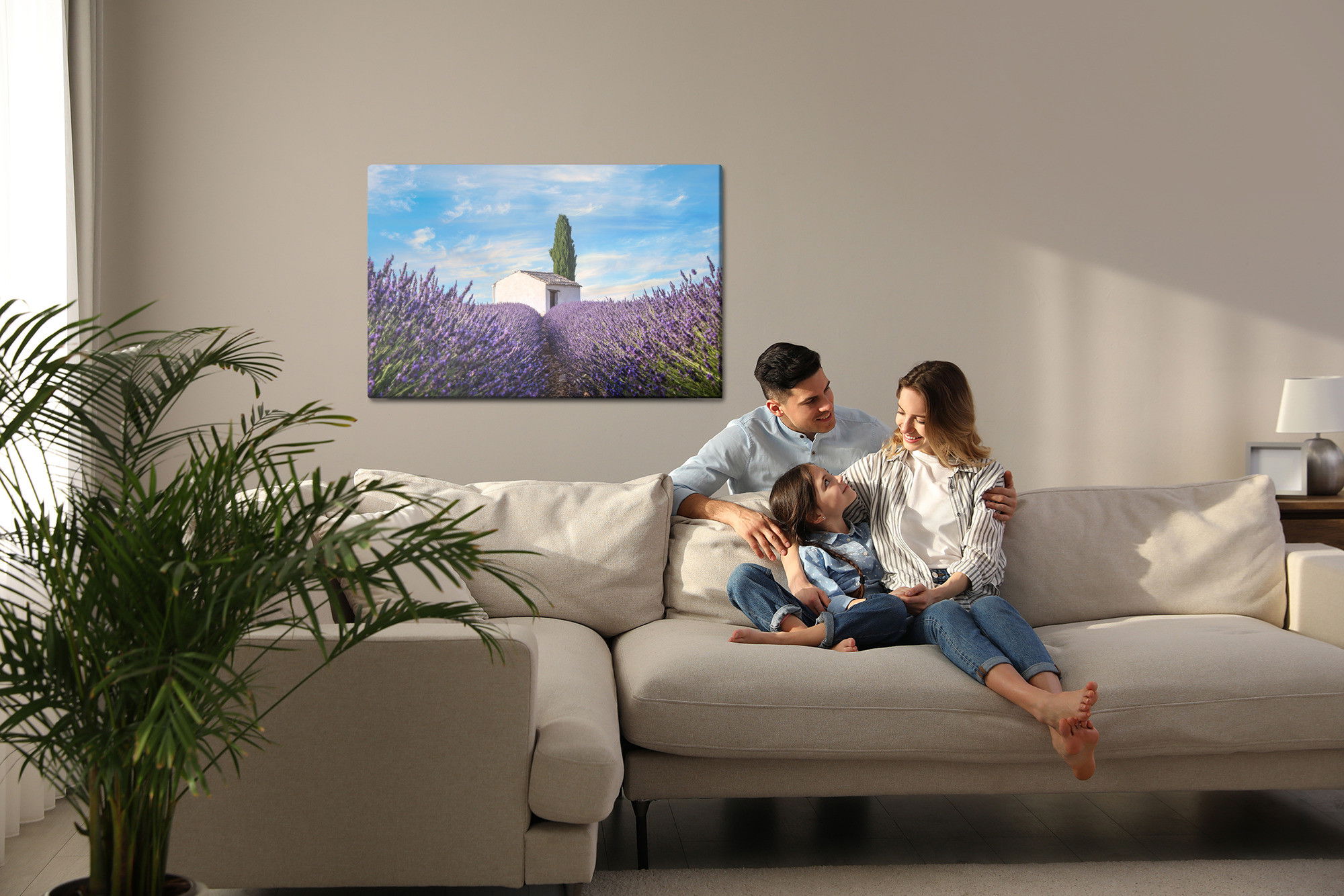 Varje tavla monteras på en massiv fururam. Format upp till 70×50 cm har en ram på 15 mm, medan format från 90×60 cm och uppåt har en ram på 20 mm. Den exakta dukspänningen gör att tavlan håller sin form över tid. Motivet Beautiful lavender flowers trycks runt hela ramen vilket ger ett stilrent galleriuttryck där tavlan är lika vacker från sidan som framifrån. Kombinationen av rak dukspänning, rena linjer och korrekt tryck ger en professionell finish.