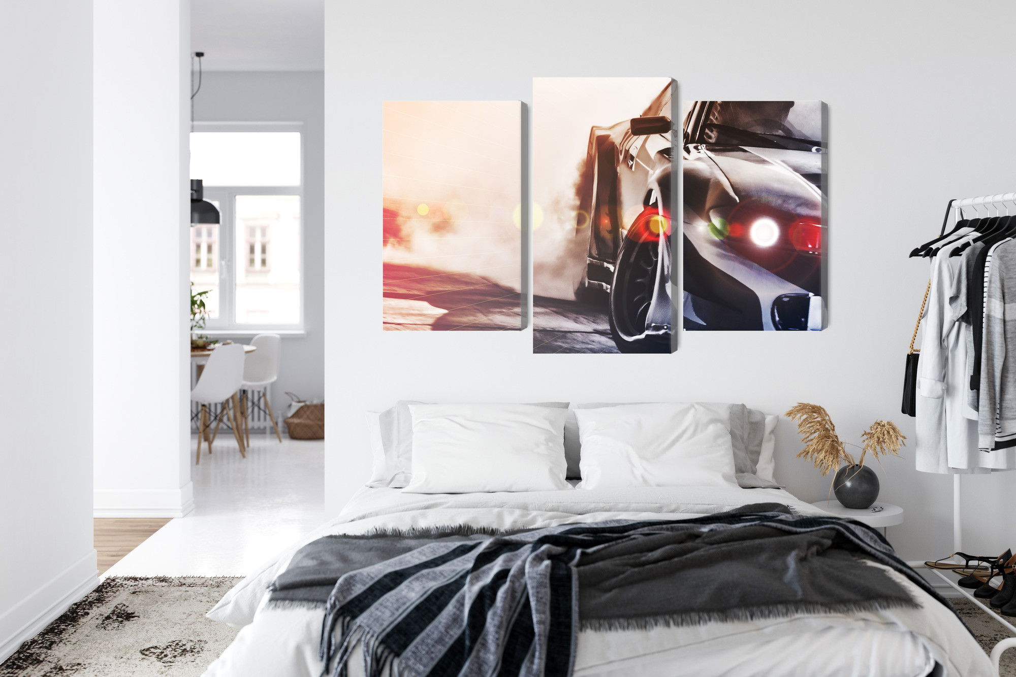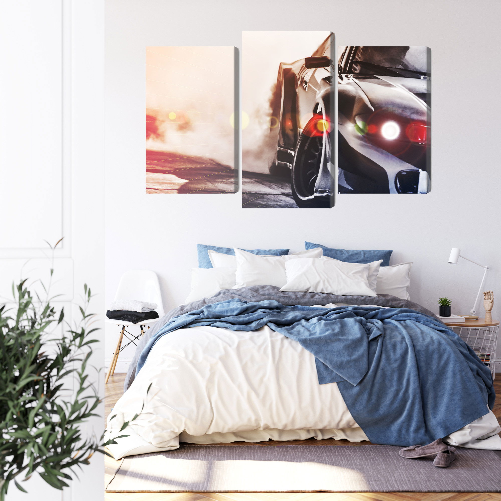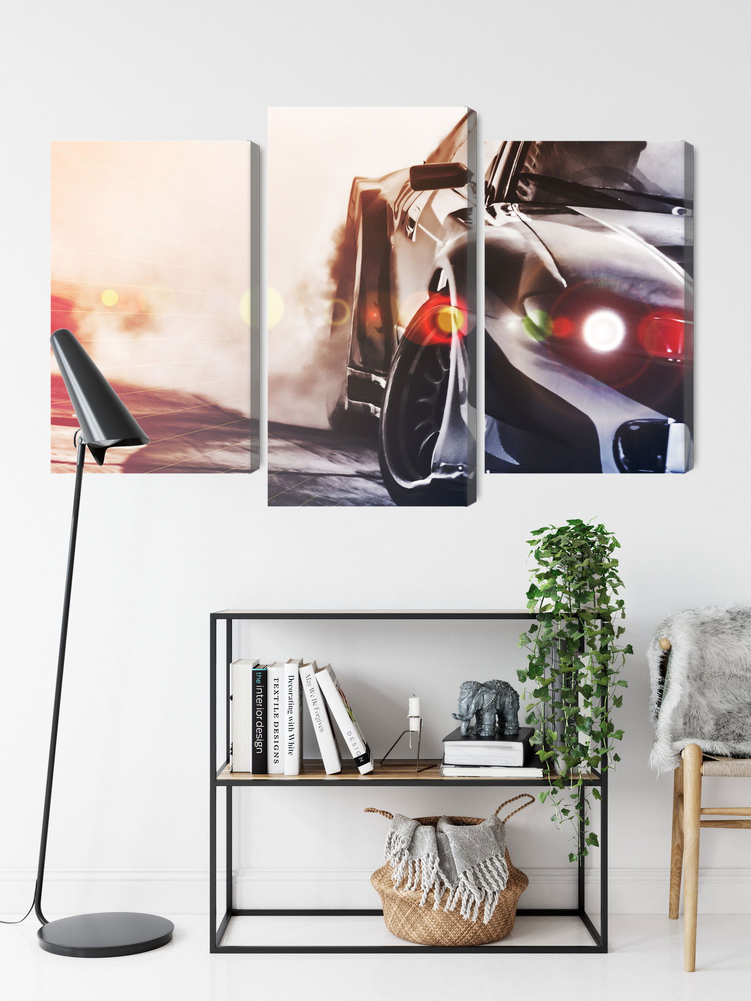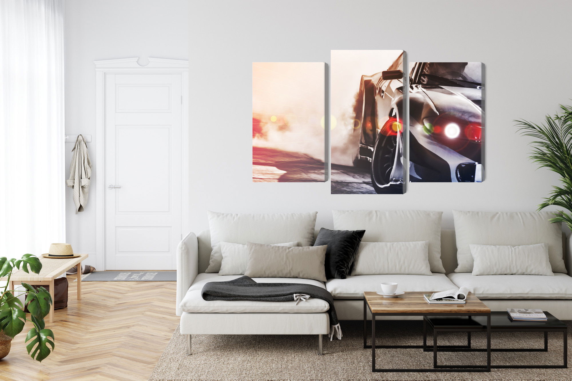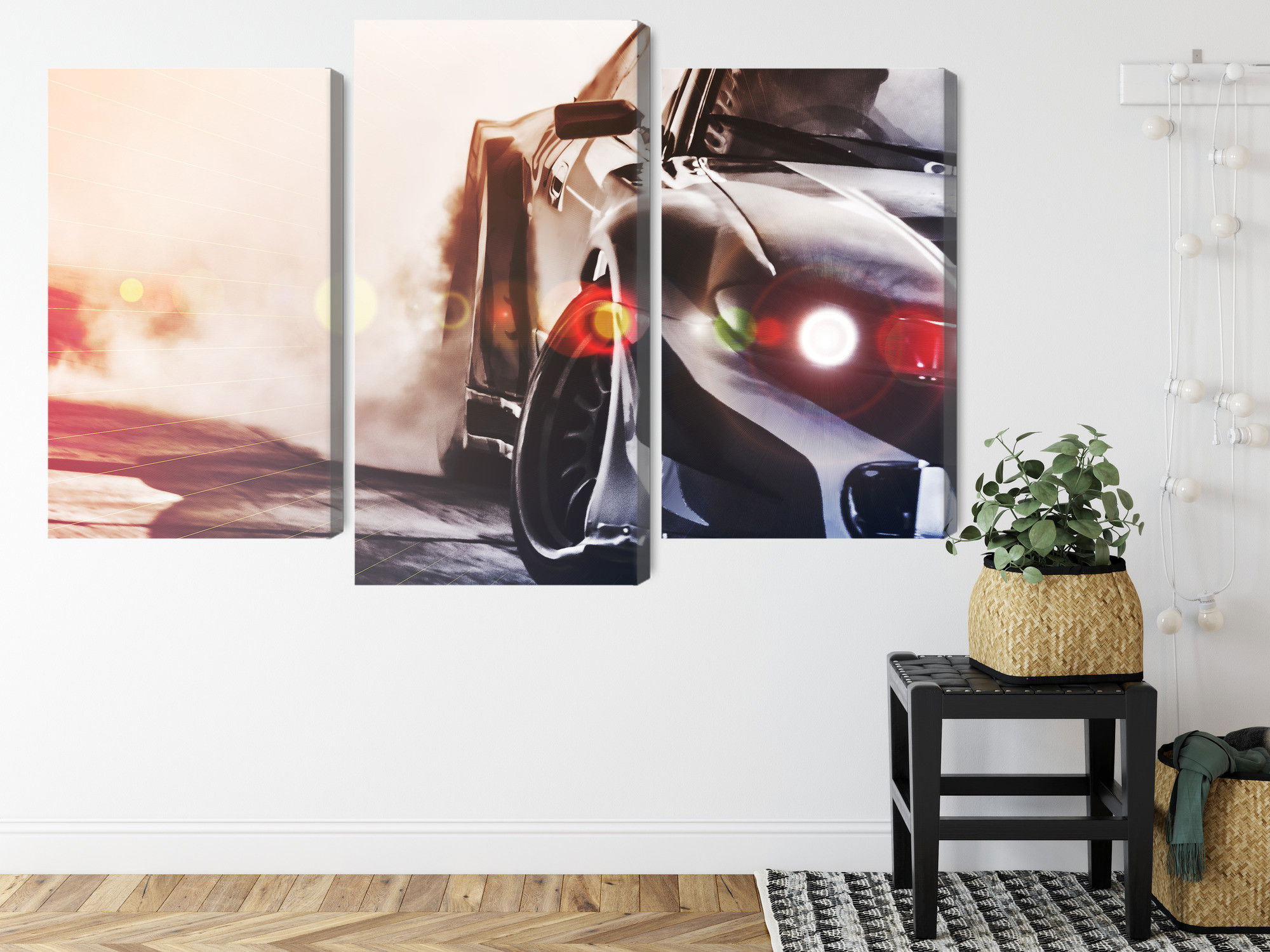 Ljuddämpande tavla – Black drifting 3d car för lugnare rum och mjukare akustik