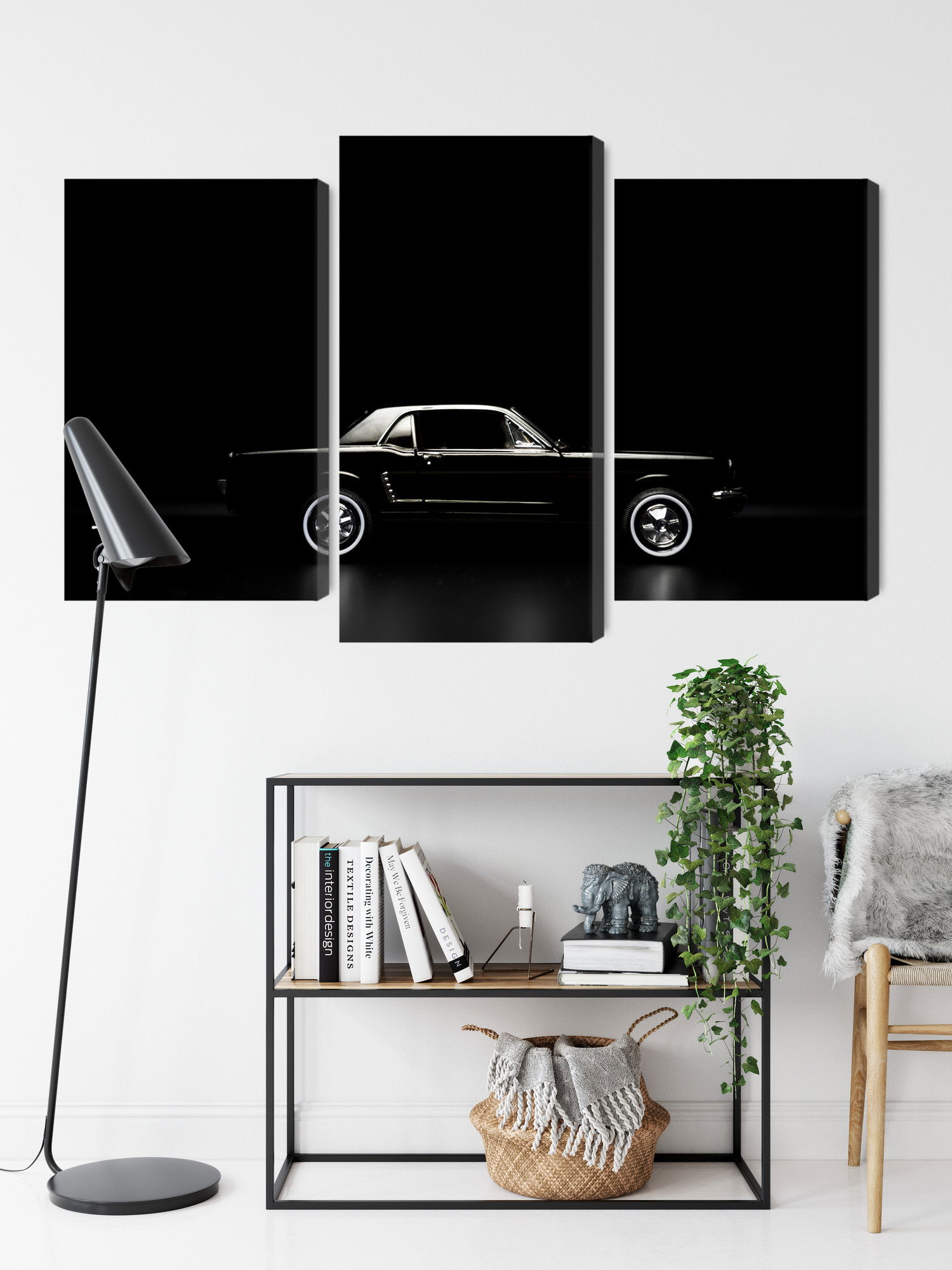 Ljuddämpande tavla – Black retro car on a dark för lugnare rum och mjukare akustik