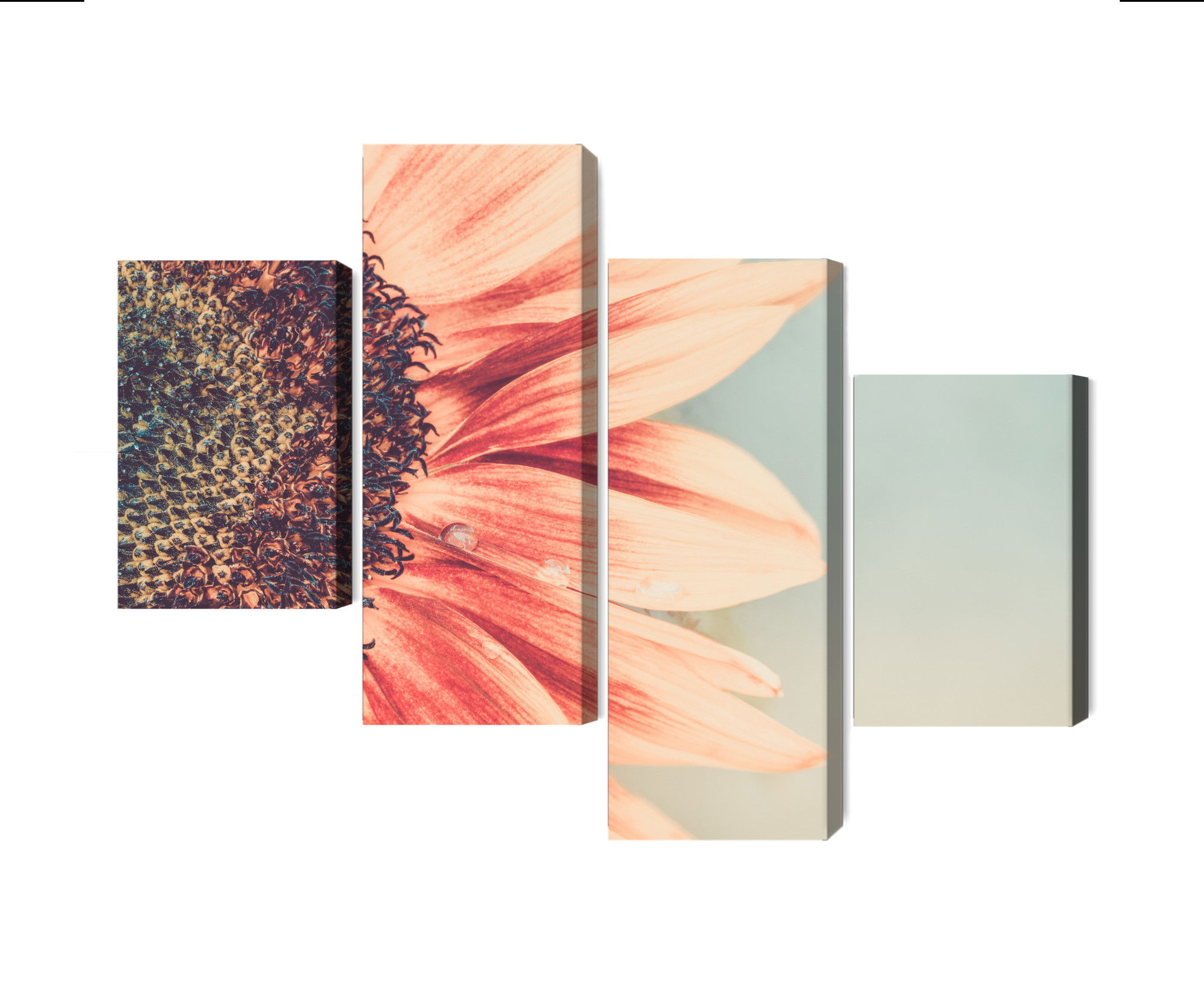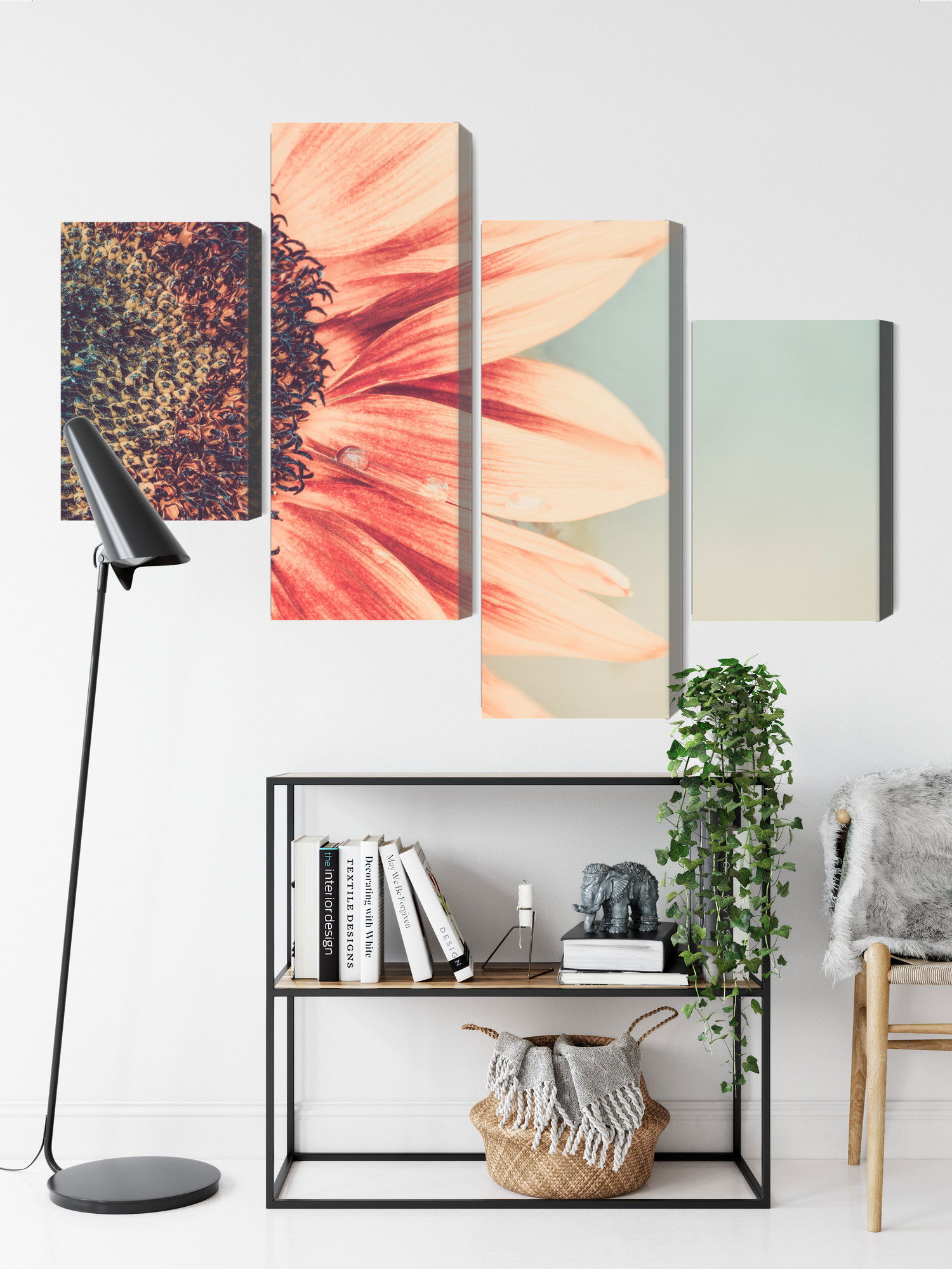 Varje tavla monteras på en massiv fururam. Format upp till 70×50 cm har en ram på 15 mm, medan format från 90×60 cm och uppåt har en ram på 20 mm. Den exakta dukspänningen gör att tavlan håller sin form över tid. Motivet Blooming sunflower trycks runt hela ramen vilket ger ett stilrent galleriuttryck där tavlan är lika vacker från sidan som framifrån. Kombinationen av rak dukspänning, rena linjer och korrekt tryck ger en professionell finish.