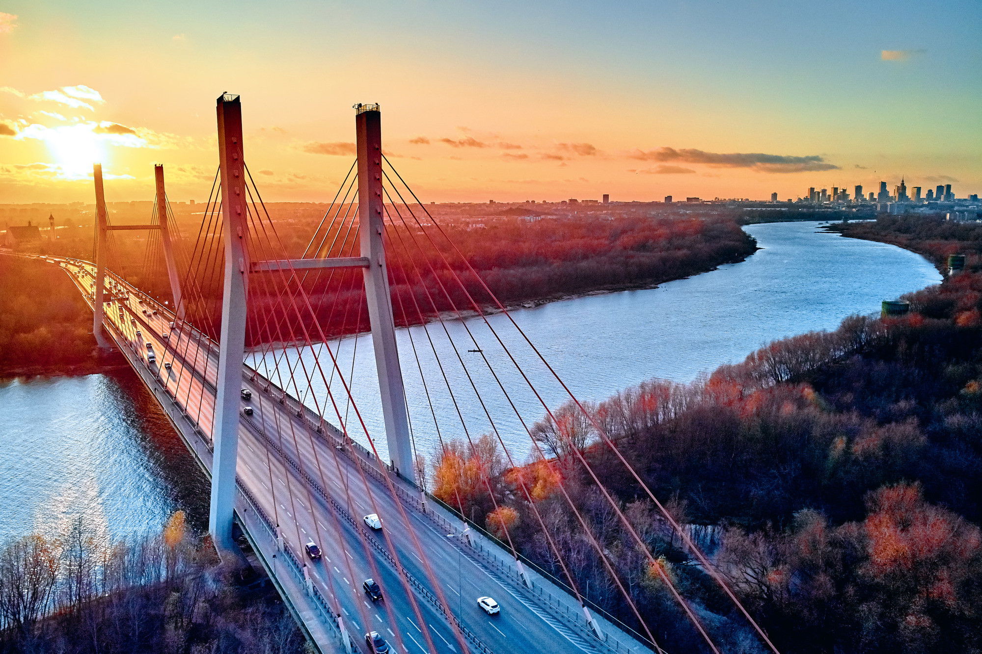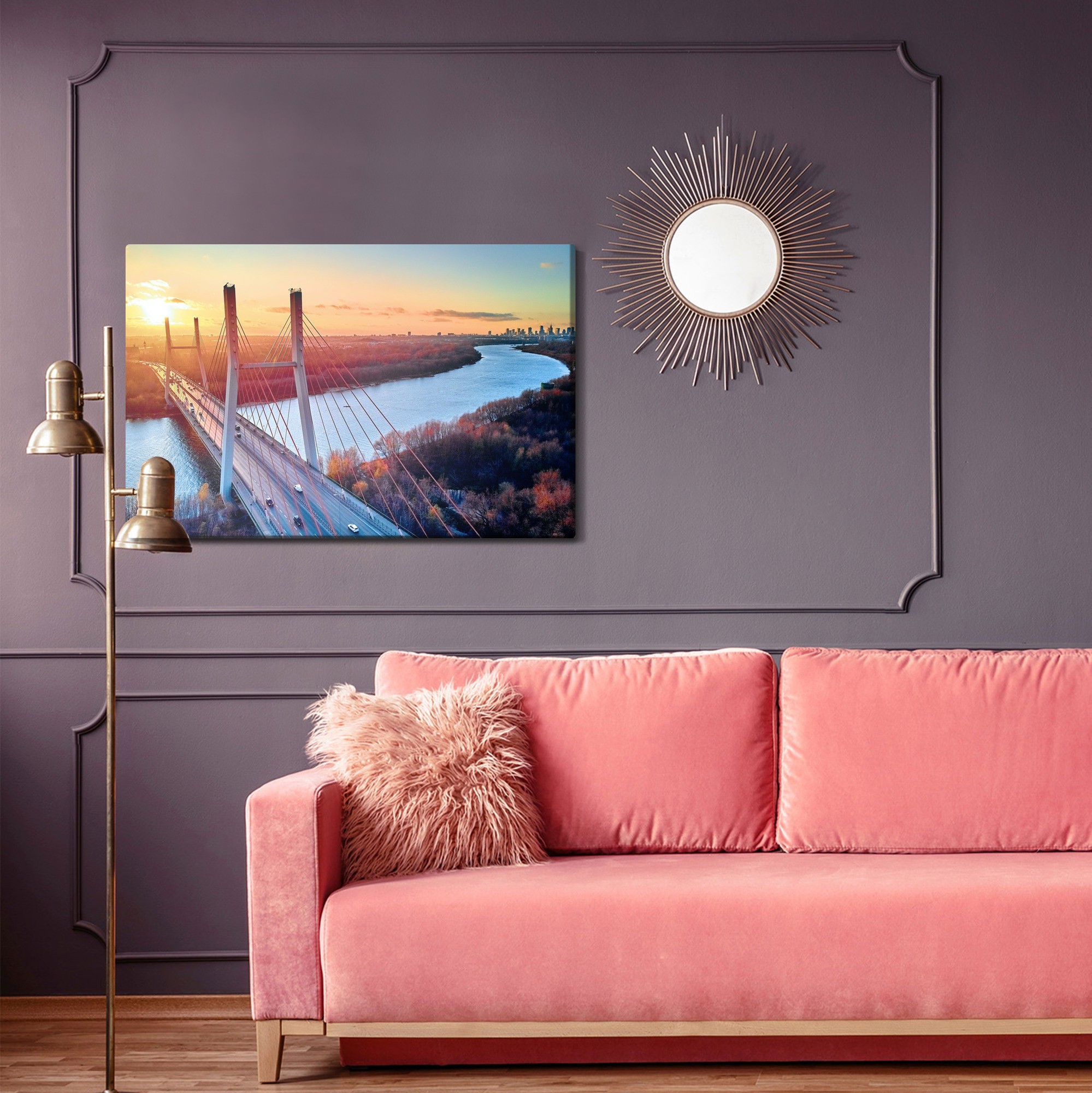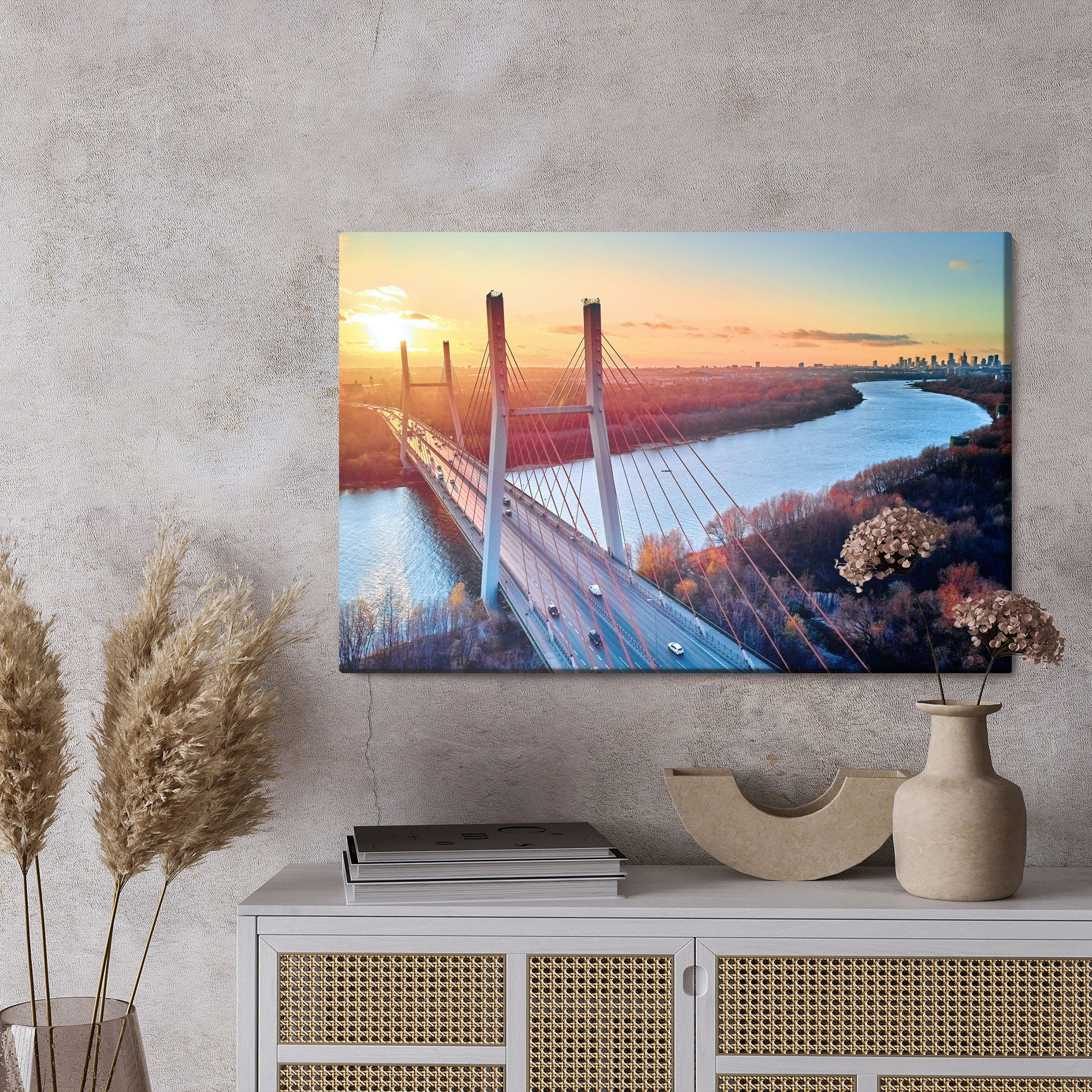 Ljuddämpande tavla – Bridge in Warsaw at sunset för lugnare rum och mjukare akustik