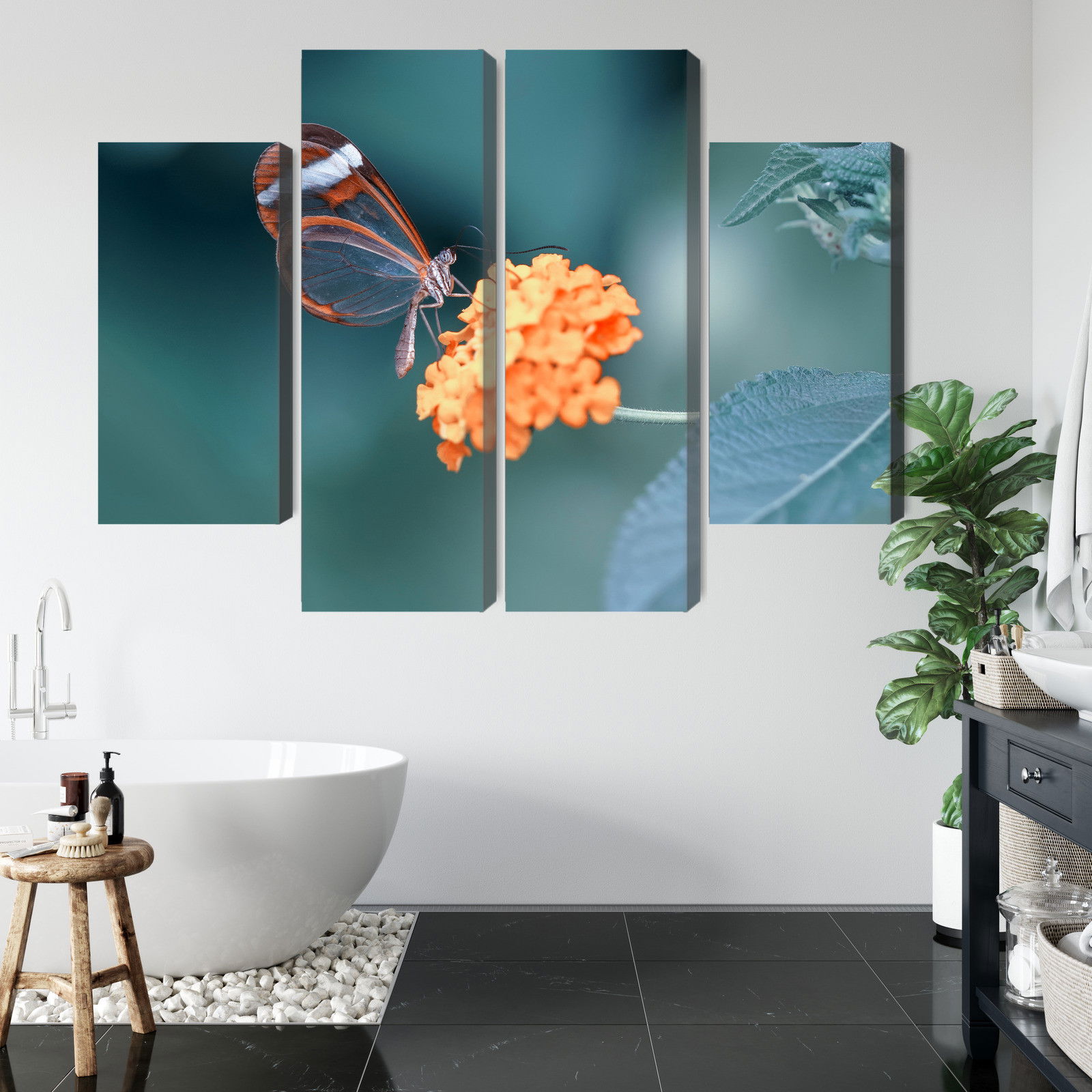 Motivet Butterfly in the summer återges med hög färgprecision och detaljrikedom tack vare HP Latex-teknologi. Trycket sker med vattenbaserade, luktfria och GREENGUARD Gold-certifierade bläck som ger en upplösning på upp till 300 DPI. Färgerna är UV-beständiga och behåller sin styrka även i ljusa rum, vilket gör tavlan lämplig för både hem- och offentliga miljöer.