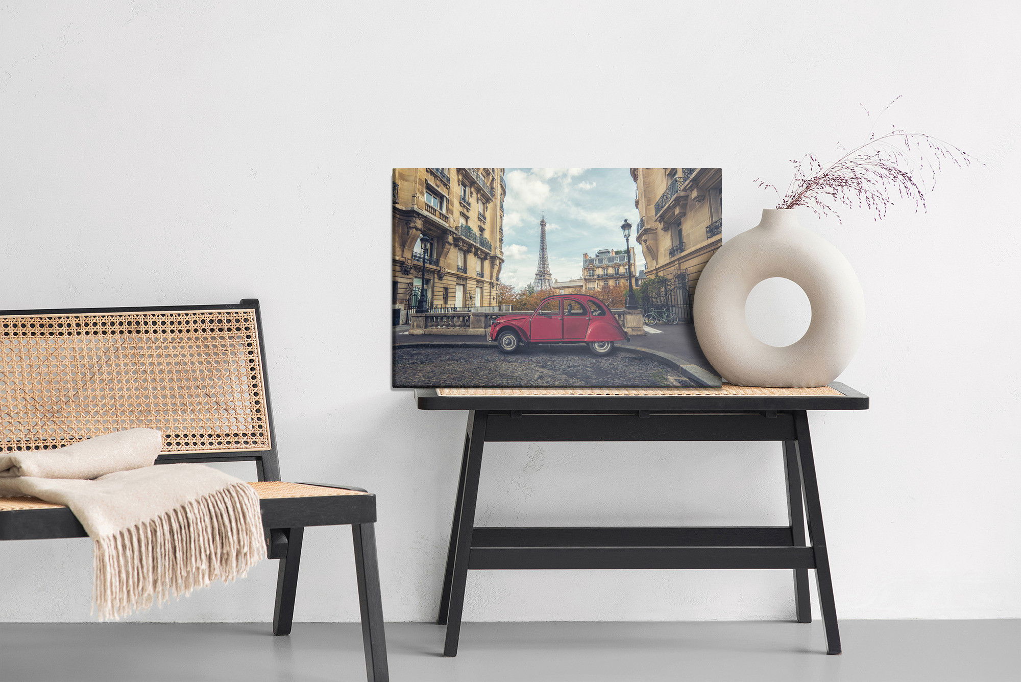 Med SilentDirects ljuddämpande tavla Car and architecture of Paris får du både ett stilrent motiv och en akustisk lösning i samma produkt. Tavlan byggs i Sverige och utgår från en canvastavla med fururam som fylls med en återvunnen polyestercell för effektiv ljudabsorption.