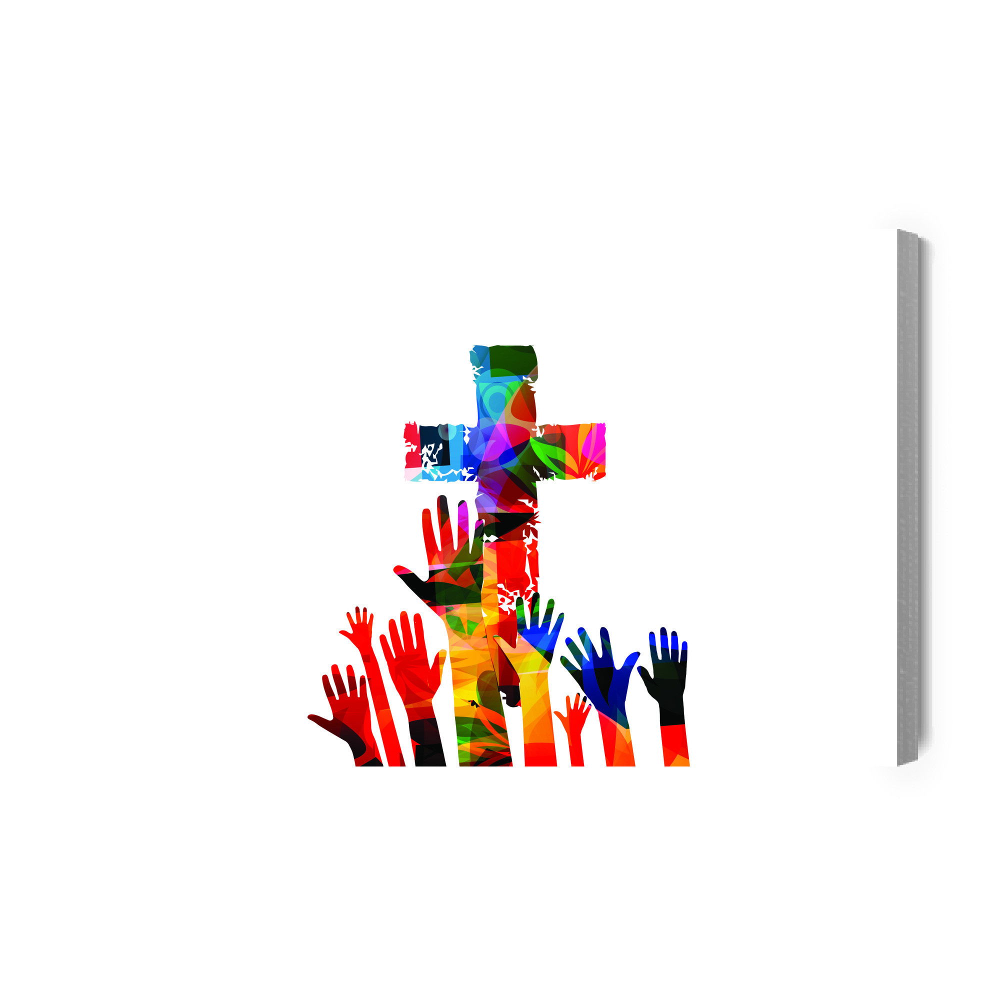 Varje tavla monteras på en massiv fururam. Format upp till 70×50 cm har en ram på 15 mm, medan format från 90×60 cm och uppåt har en ram på 20 mm. Den exakta dukspänningen gör att tavlan håller sin form över tid. Motivet Colorful christian cross trycks runt hela ramen vilket ger ett stilrent galleriuttryck där tavlan är lika vacker från sidan som framifrån. Kombinationen av rak dukspänning, rena linjer och korrekt tryck ger en professionell finish.