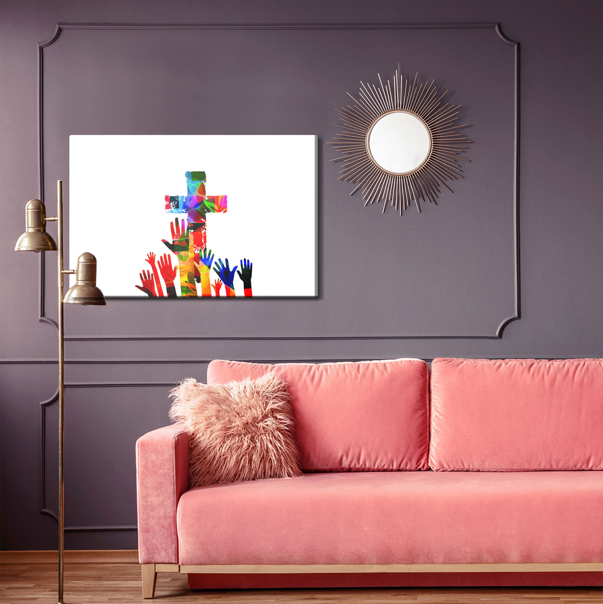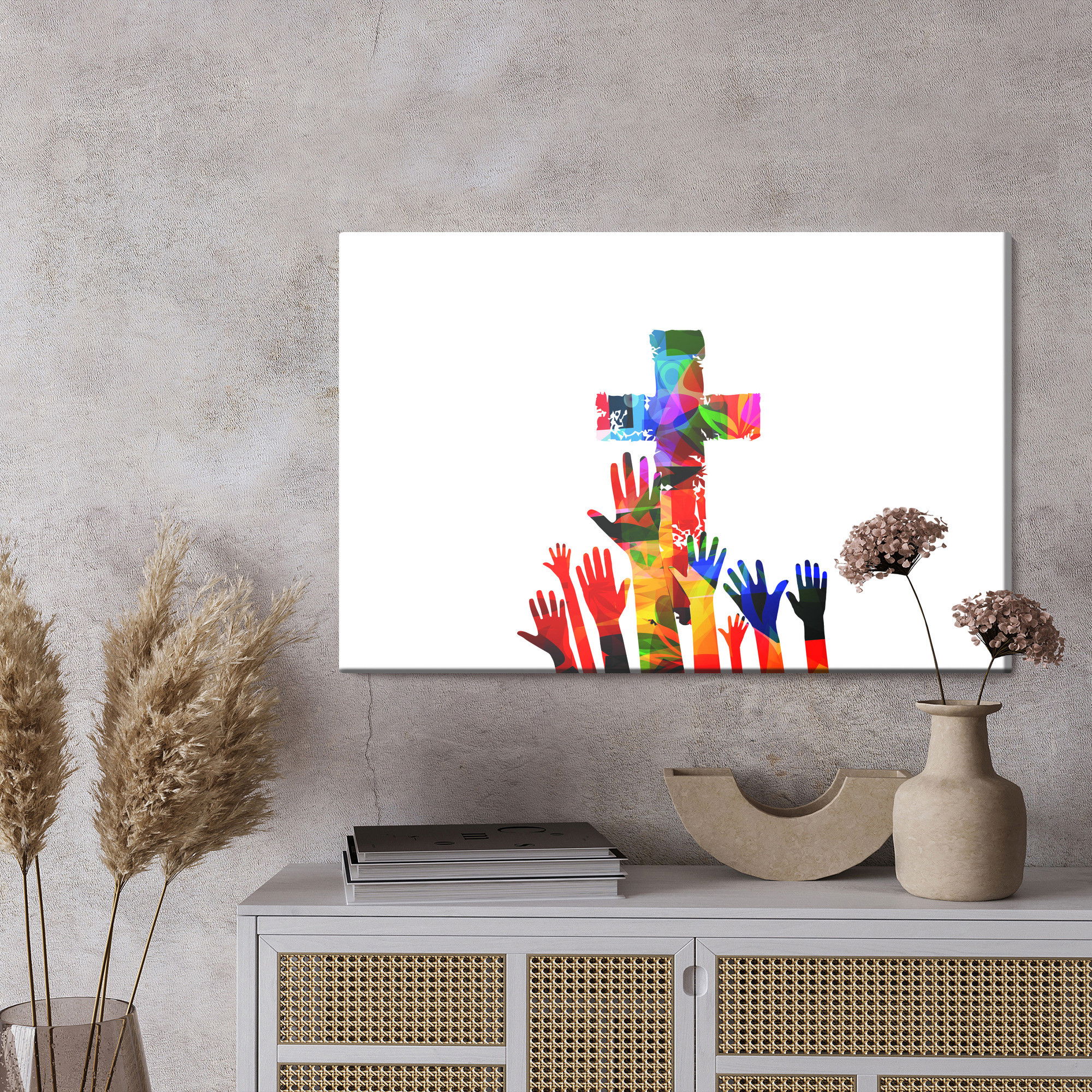Ljuddämpande tavla – Colorful christian cross för lugnare rum och mjukare akustik