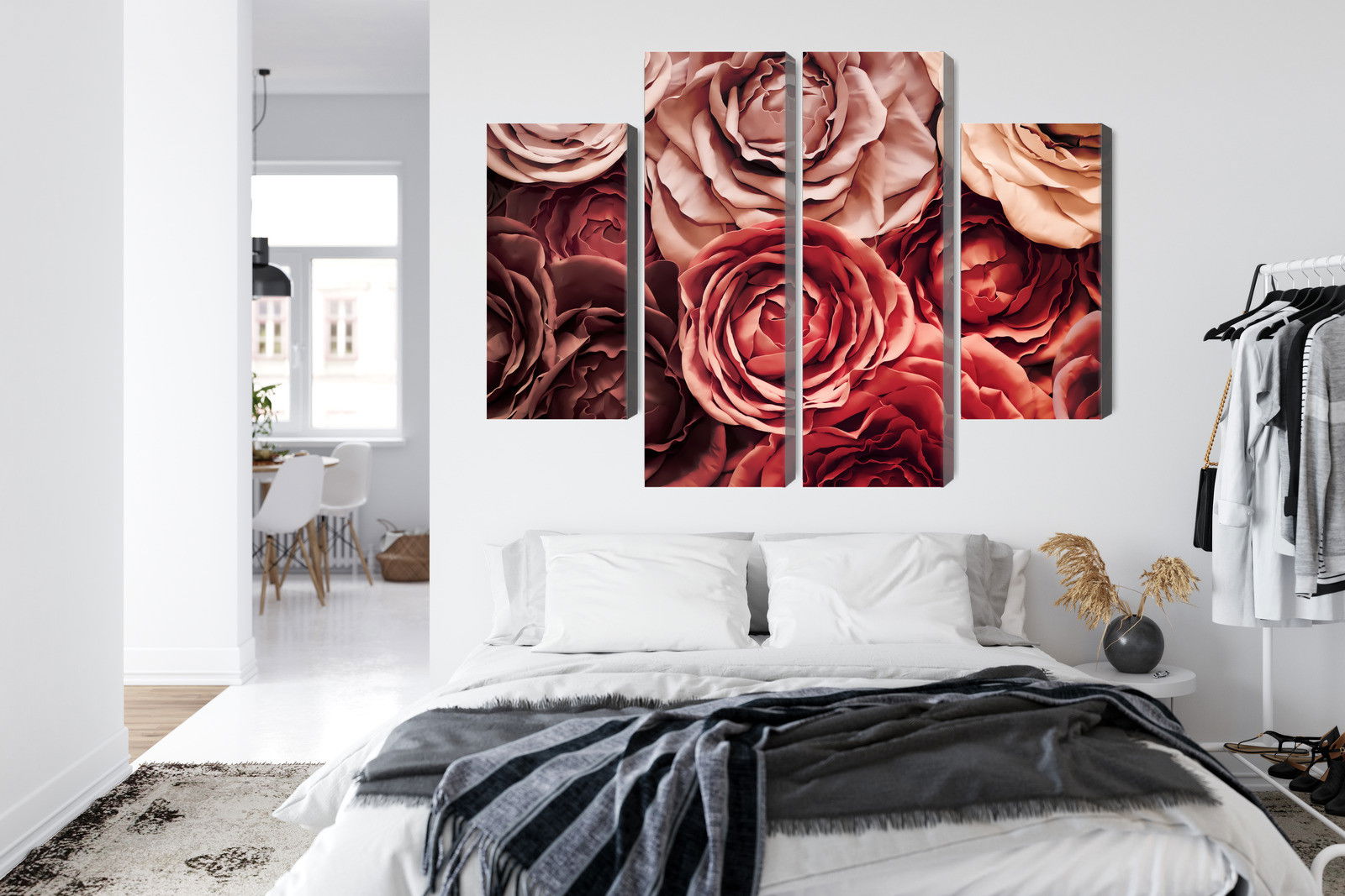 Varje tavla monteras på en massiv fururam. Format upp till 70×50 cm har en ram på 15 mm, medan format från 90×60 cm och uppåt har en ram på 20 mm. Den exakta dukspänningen gör att tavlan håller sin form över tid. Motivet Colorful flowers close up 3d trycks runt hela ramen vilket ger ett stilrent galleriuttryck där tavlan är lika vacker från sidan som framifrån. Kombinationen av rak dukspänning, rena linjer och korrekt tryck ger en professionell finish.