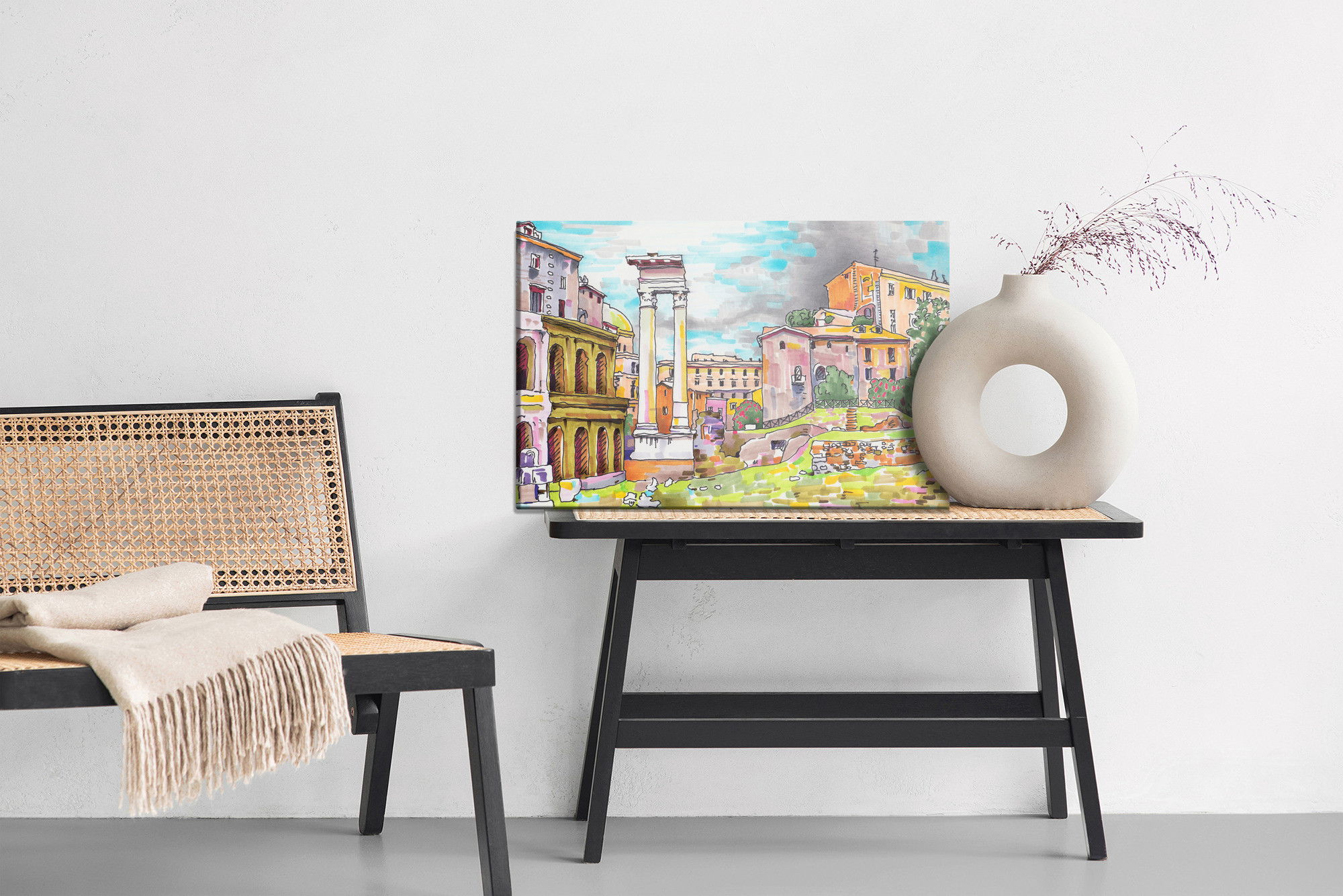 Motivet Colors of Rome återges med hög färgprecision och detaljrikedom tack vare HP Latex-teknologi. Trycket sker med vattenbaserade, luktfria och GREENGUARD Gold-certifierade bläck som ger en upplösning på upp till 300 DPI. Färgerna är UV-beständiga och behåller sin styrka även i ljusa rum, vilket gör tavlan lämplig för både hem- och offentliga miljöer.