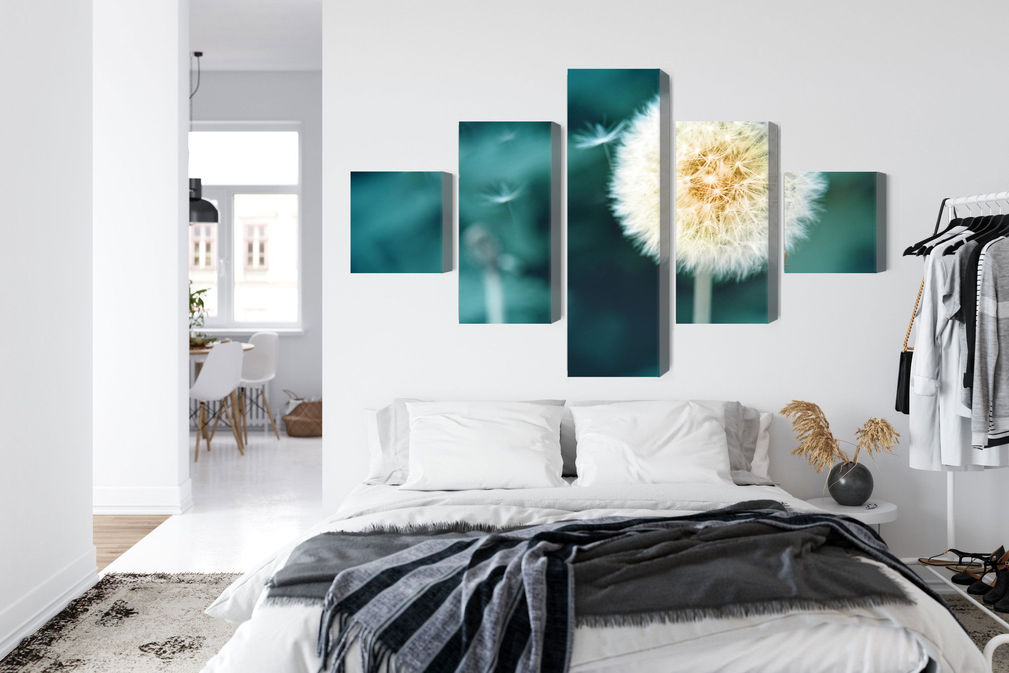 Varje tavla monteras på en massiv fururam. Format upp till 70×50 cm har en ram på 15 mm, medan format från 90×60 cm och uppåt har en ram på 20 mm. Den exakta dukspänningen gör att tavlan håller sin form över tid. Motivet Dandelion flower close up 3d trycks runt hela ramen vilket ger ett stilrent galleriuttryck där tavlan är lika vacker från sidan som framifrån. Kombinationen av rak dukspänning, rena linjer och korrekt tryck ger en professionell finish.