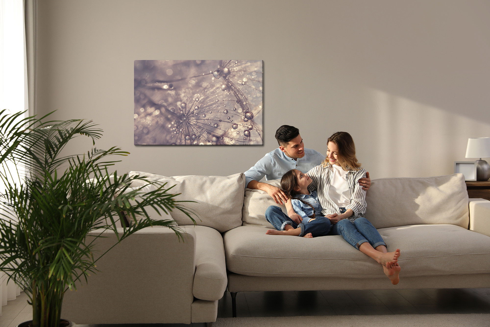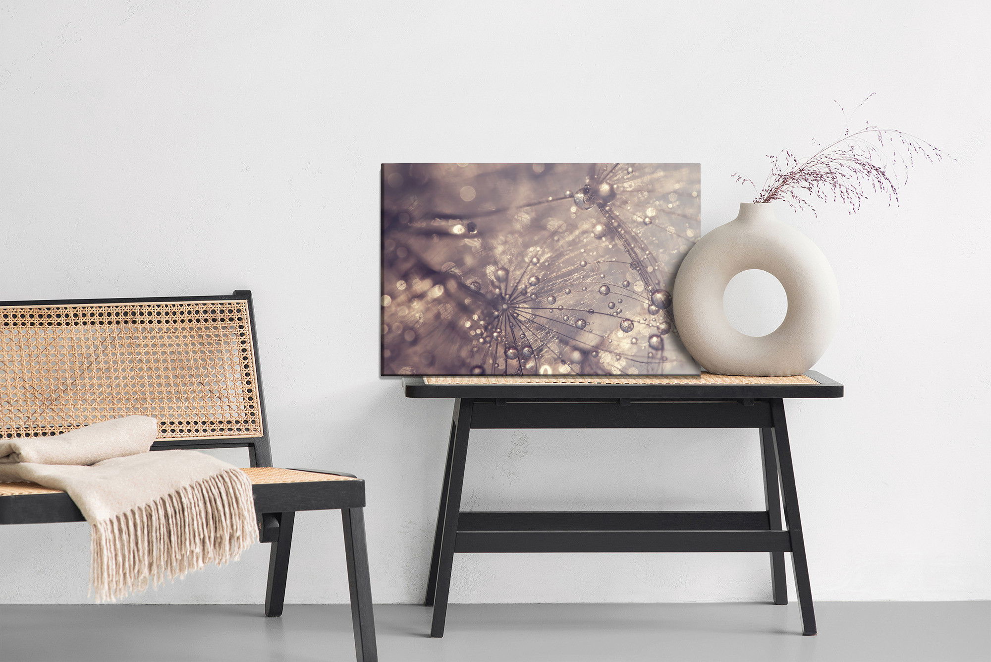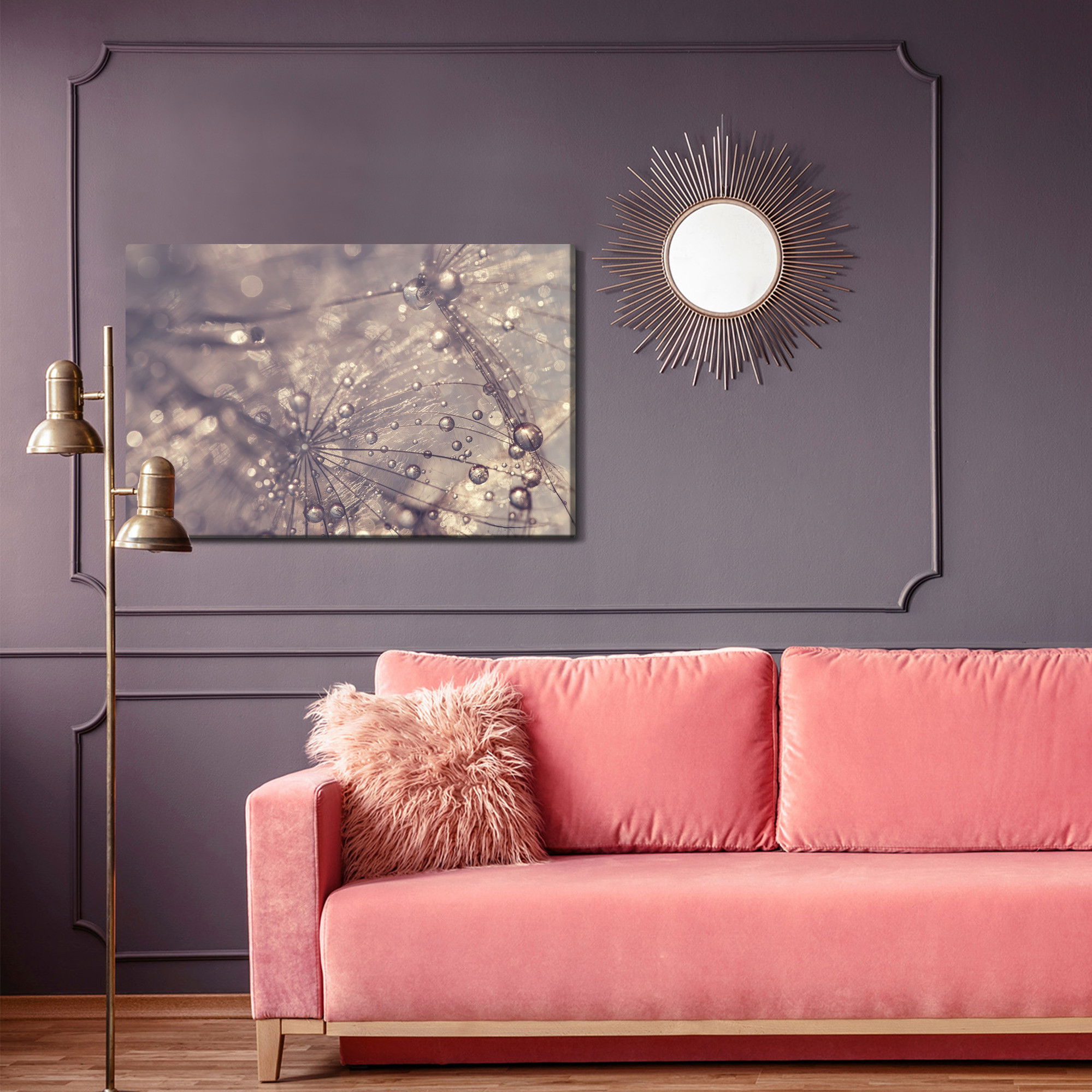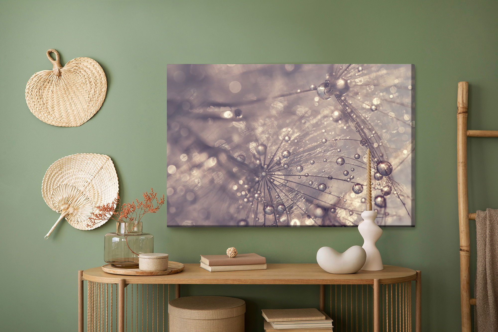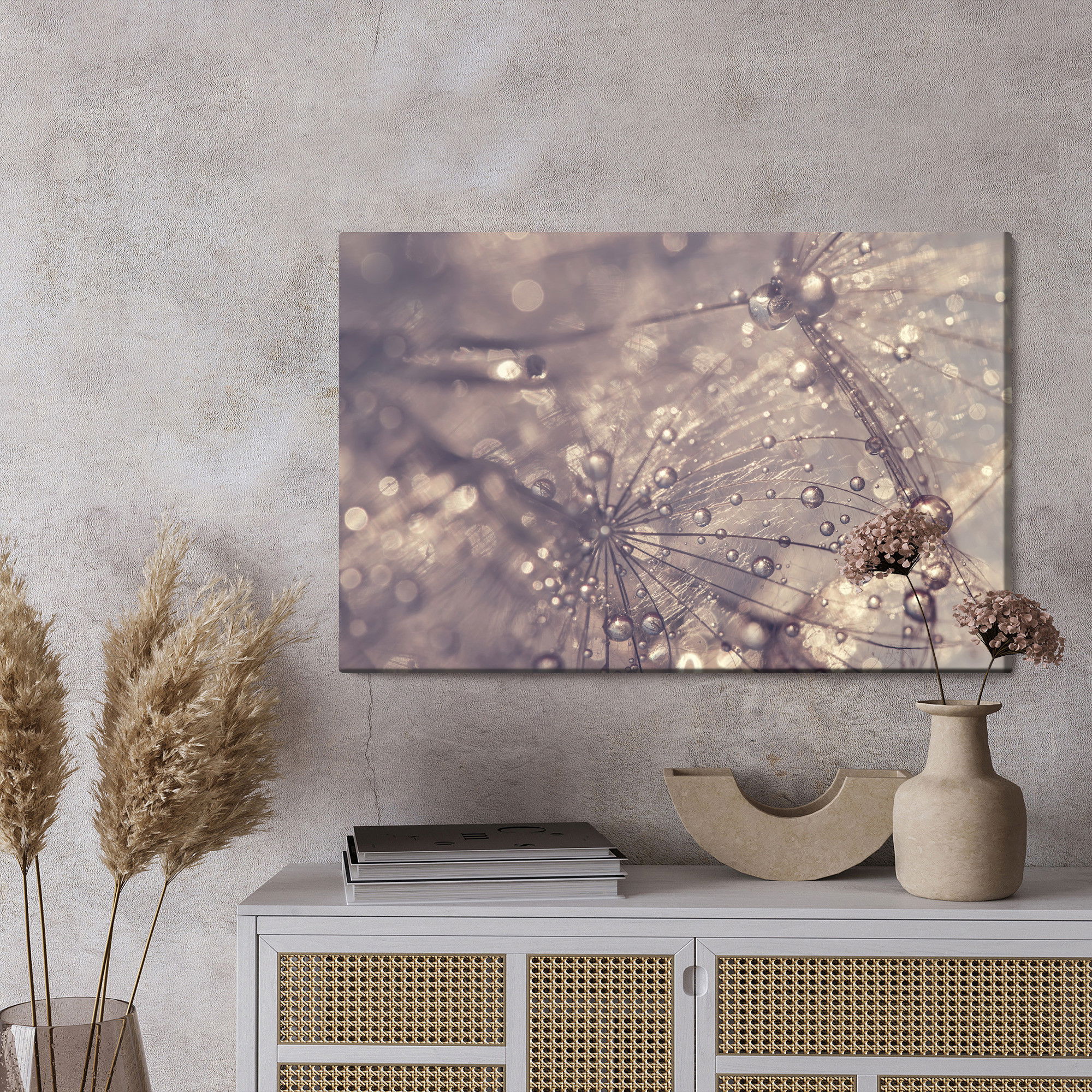 Ljuddämpande tavla – Dandelion, water drops för lugnare rum och mjukare akustik