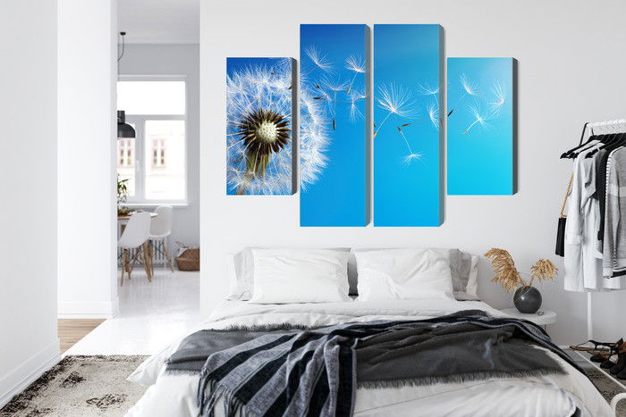 Ljuddämpande tavla – Dandelion with flying seeds för lugnare rum och mjukare akustik