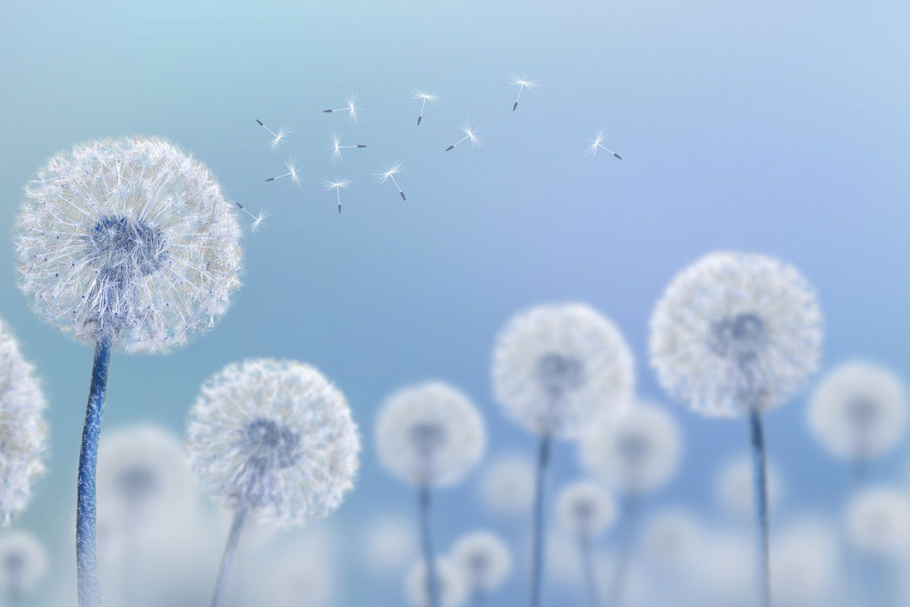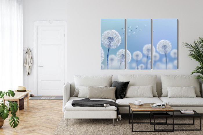 Ljuddämpande tavla – Dandelions on a blue för lugnare rum och mjukare akustik