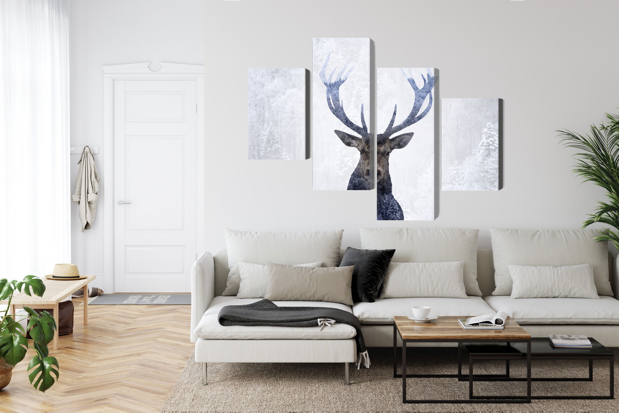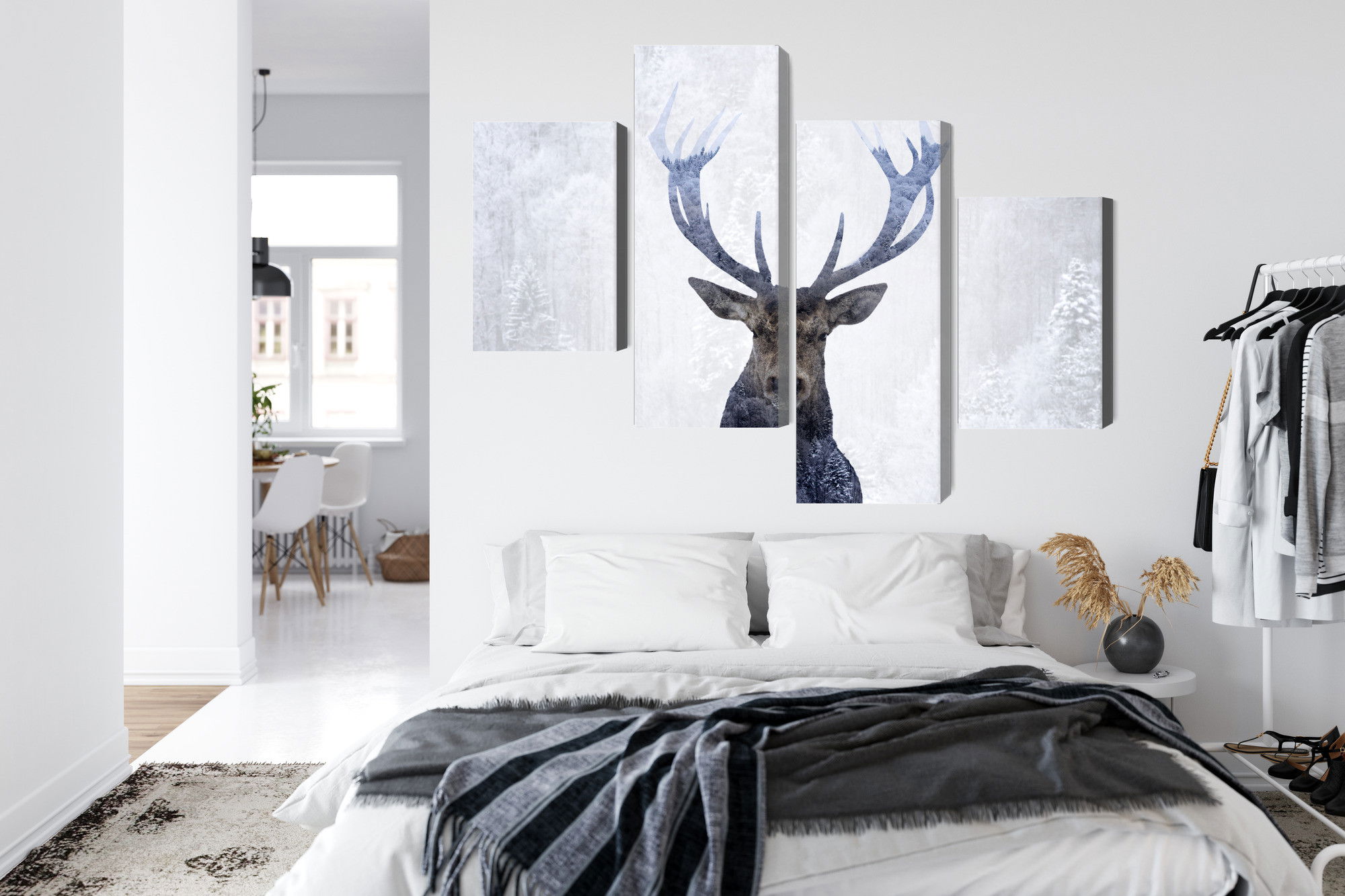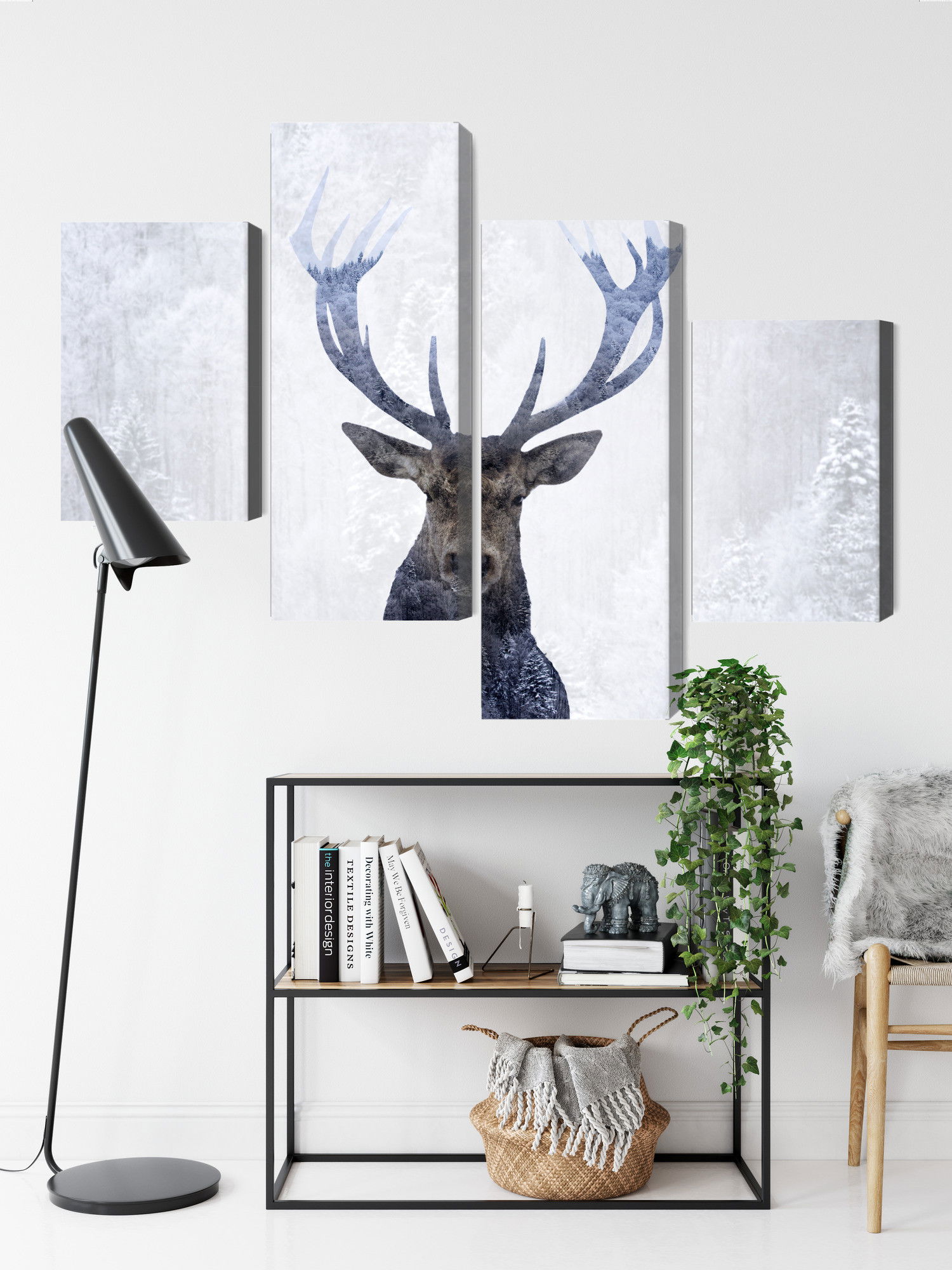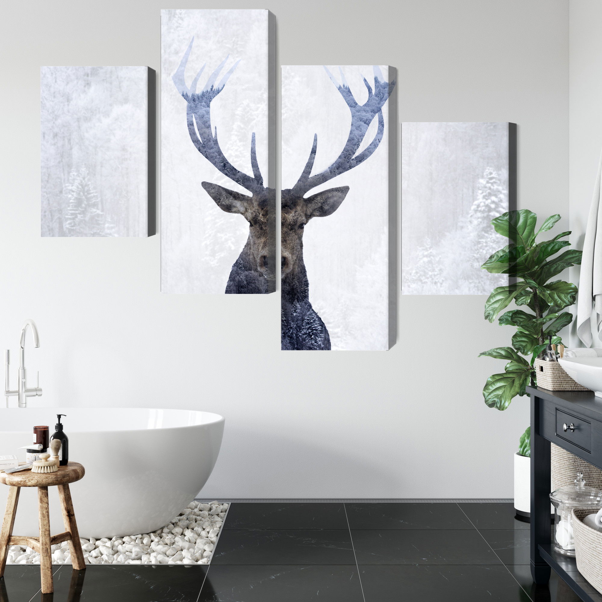 Ljuddämpande tavla – Deer in the winter 3d forest för lugnare rum och mjukare akustik