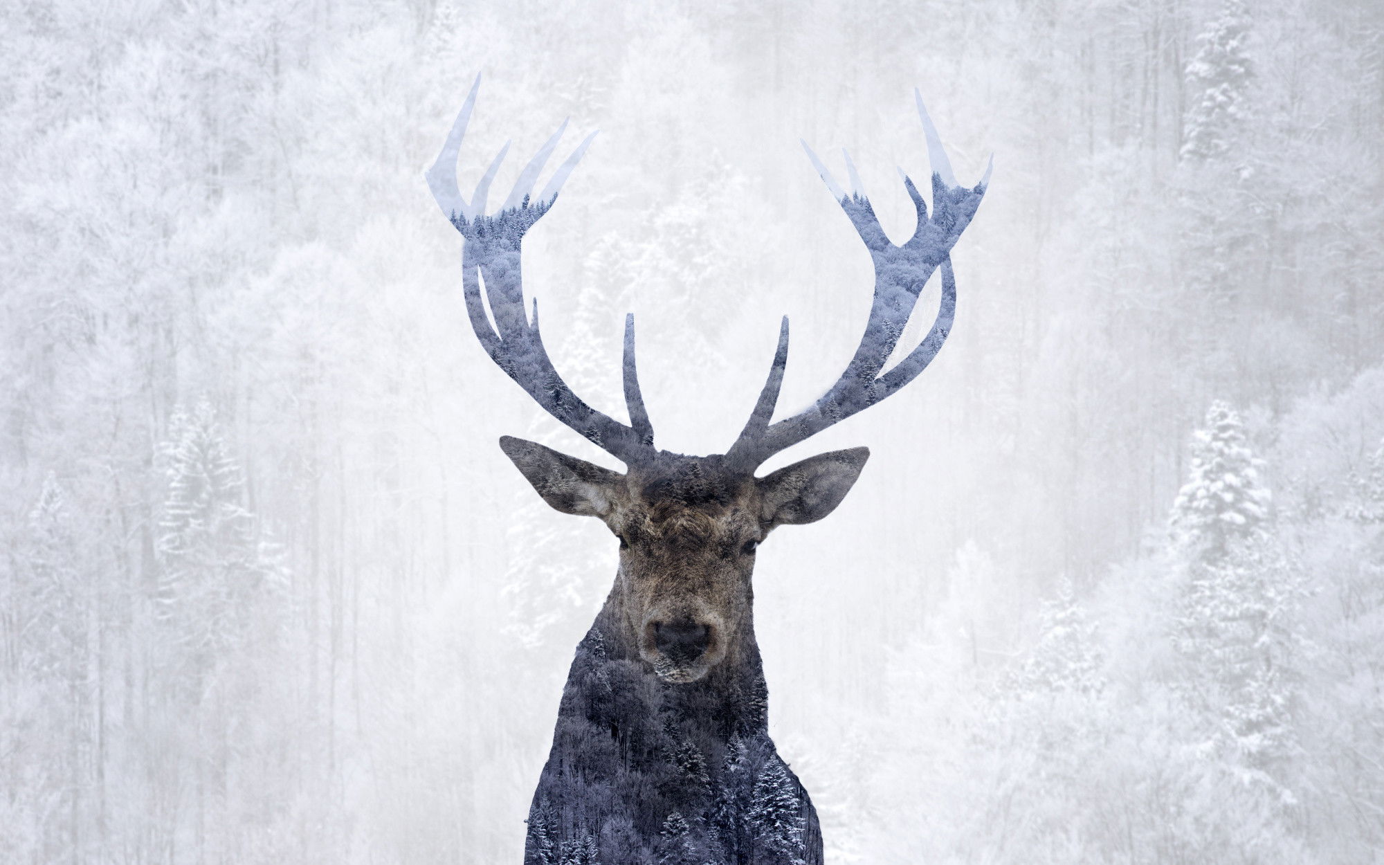 Ljuddämpande tavla - Deer in the winter 3d forest