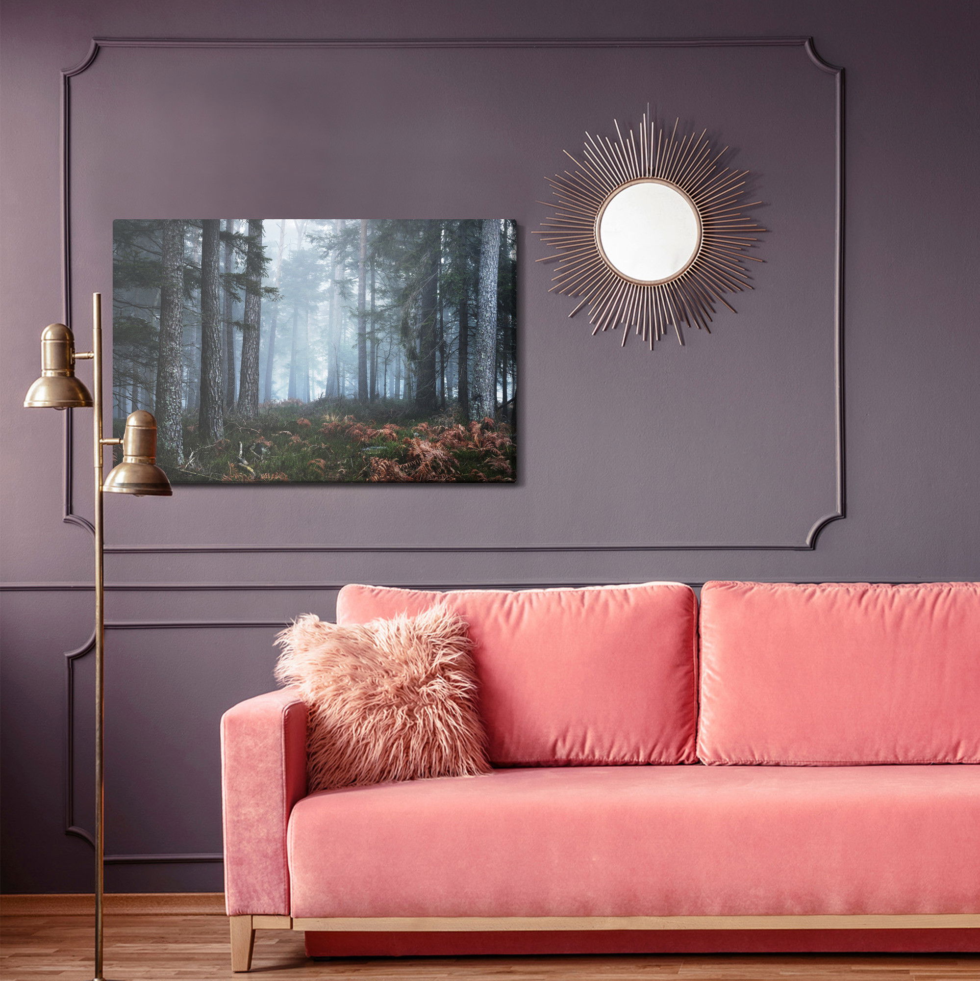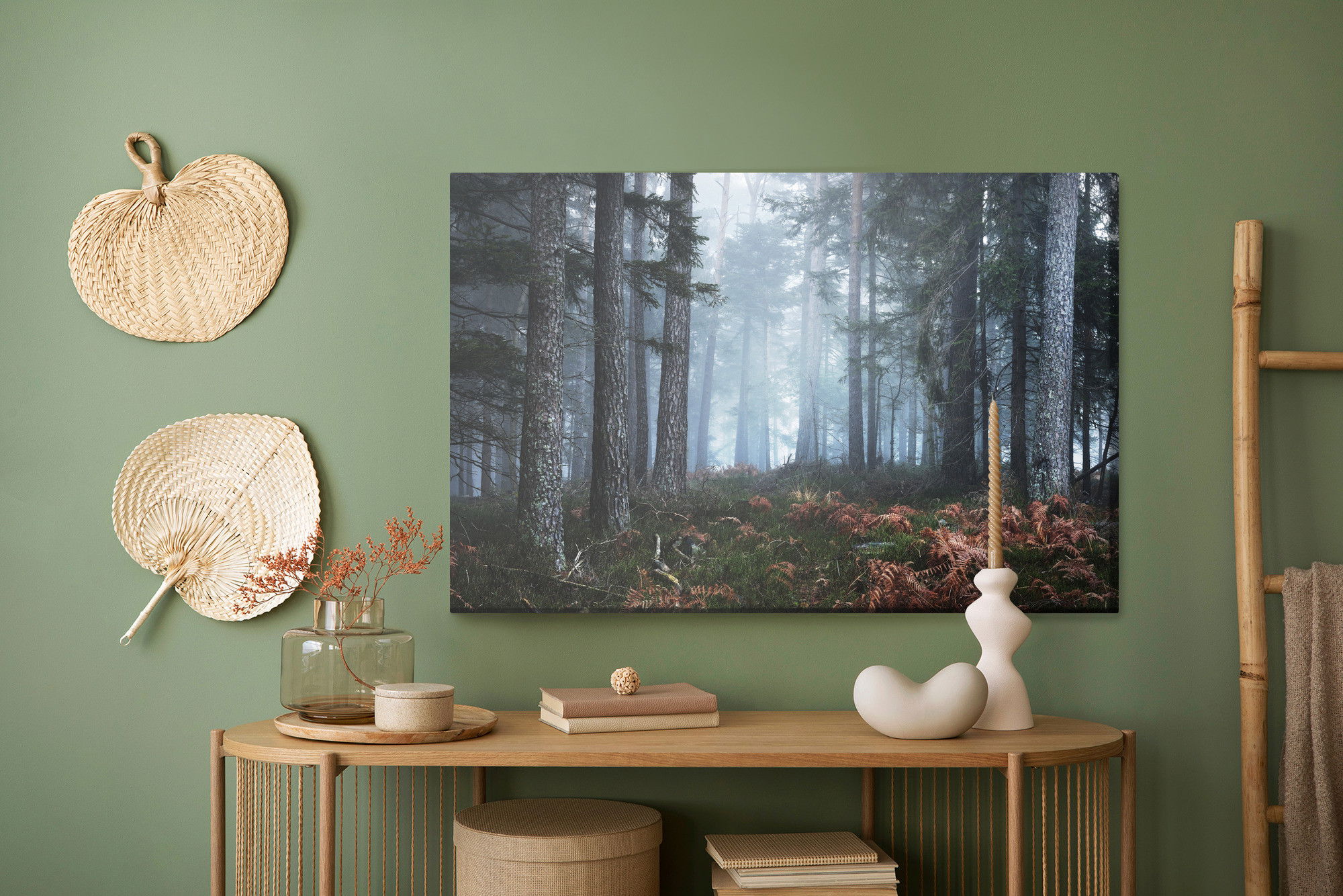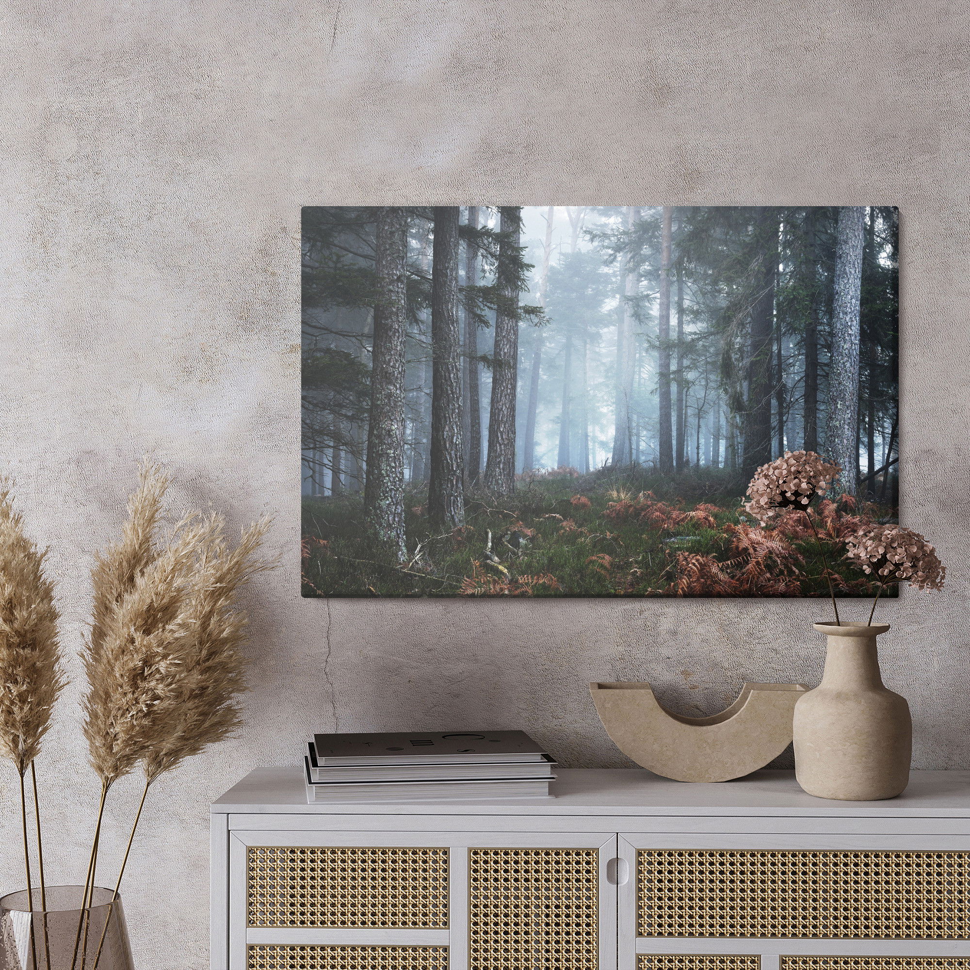 Ljuddämpande tavla – Forest in the fog för lugnare rum och mjukare akustik