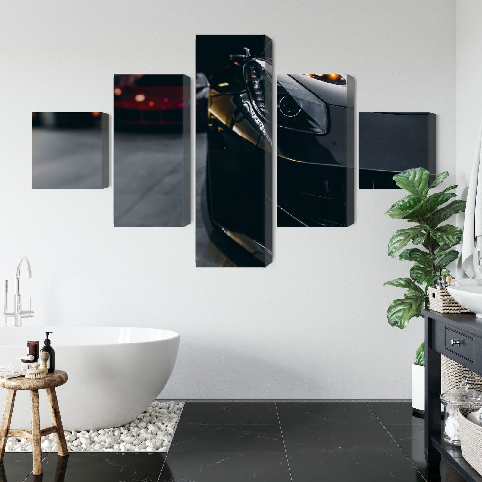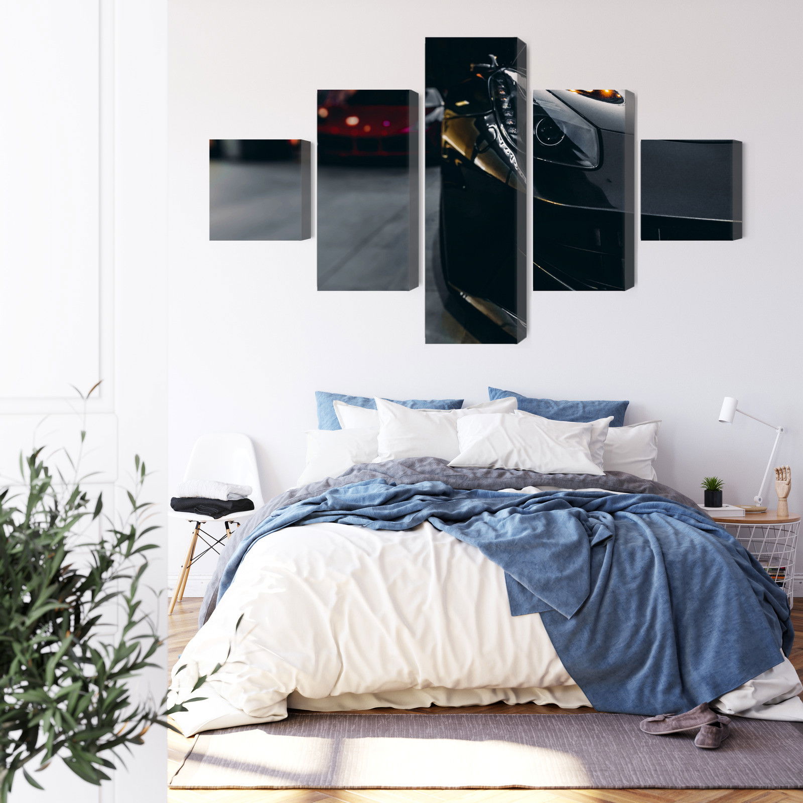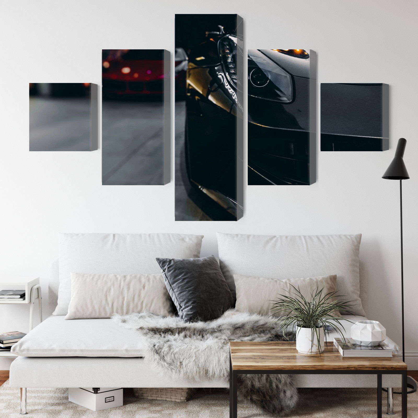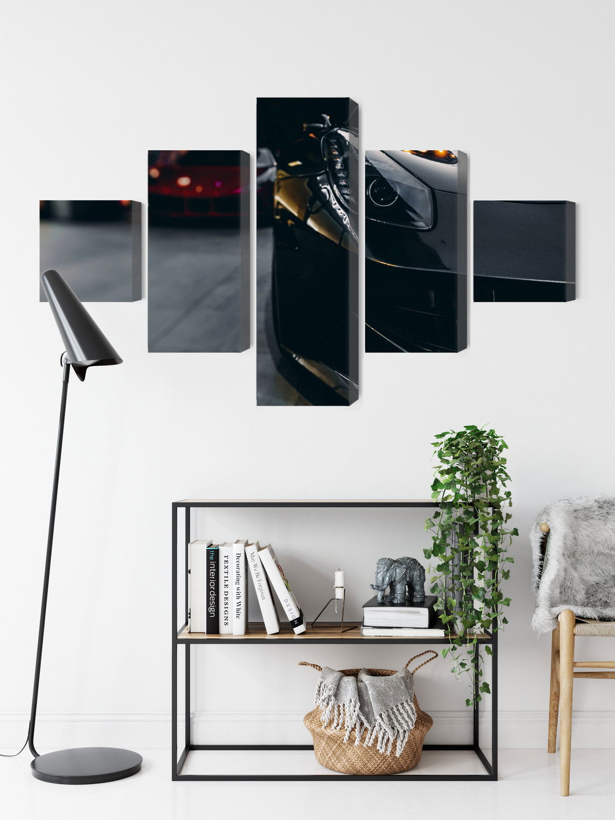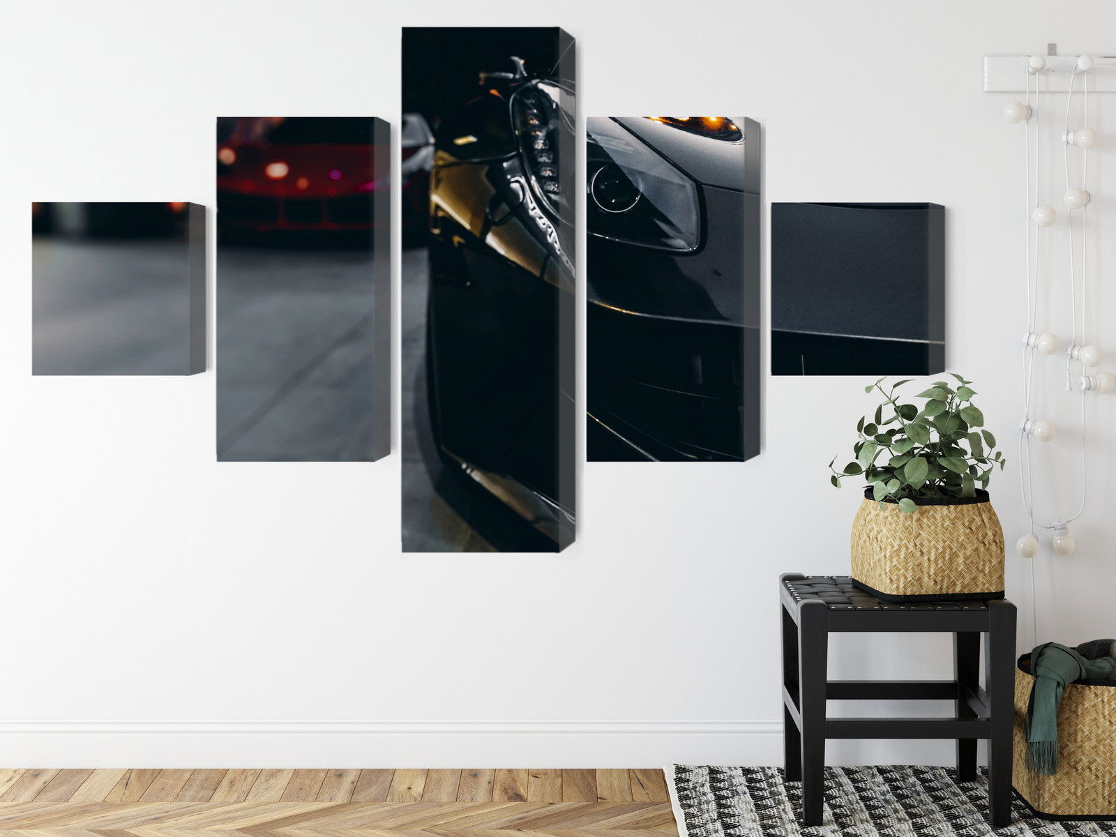 Ljuddämpande tavla – Front of a black sports car för lugnare rum och mjukare akustik