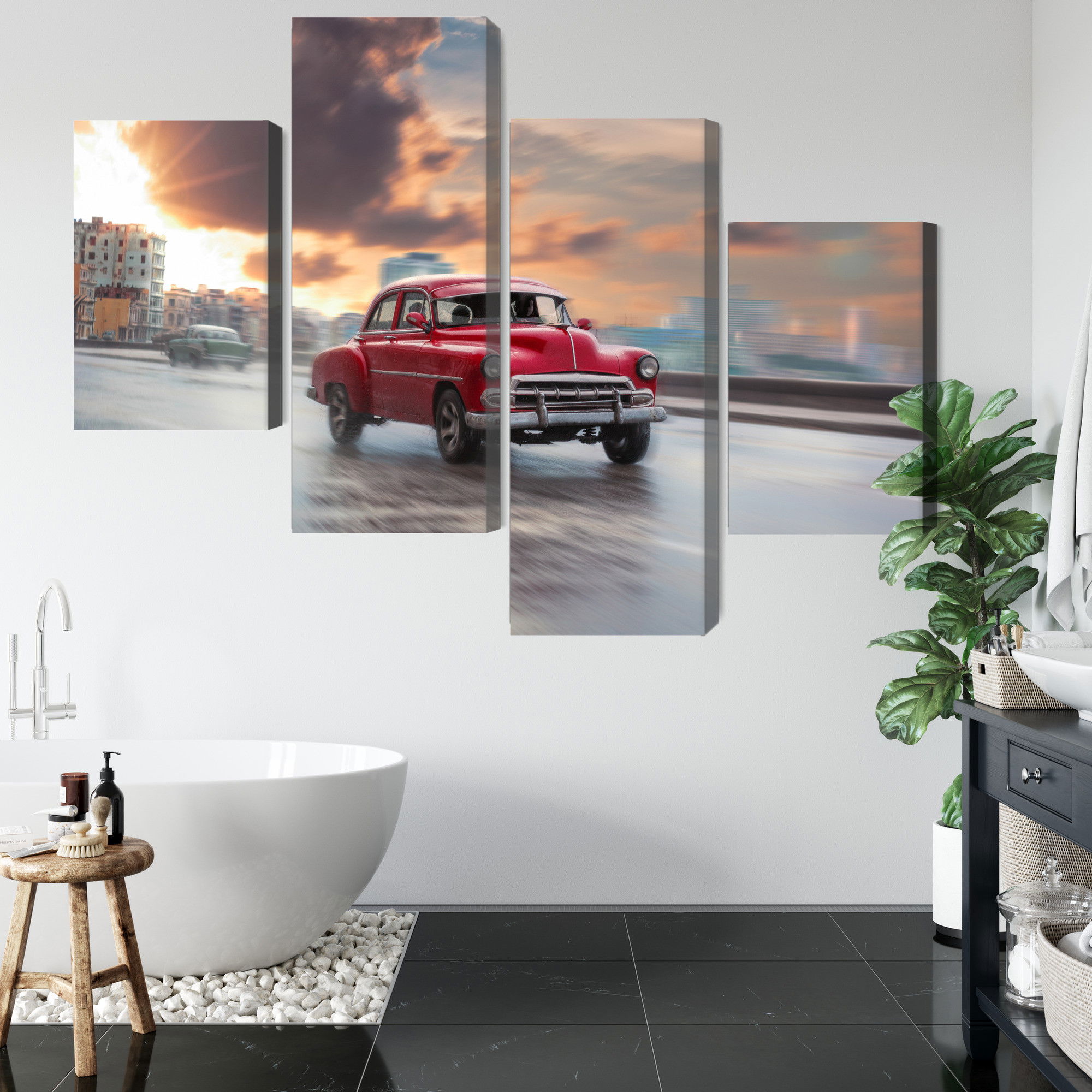 Ljuddämpande tavla – Historic car on the road för lugnare rum och mjukare akustik