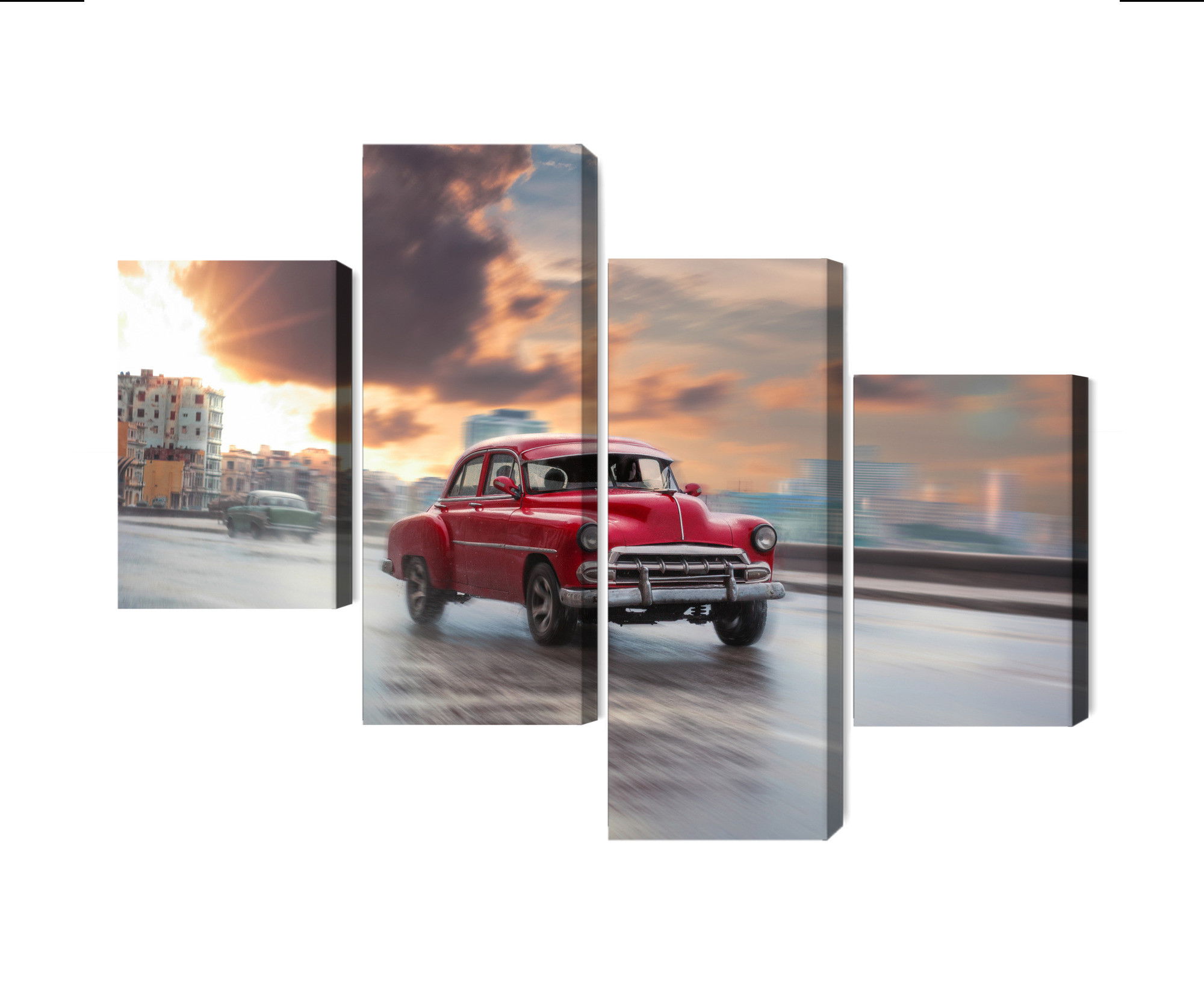 Motivet Historic car on the road återges med hög färgprecision och detaljrikedom tack vare HP Latex-teknologi. Trycket sker med vattenbaserade, luktfria och GREENGUARD Gold-certifierade bläck som ger en upplösning på upp till 300 DPI. Färgerna är UV-beständiga och behåller sin styrka även i ljusa rum, vilket gör tavlan lämplig för både hem- och offentliga miljöer.