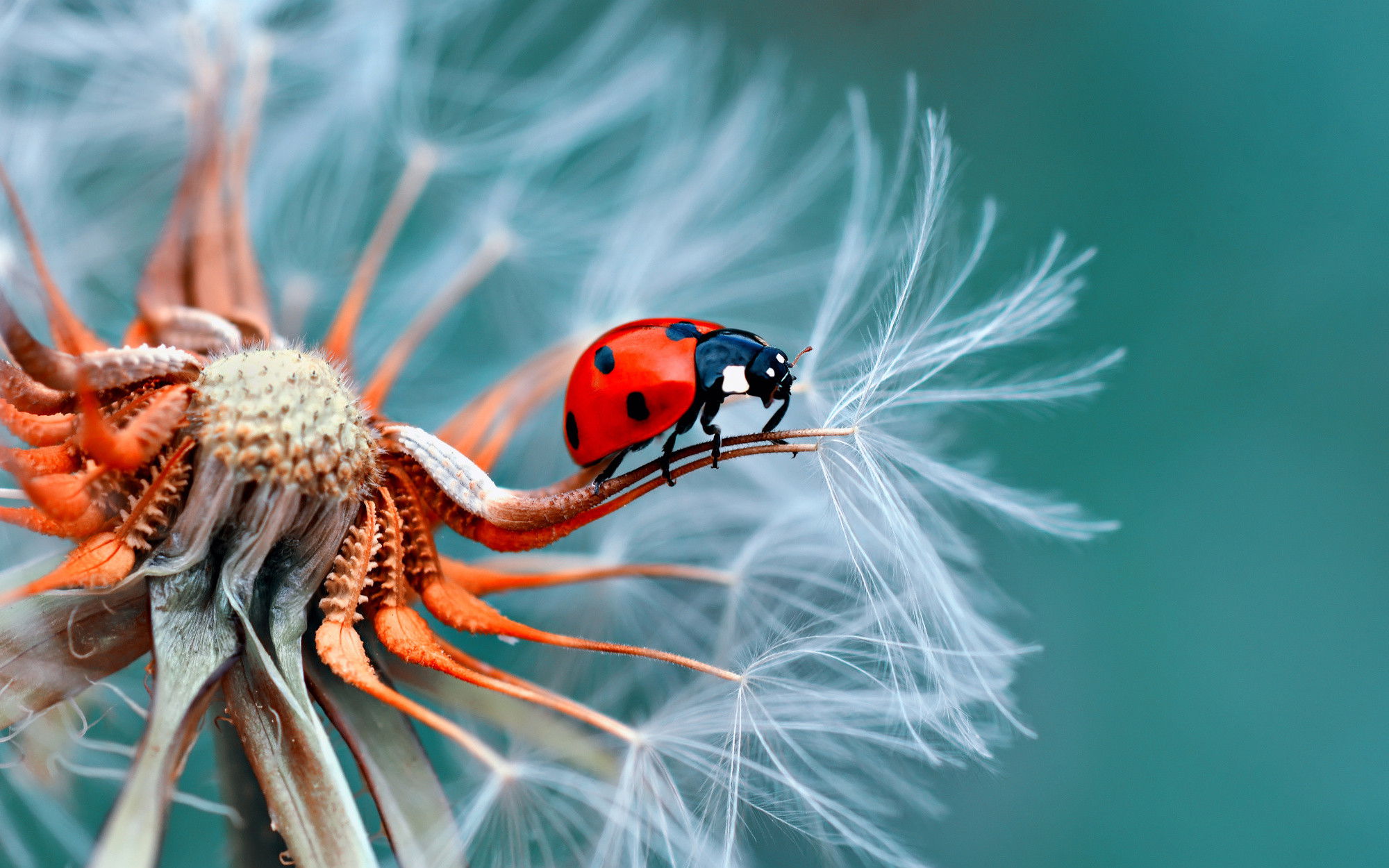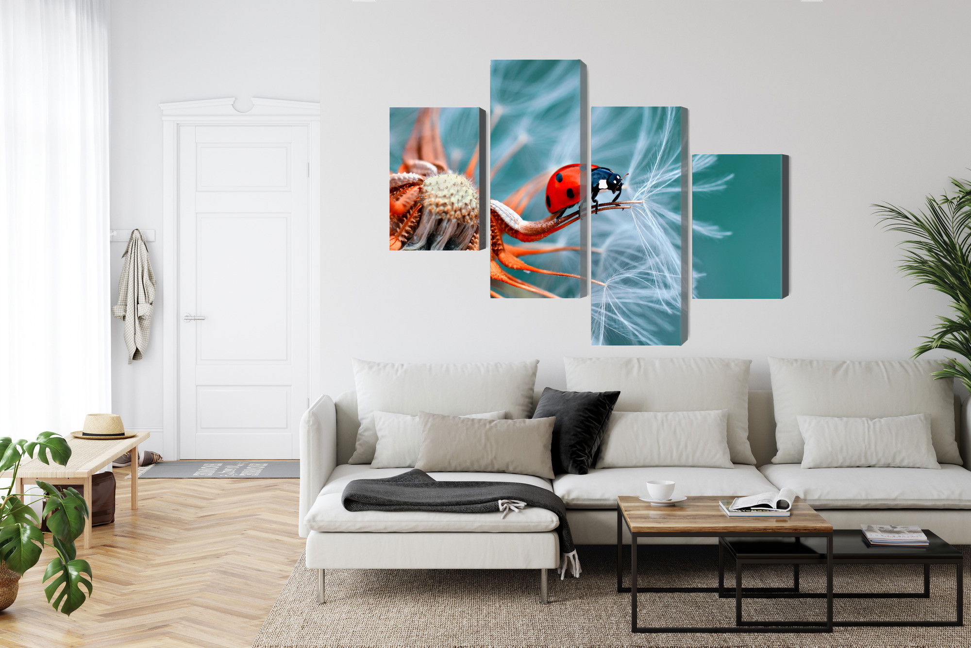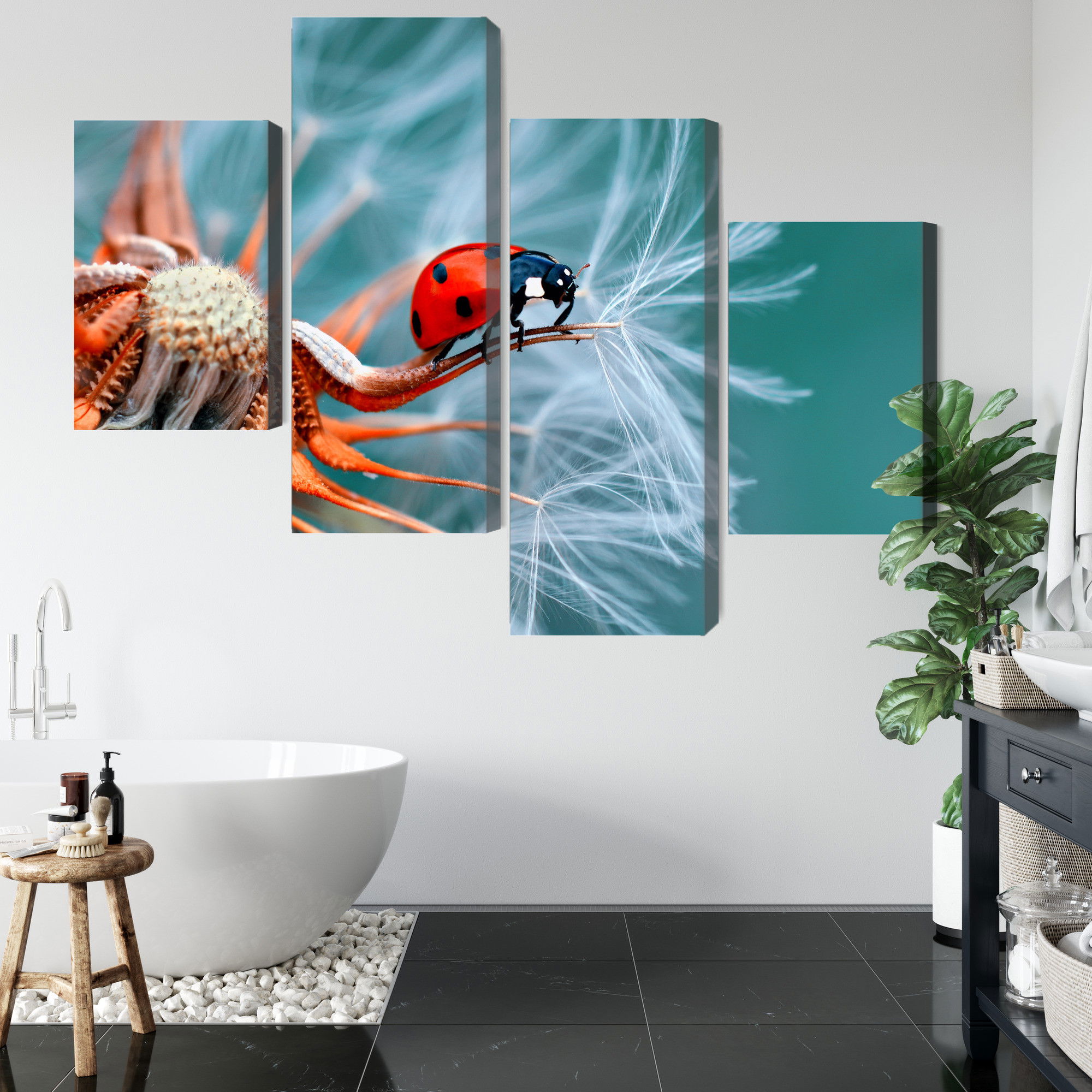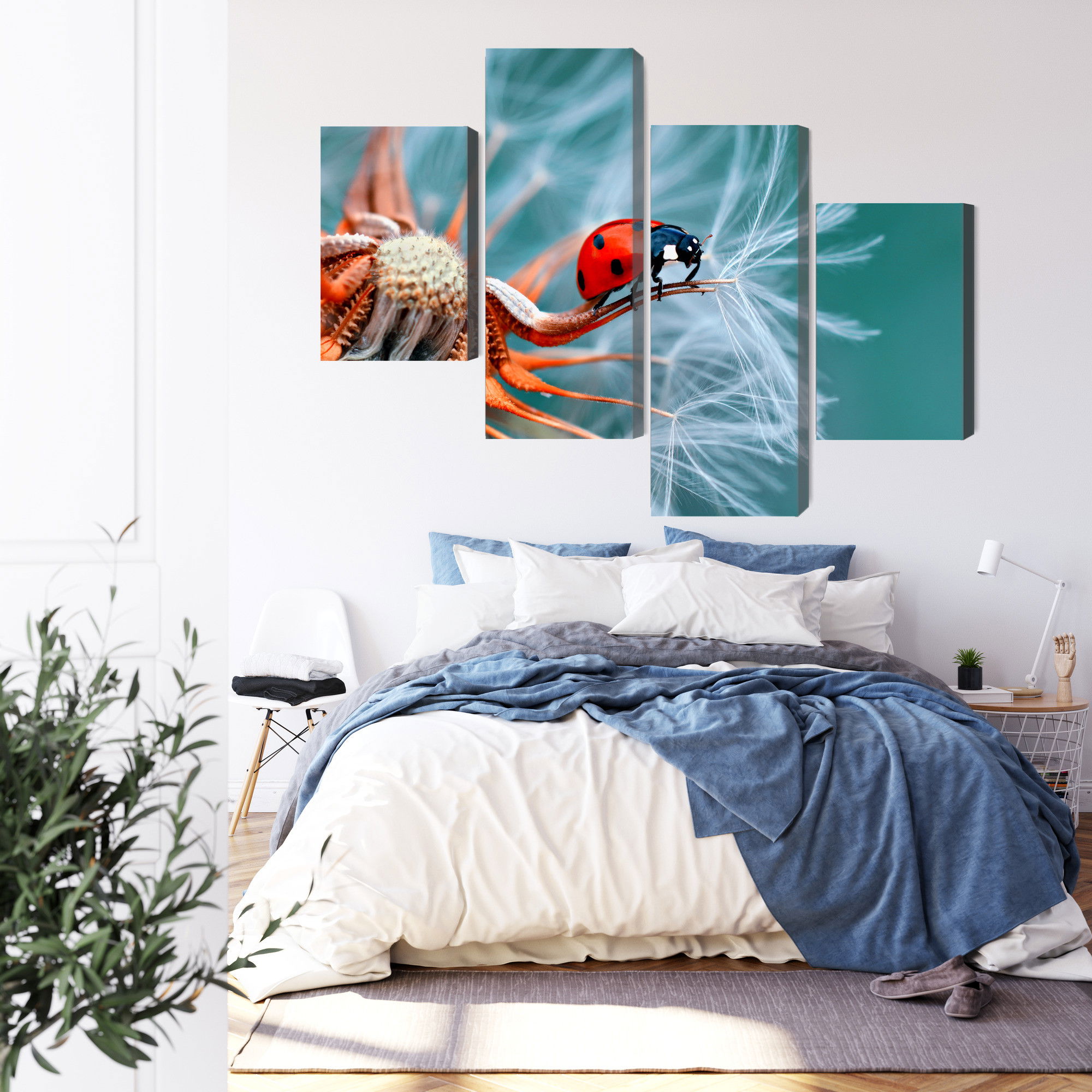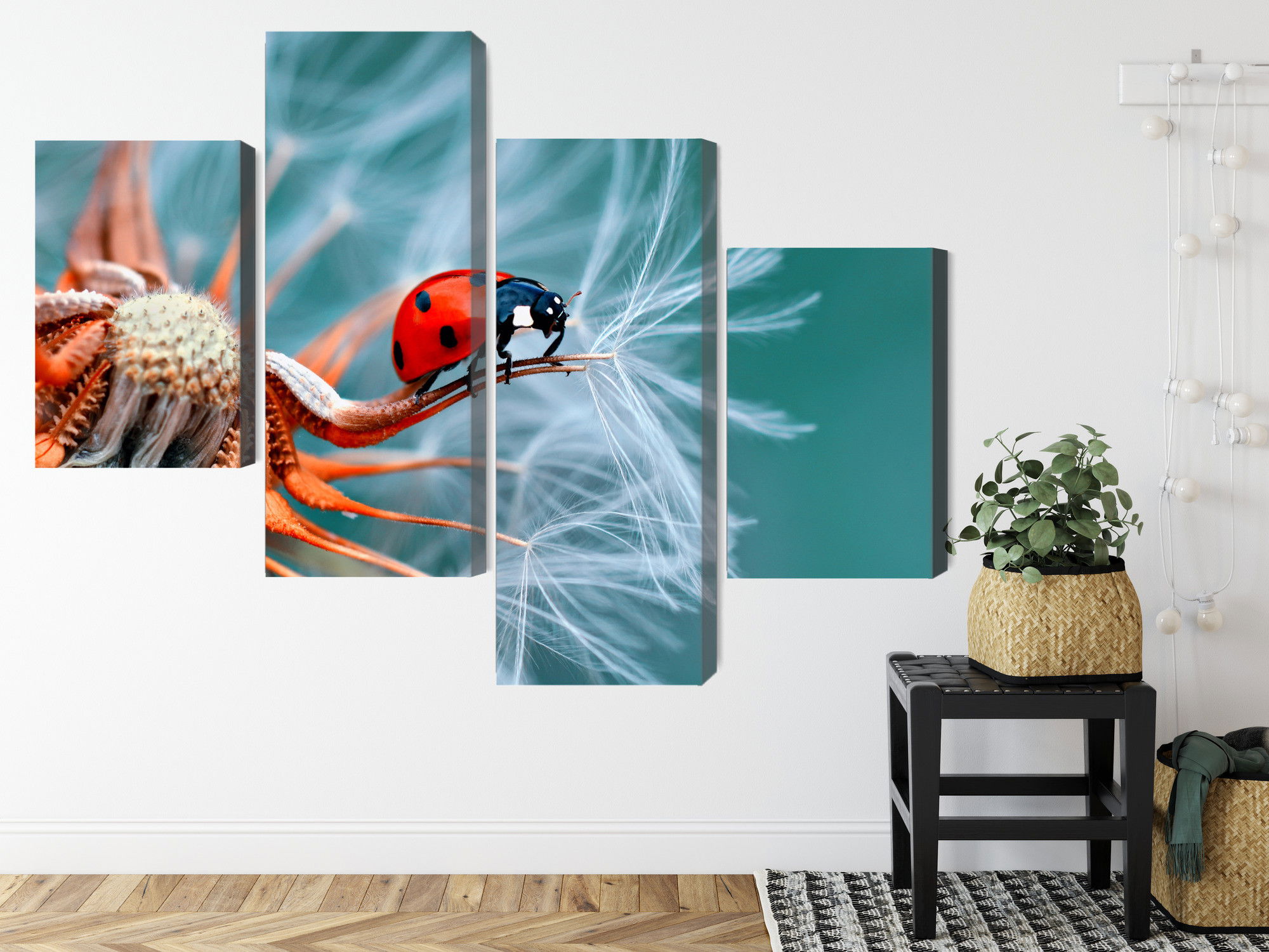 Ljuddämpande tavla – Ladybug on a dandelion för lugnare rum och mjukare akustik