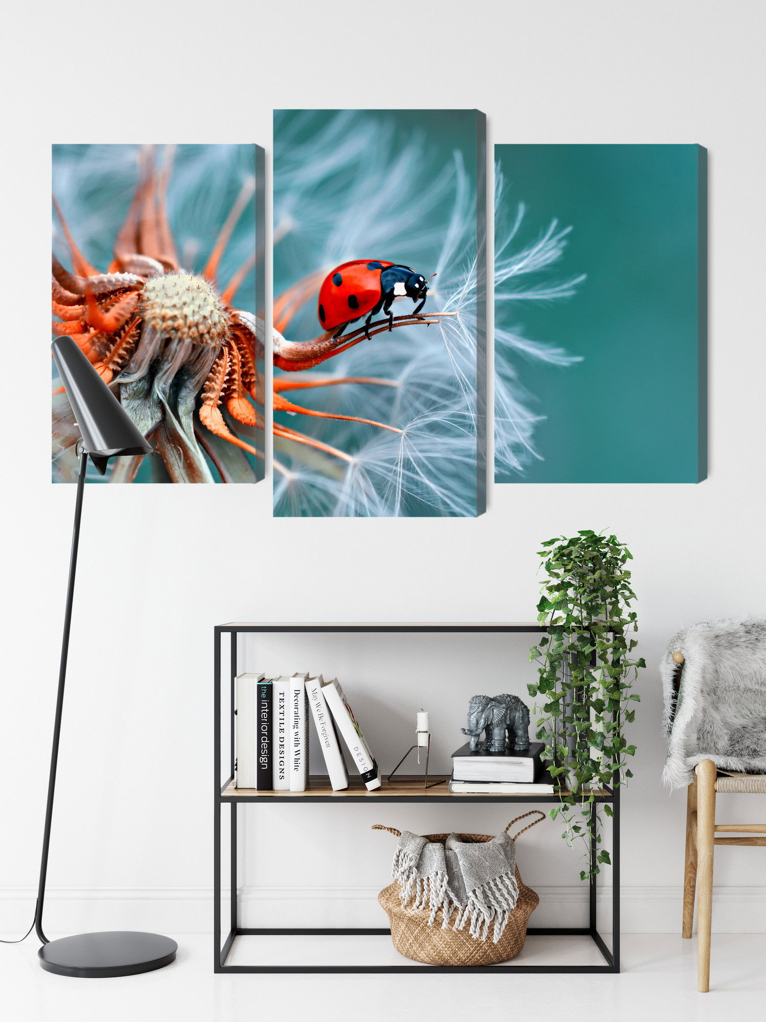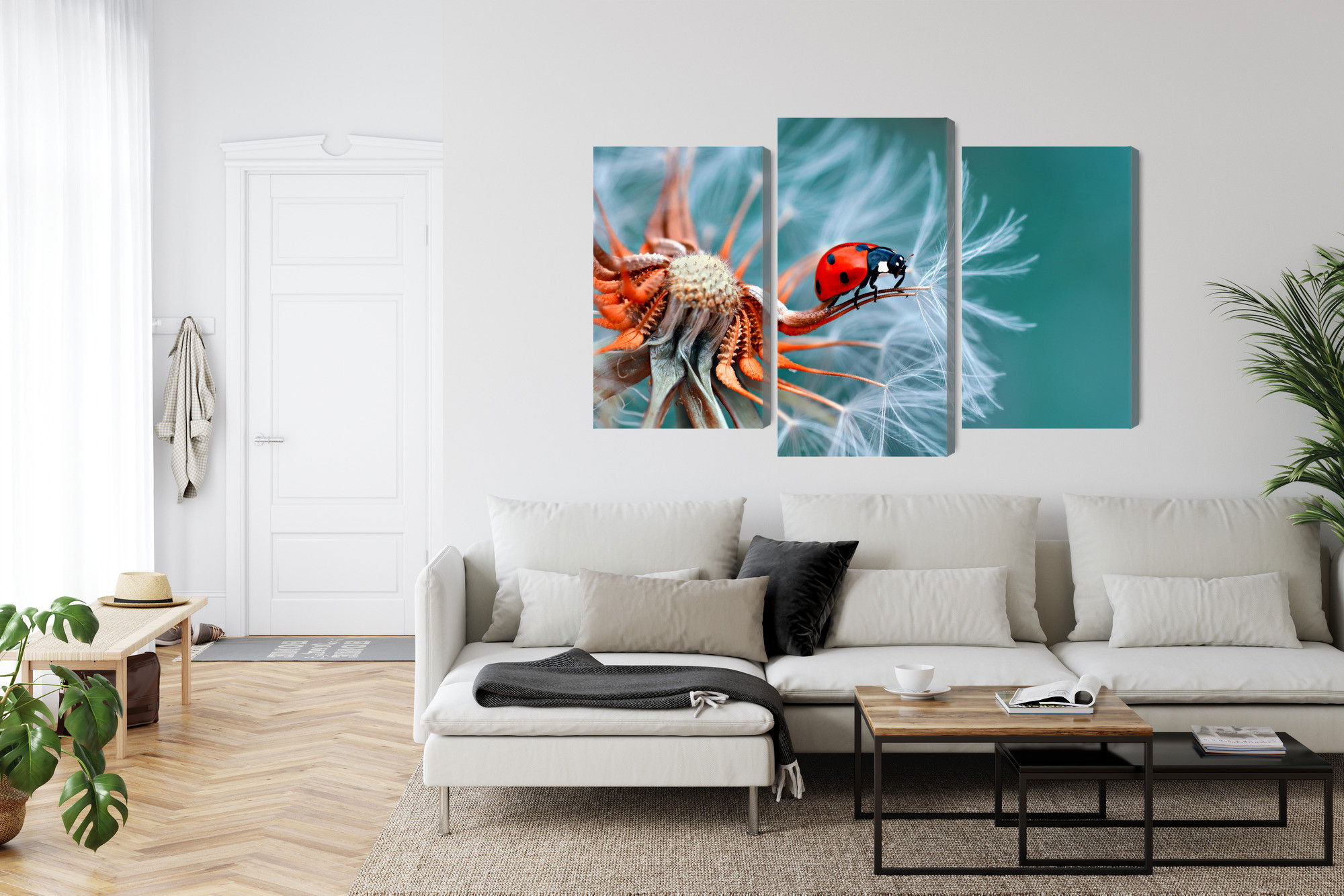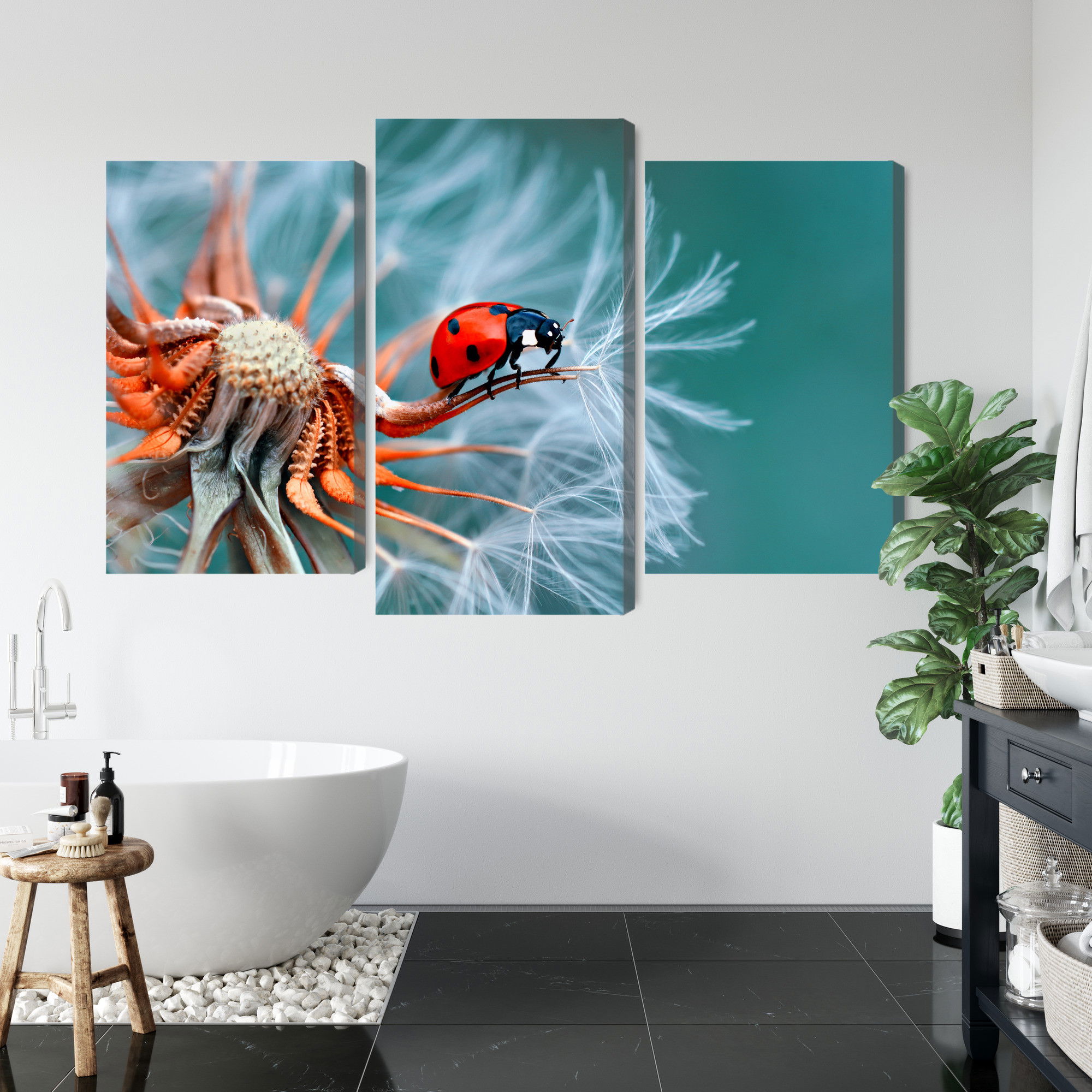 Ljuddämpande tavla – Ladybug on a dandelion för lugnare rum och mjukare akustik