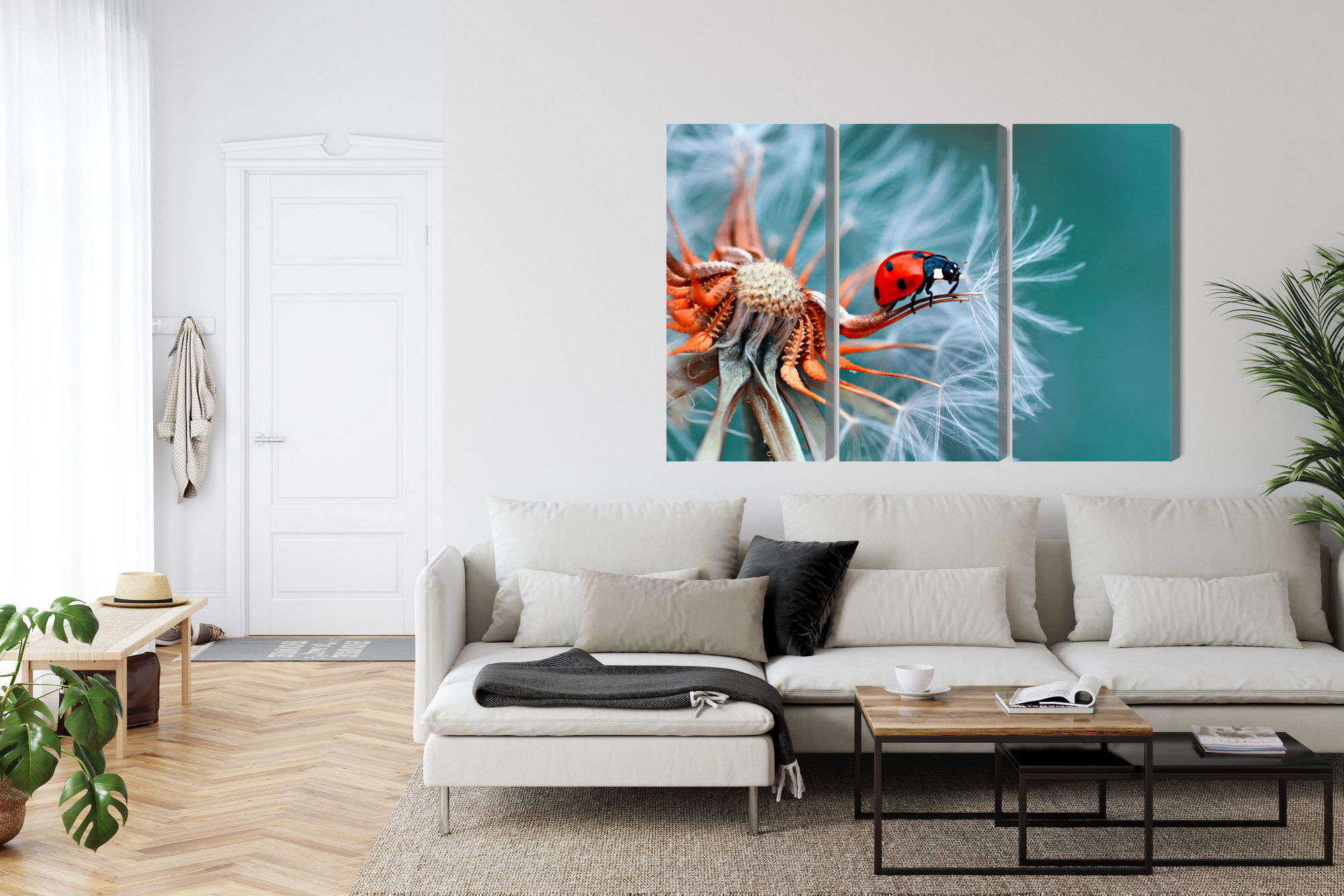 Ljuddämpande tavla – Ladybug on a dandelion för lugnare rum och mjukare akustik