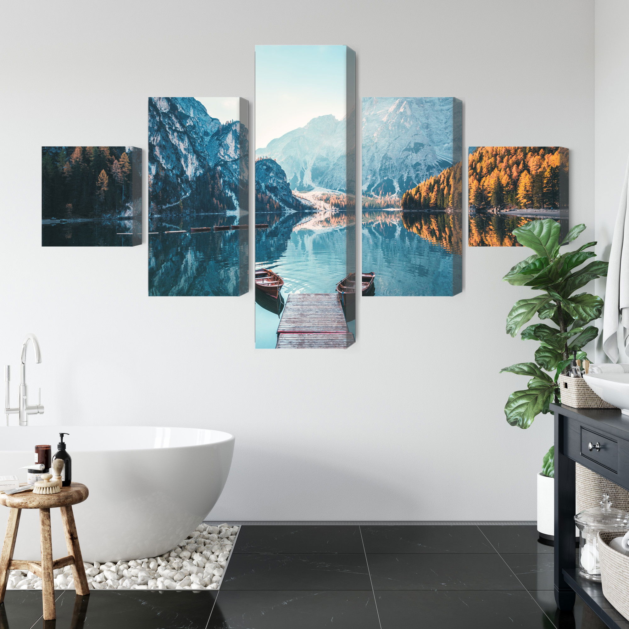Ljuddämpande tavla – Lake braies in the italian för lugnare rum och mjukare akustik