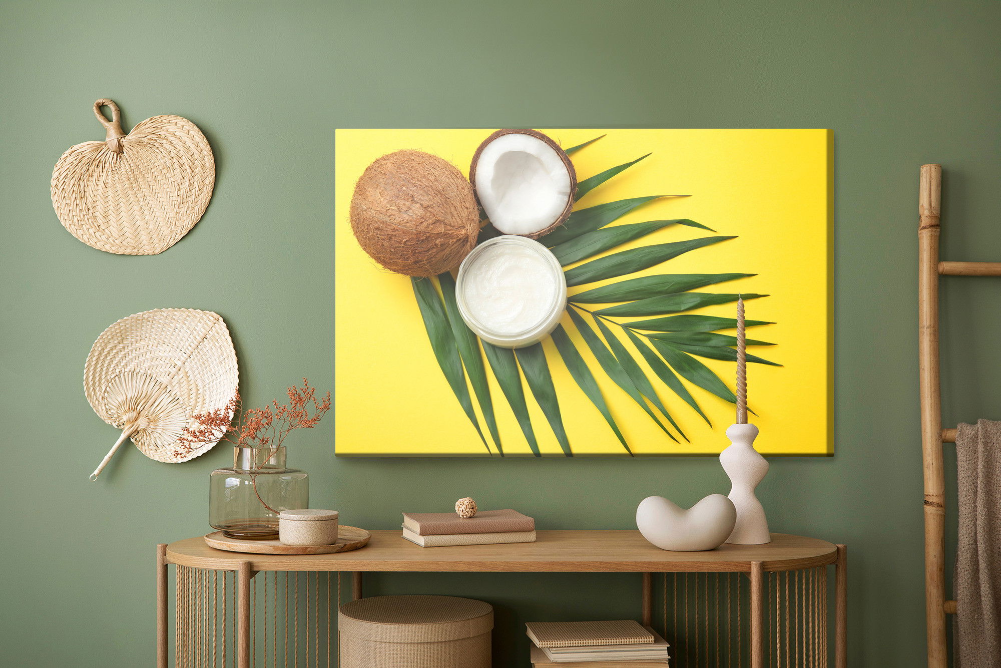 Ljuddämpande tavla – Leaf and coconut fruit för lugnare rum och mjukare akustik