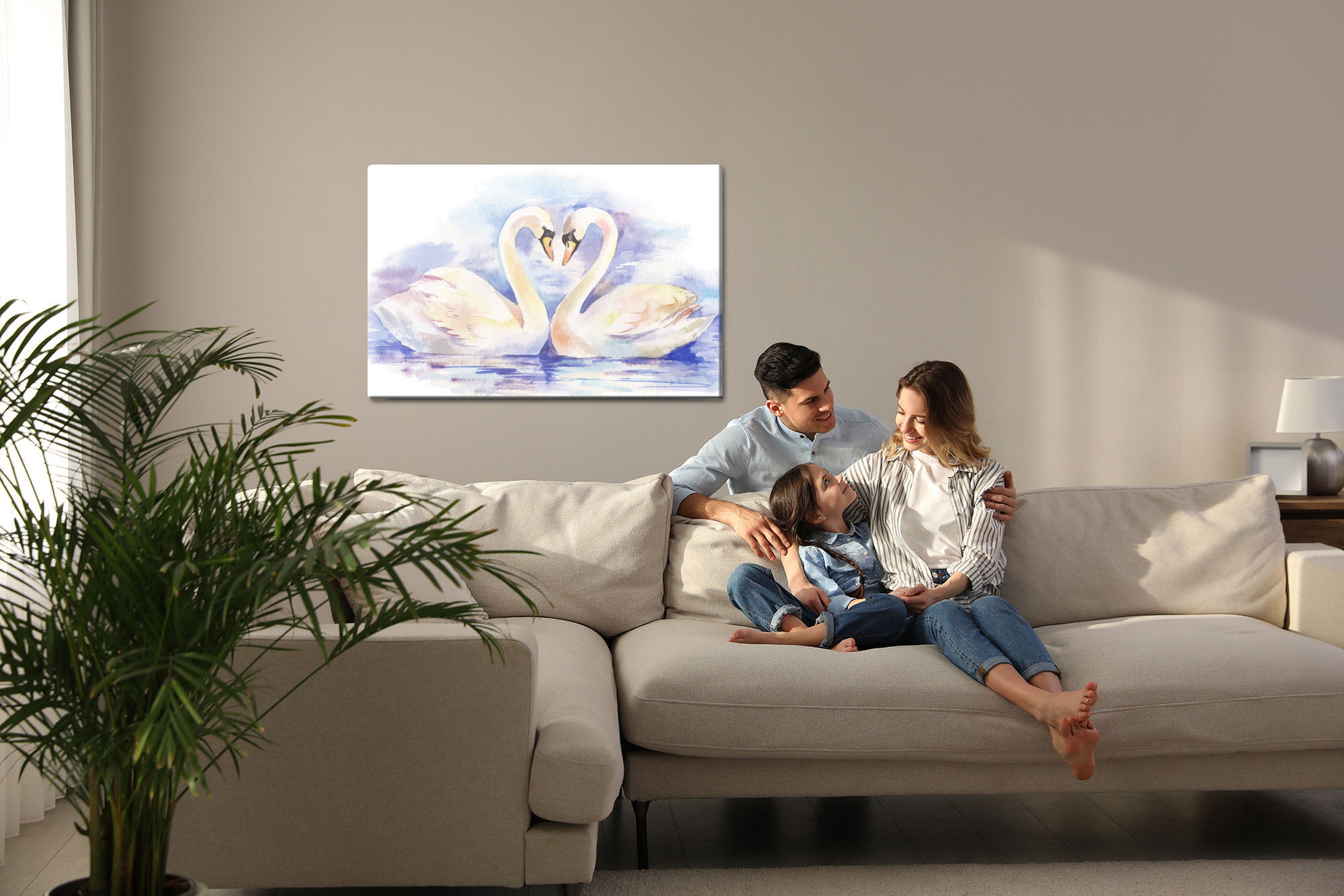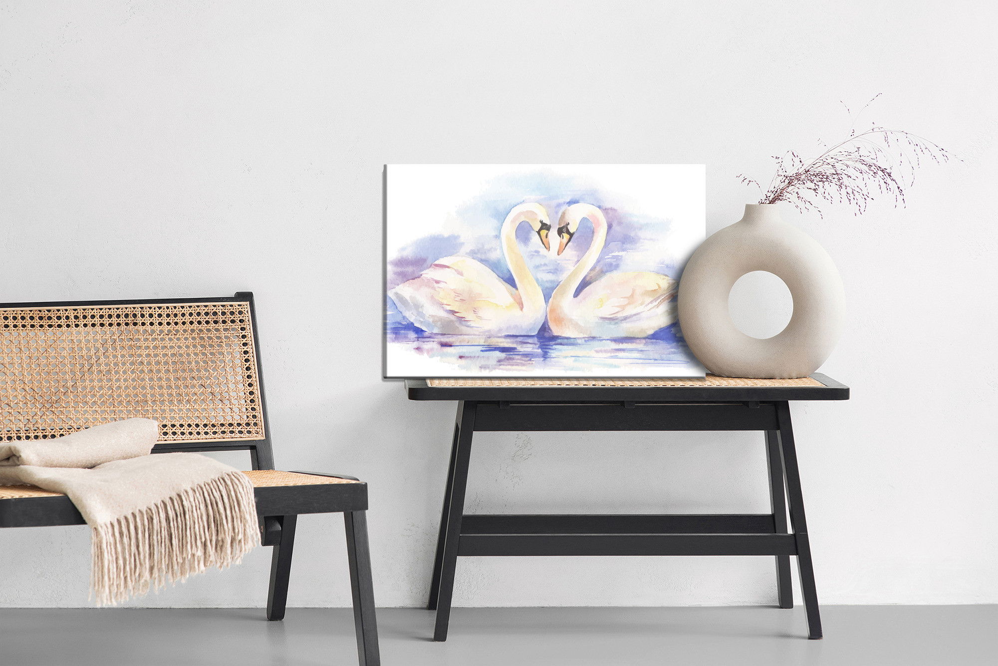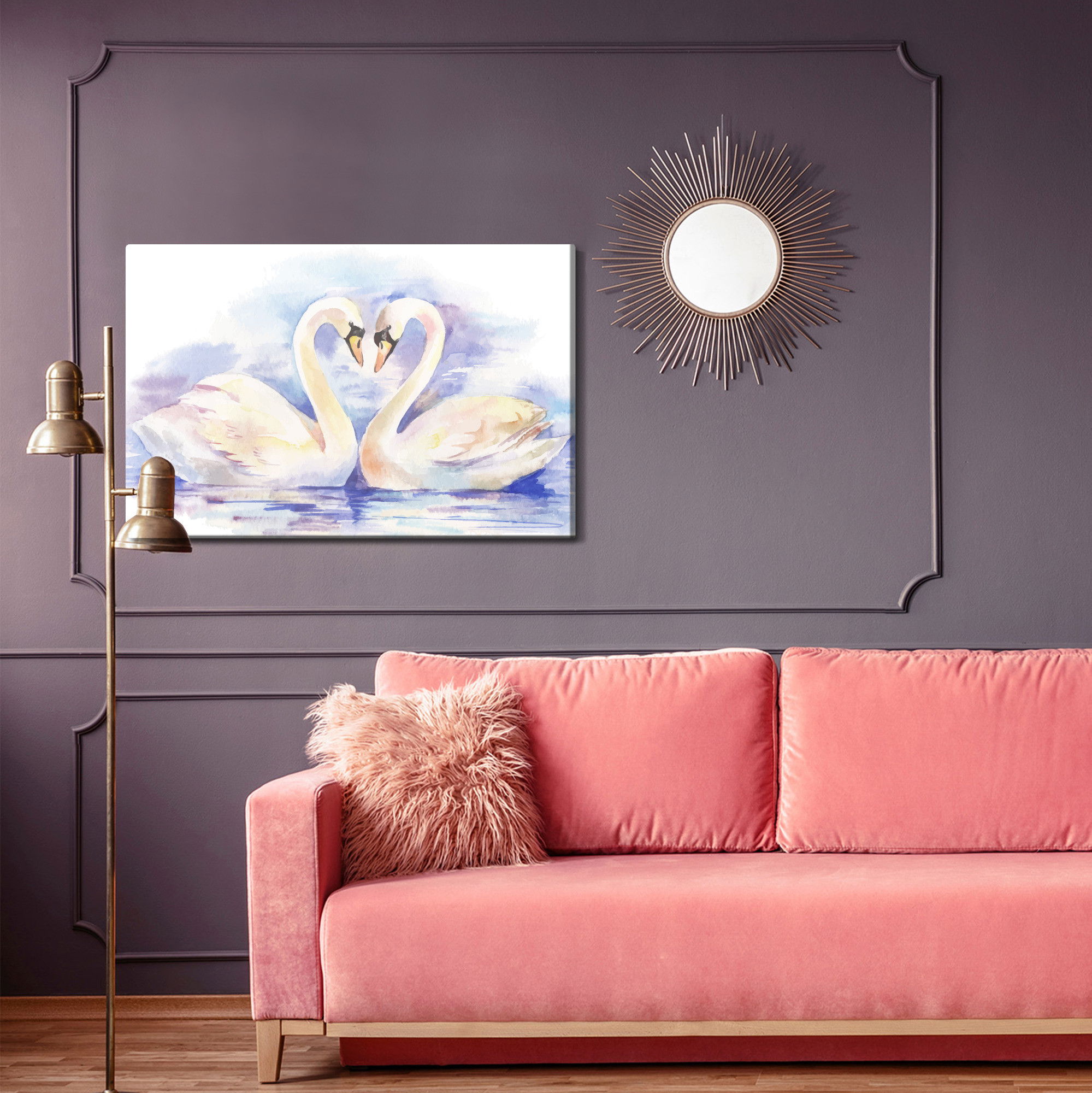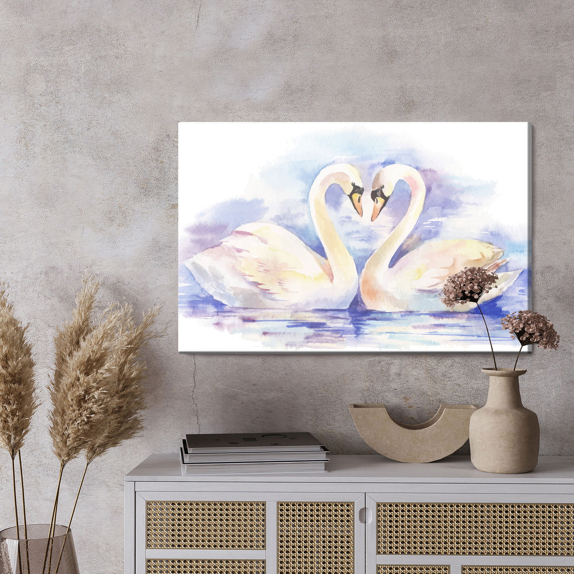 Ljuddämpande tavla – Loving swans för lugnare rum och mjukare akustik