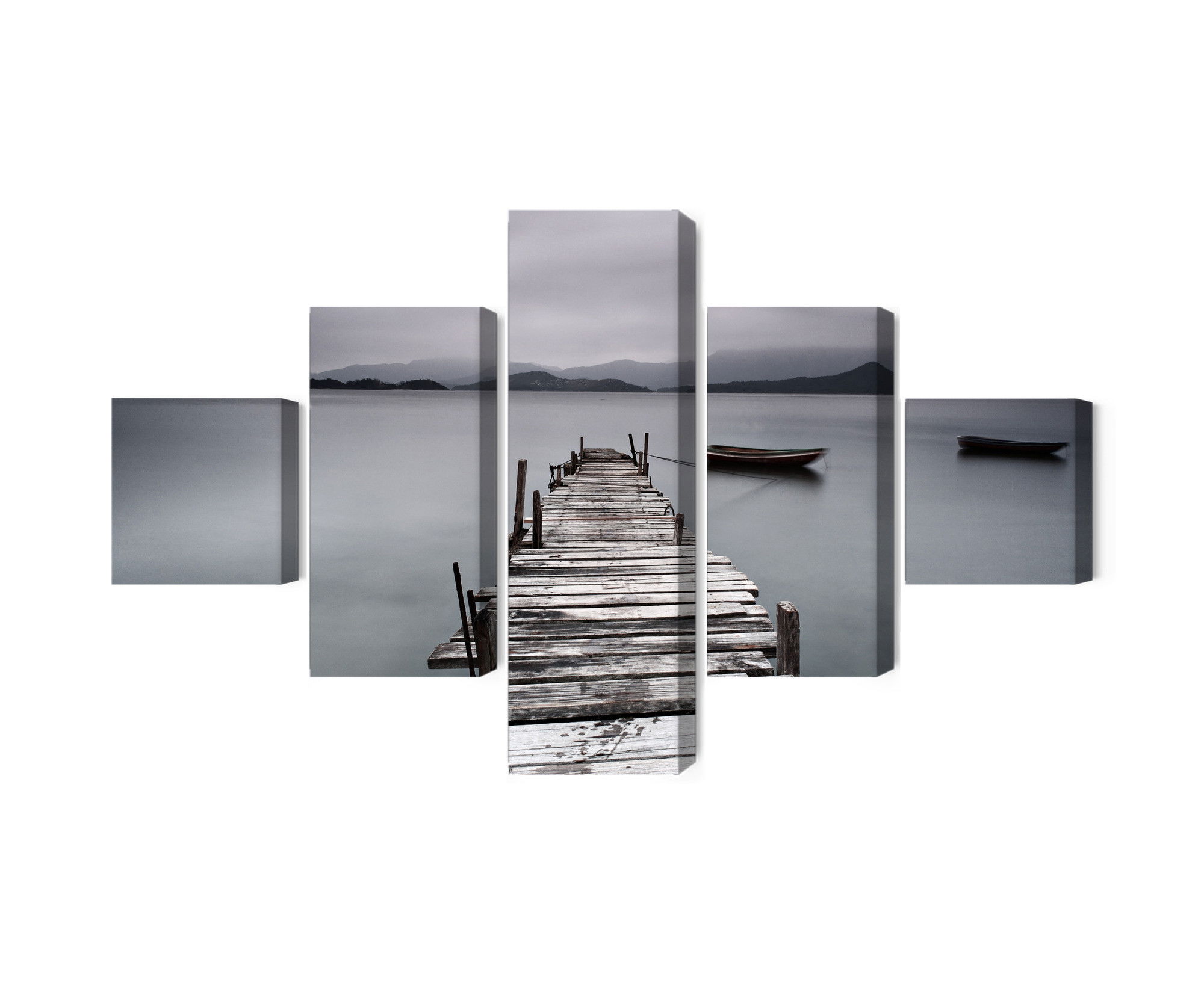 Varje tavla monteras på en massiv fururam. Format upp till 70×50 cm har en ram på 15 mm, medan format från 90×60 cm och uppåt har en ram på 20 mm. Den exakta dukspänningen gör att tavlan håller sin form över tid. Motivet Misty lake trycks runt hela ramen vilket ger ett stilrent galleriuttryck där tavlan är lika vacker från sidan som framifrån. Kombinationen av rak dukspänning, rena linjer och korrekt tryck ger en professionell finish.