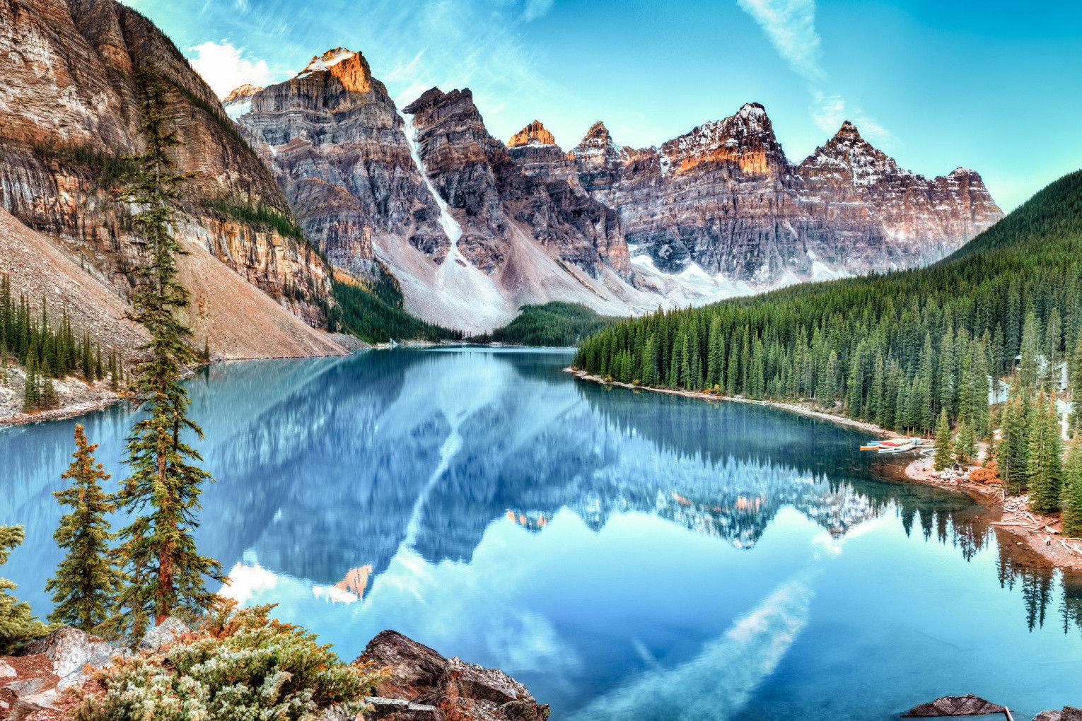 Ljuddämpande tavla – Moraine Lake in banff för lugnare rum och mjukare akustik