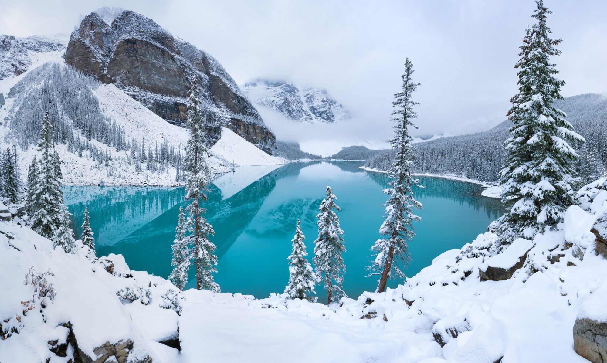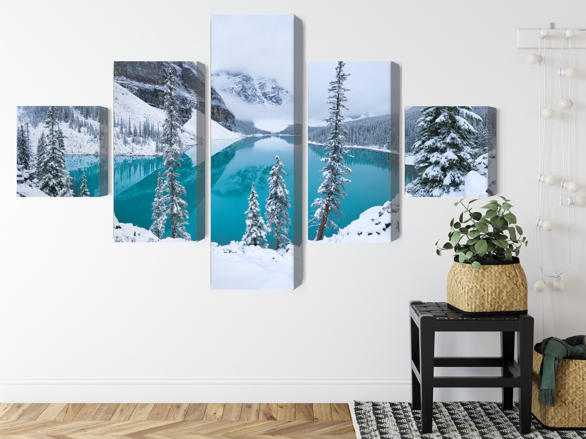 Ljuddämpande tavla – Moraine Lake in winter för lugnare rum och mjukare akustik