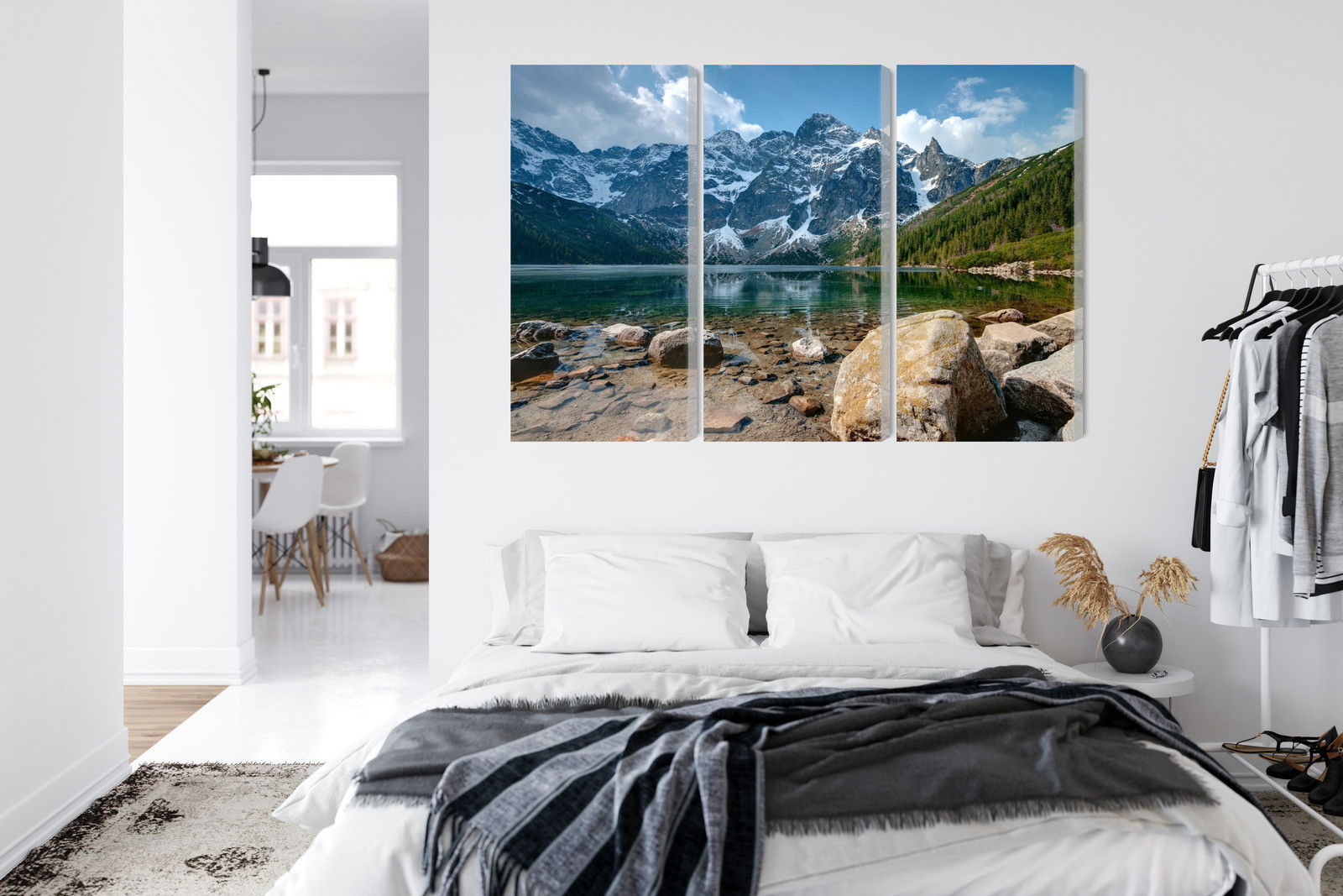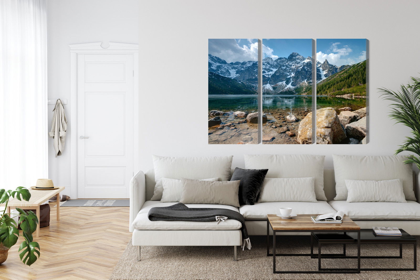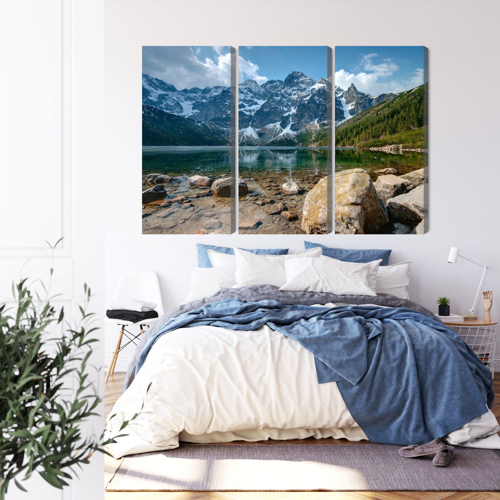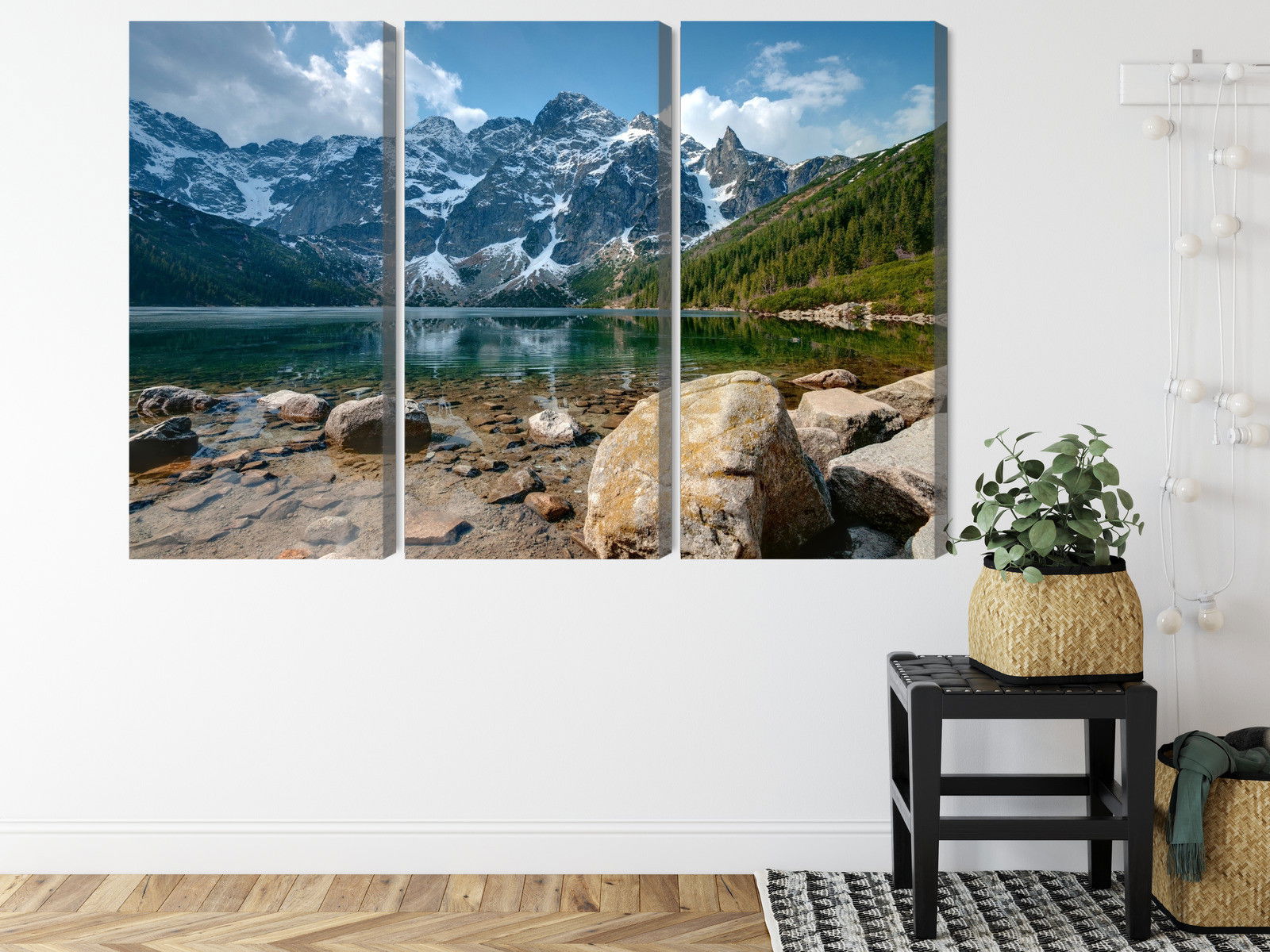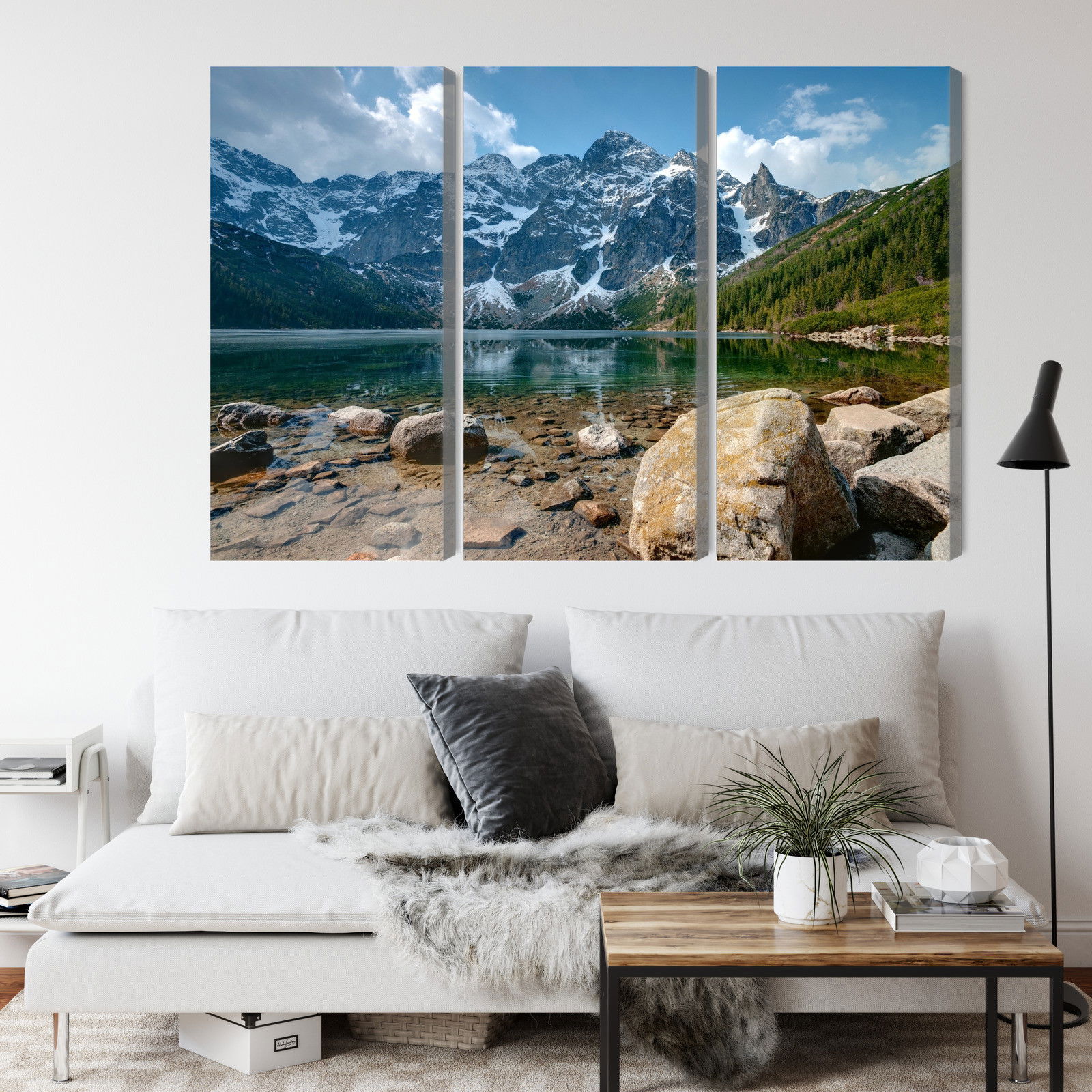 Varje tavla monteras på en massiv fururam. Format upp till 70×50 cm har en ram på 15 mm, medan format från 90×60 cm och uppåt har en ram på 20 mm. Den exakta dukspänningen gör att tavlan håller sin form över tid. Motivet Morskie oko in the tatras 3d trycks runt hela ramen vilket ger ett stilrent galleriuttryck där tavlan är lika vacker från sidan som framifrån. Kombinationen av rak dukspänning, rena linjer och korrekt tryck ger en professionell finish.