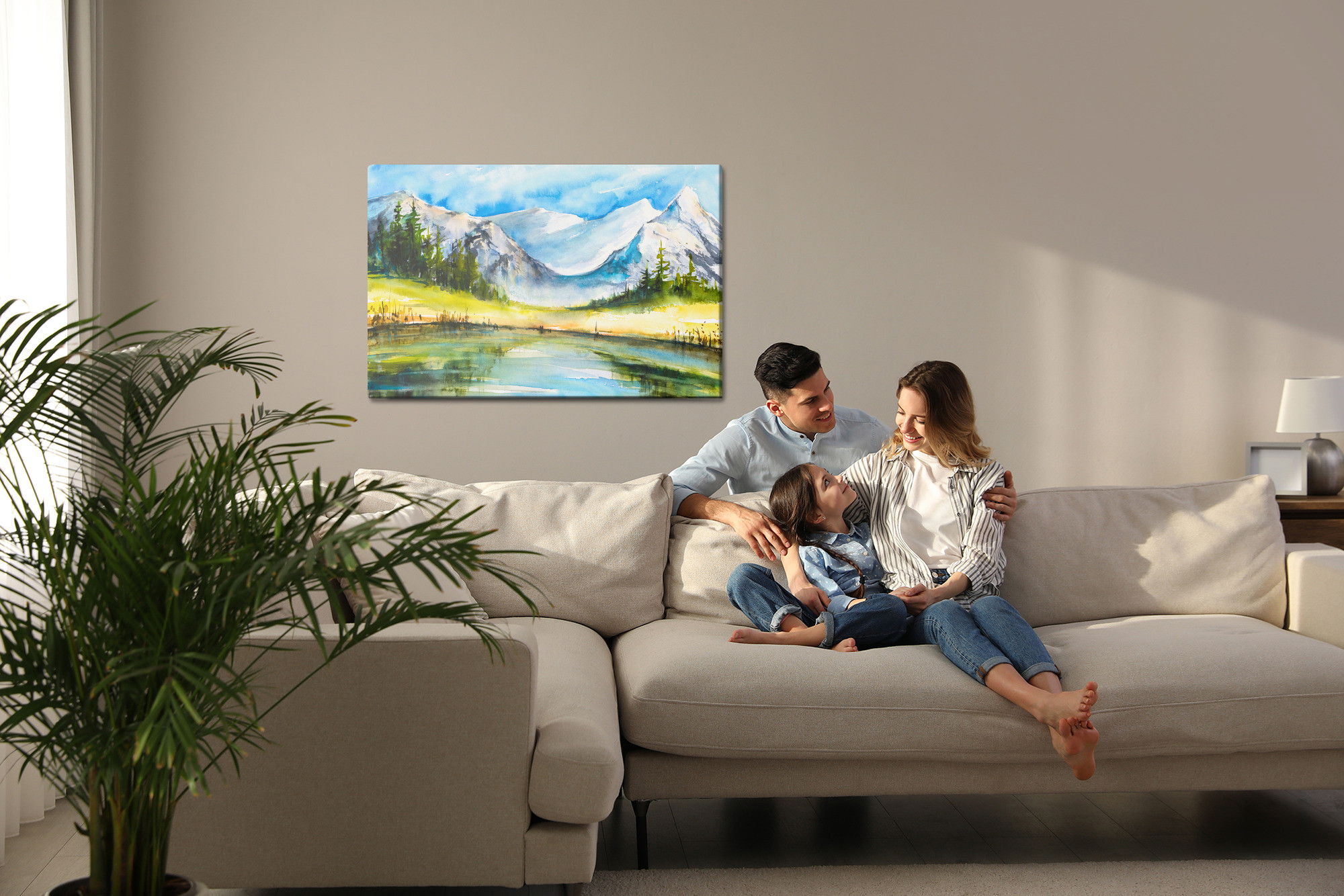 Motivet Mountain landscape painted återges med hög färgprecision och detaljrikedom tack vare HP Latex-teknologi. Trycket sker med vattenbaserade, luktfria och GREENGUARD Gold-certifierade bläck som ger en upplösning på upp till 300 DPI. Färgerna är UV-beständiga och behåller sin styrka även i ljusa rum, vilket gör tavlan lämplig för både hem- och offentliga miljöer.