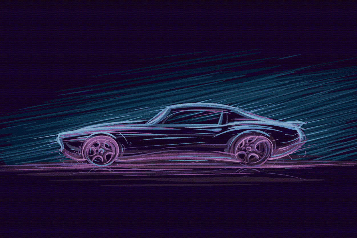 Ljuddämpande tavla - Neon muscle car