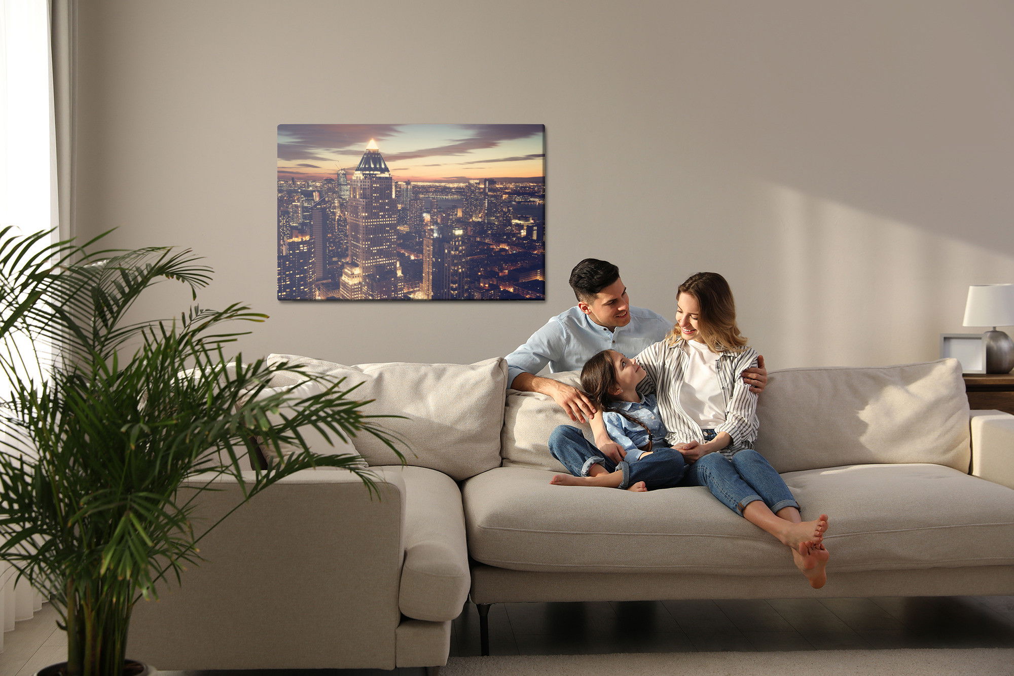 Motivet New York by night återges med hög färgprecision och detaljrikedom tack vare HP Latex-teknologi. Trycket sker med vattenbaserade, luktfria och GREENGUARD Gold-certifierade bläck som ger en upplösning på upp till 300 DPI. Färgerna är UV-beständiga och behåller sin styrka även i ljusa rum, vilket gör tavlan lämplig för både hem- och offentliga miljöer.