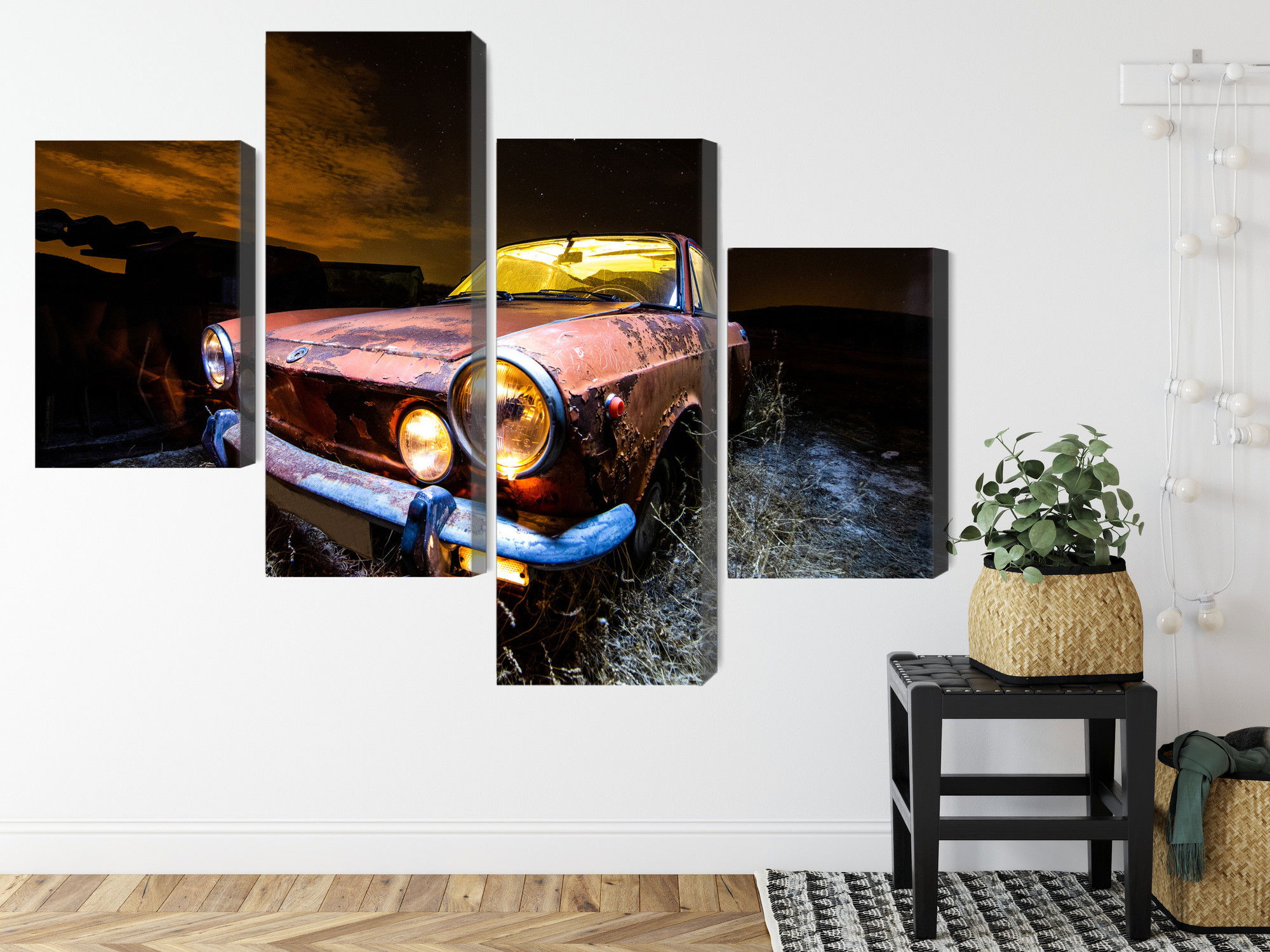 Ljuddämpande tavla – Old abandoned car 3d för lugnare rum och mjukare akustik